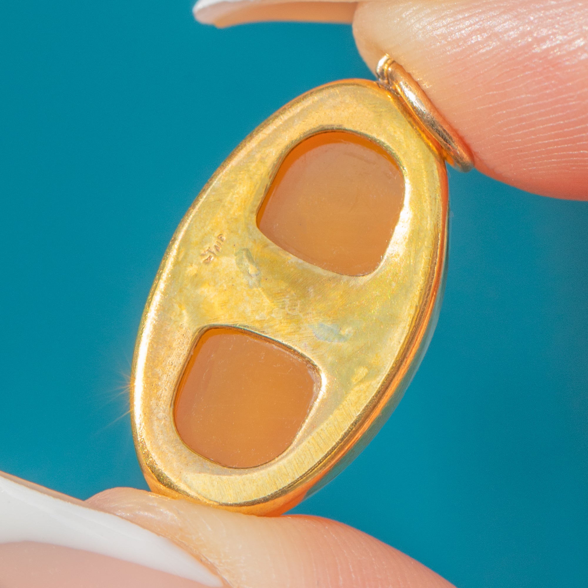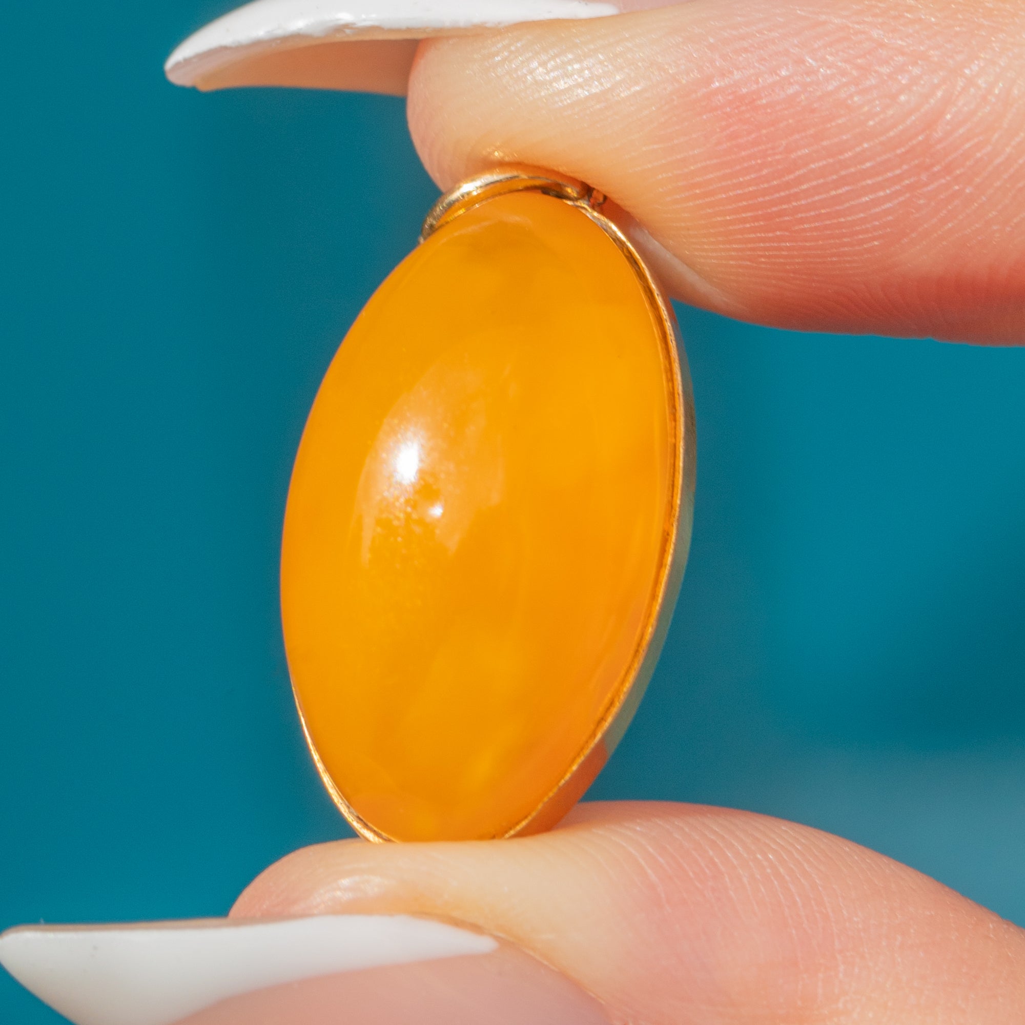 Glowing like a drop of sunset, this Victorian Amber cabochon sits in a sleek bezel that lets the colour do all the talking. The cab is beautifully domed and wonderfully luminous; an easy, elegant charm that brings warmth to any chain.