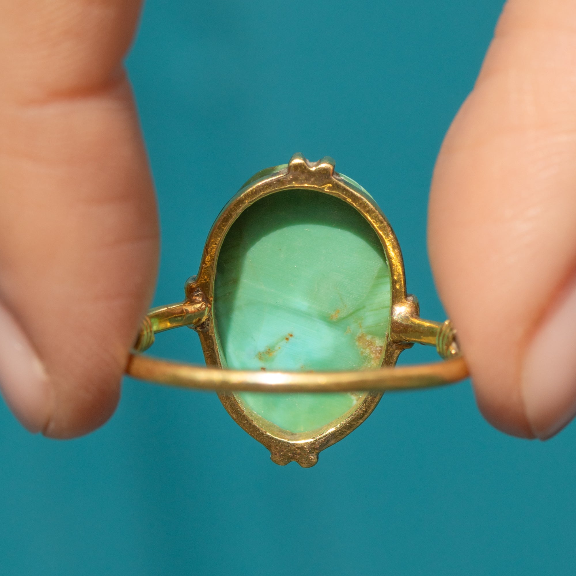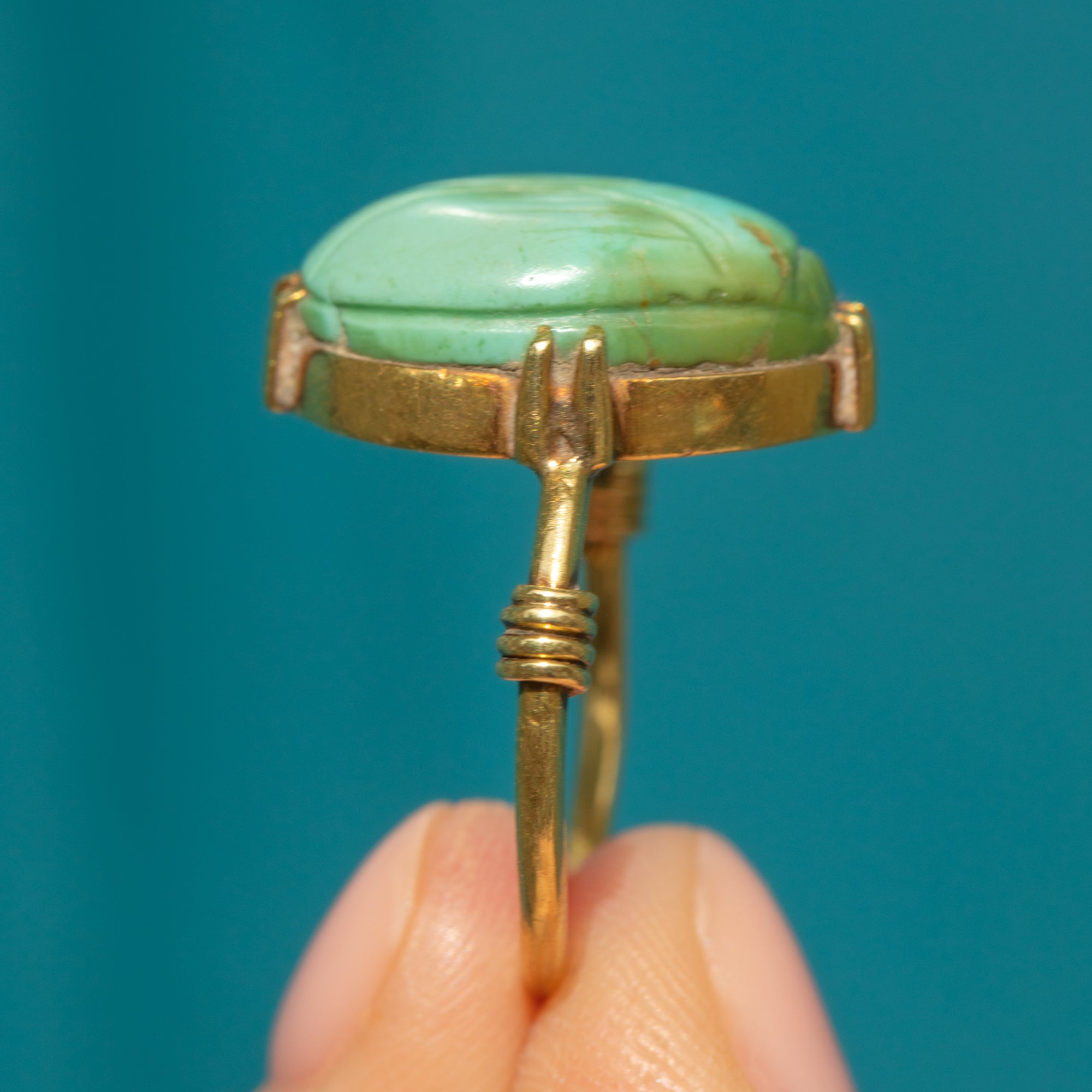 Antique 18ct Gold Egyptian Scarab Faience Ring