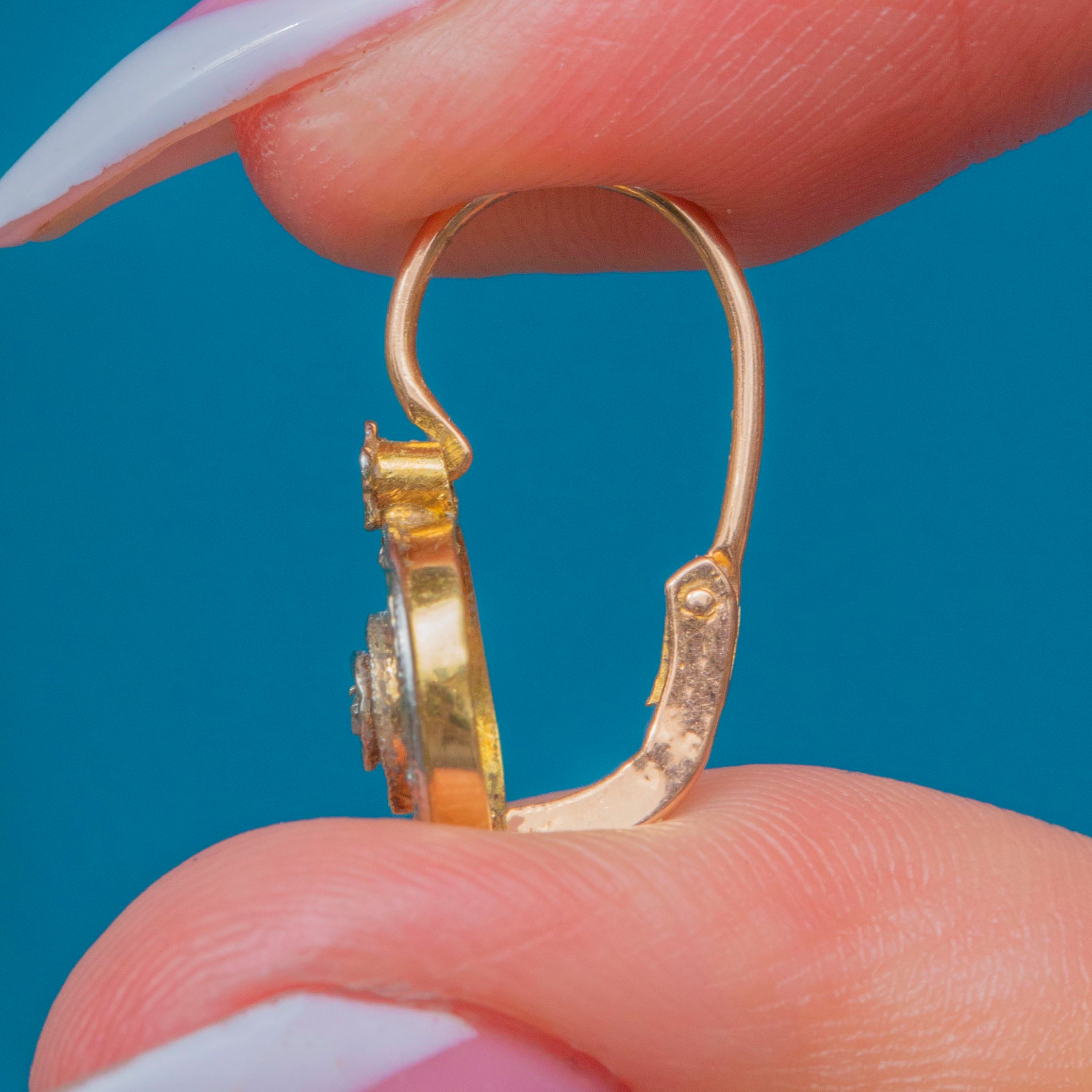 Each rose-cut Diamond twinkles beautifully in the light, adding a touch of glamour to this elegant pair. Complete with an Eagle's head stamp at the base of each lever, these French Diamond earrings simply radiate antique charm.
