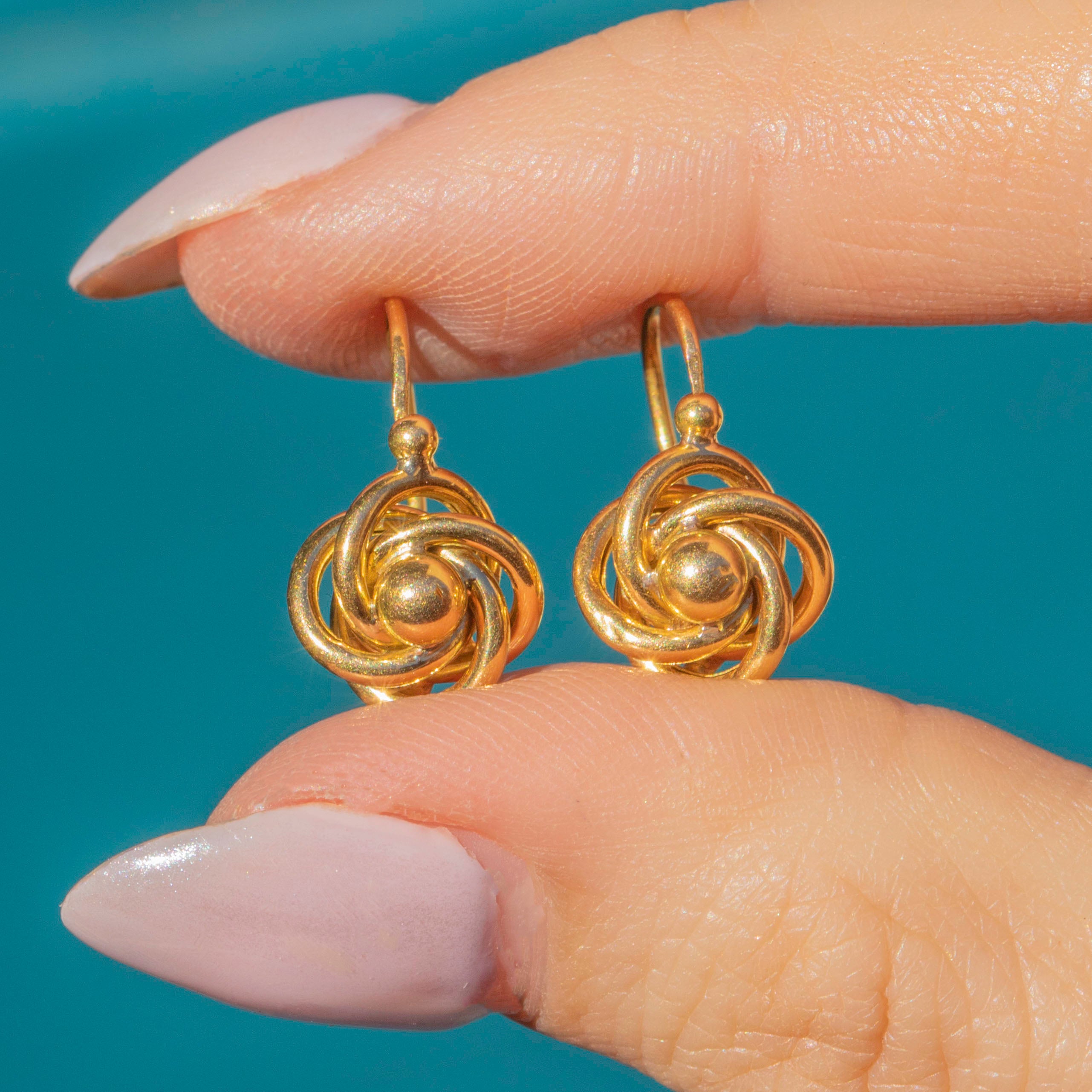 These antique French 18ct Gold knot lever back earrings are an absolute delight. Exuding timeless elegance and sophistication, these drops of sunshine are incredibly versatile and a must-have addition to your collection!