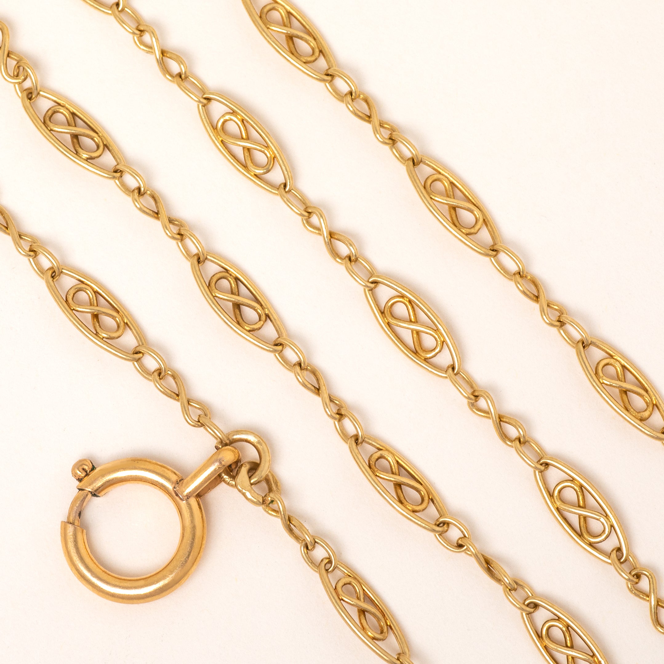 Antique French 18ct Gold Filigree Longuard Chain, 31g- Oversized French Bolt-Ring