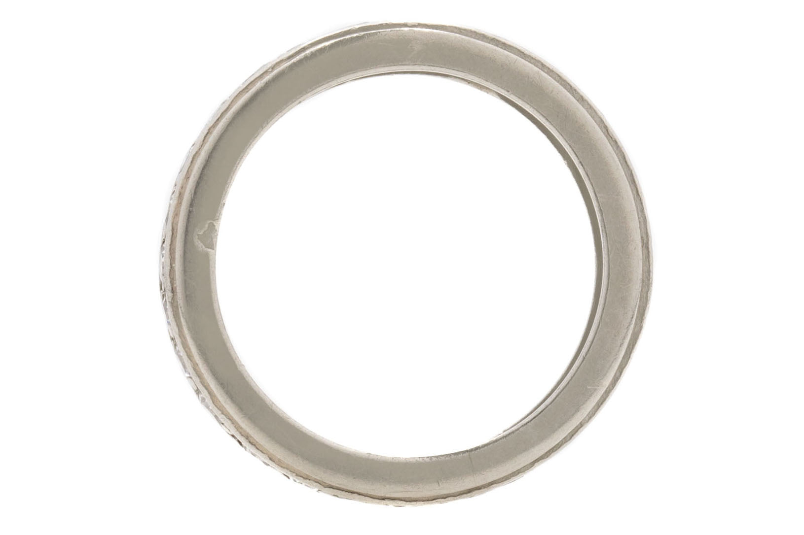 EXCELLENT: This antique French Platinum Diamond eternity ring is in superb condition. All Diamonds remain present, bright, and bursting with sparkle. Her generous Platinum band provides just the right amount of coverage, beautifully framing the Diamonds. Both her French dog head hallmark and maker's mark remain visible! A French treasure to cherish for a lifetime, this Art Deco eternity ring will always be by your side!