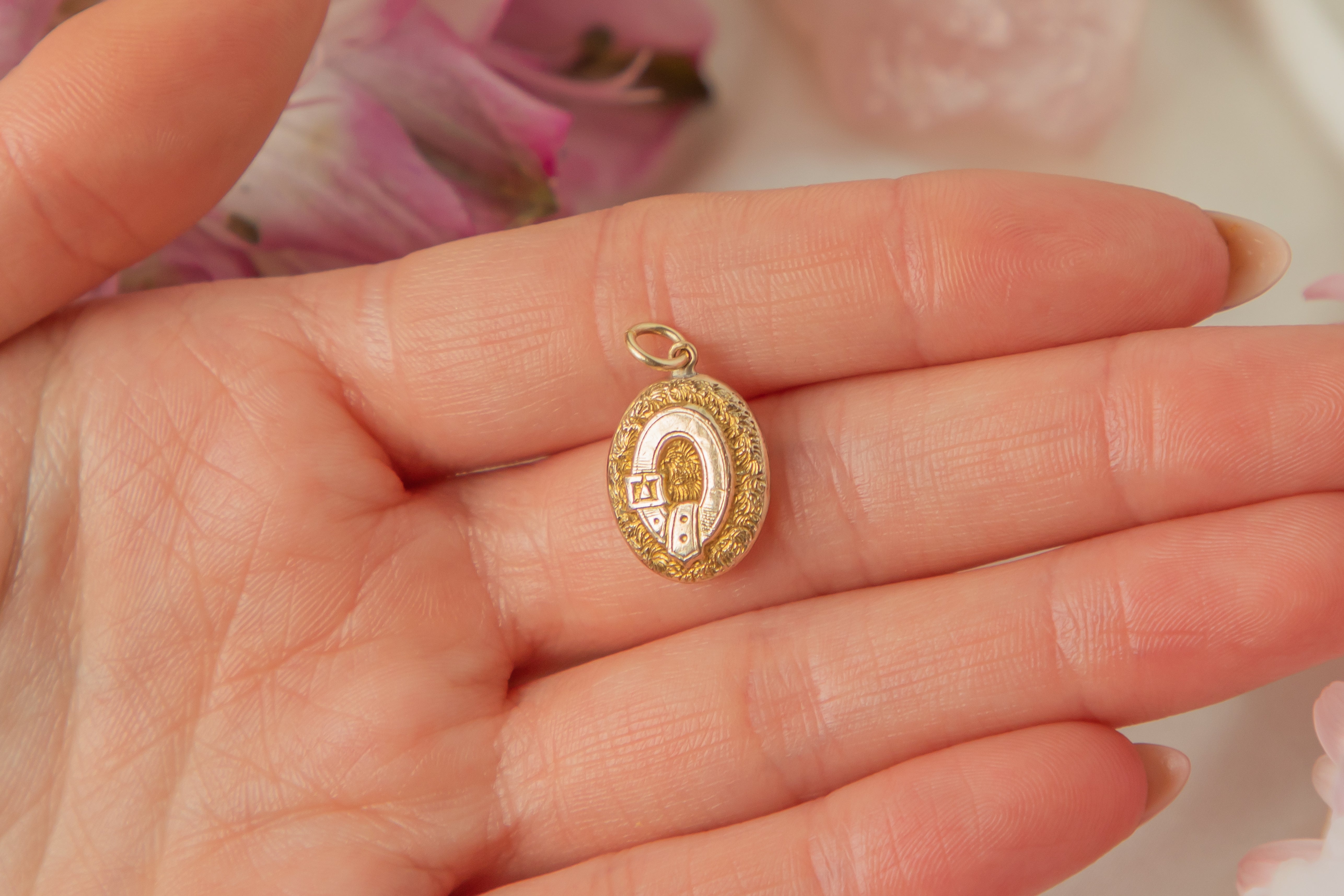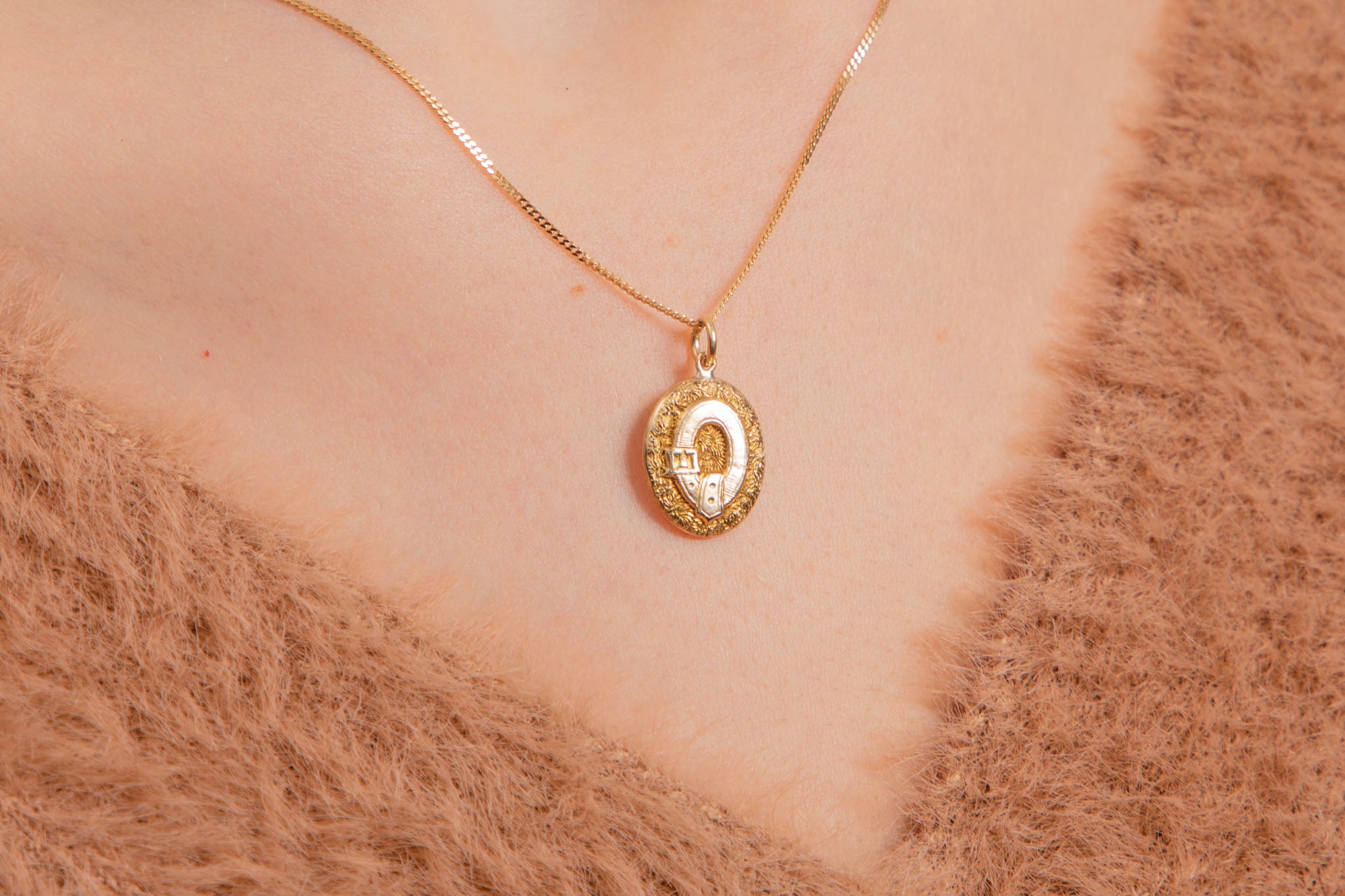 Lover's of symbolism, this Victorian pendant has a belt to represent eternity. By pairing with a Gold chain, you will have what looks like an authentic Gold necklace!