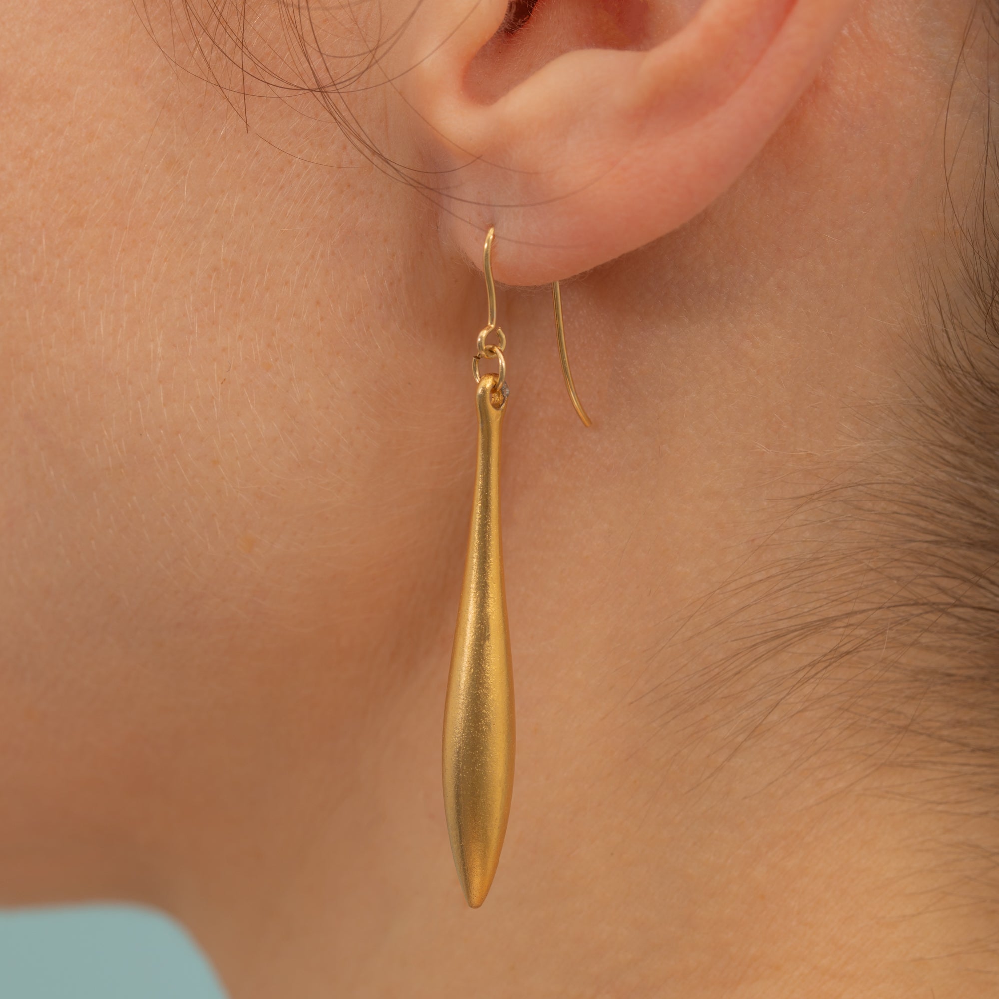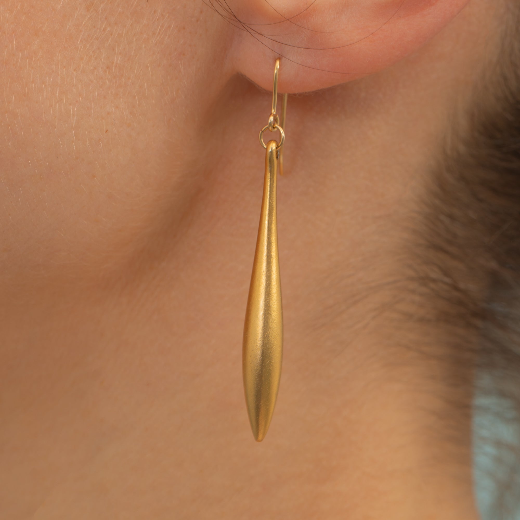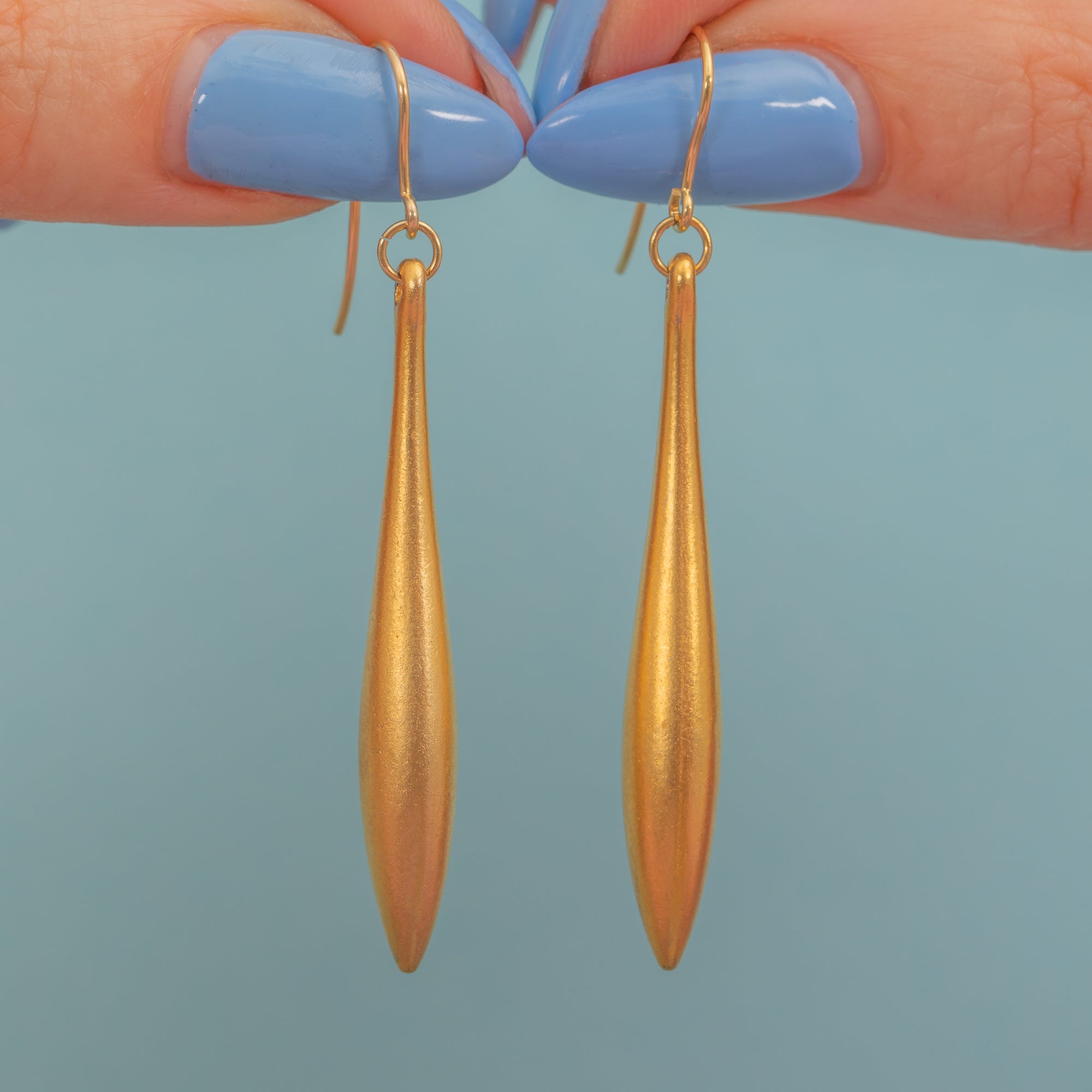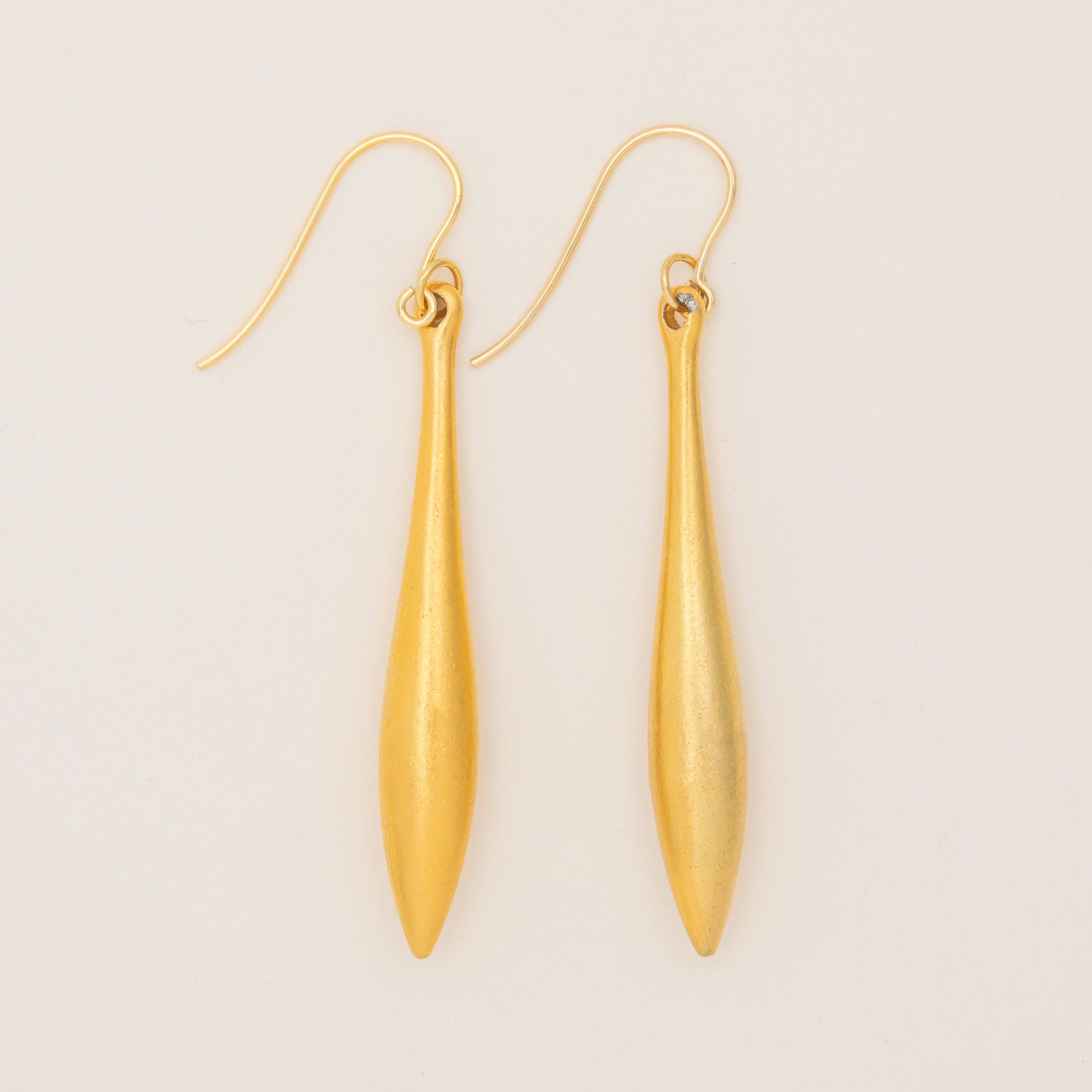 MATERIALS: Tests as 9ct Gold plated torpedo drops with solid 9ct Gold hooks.