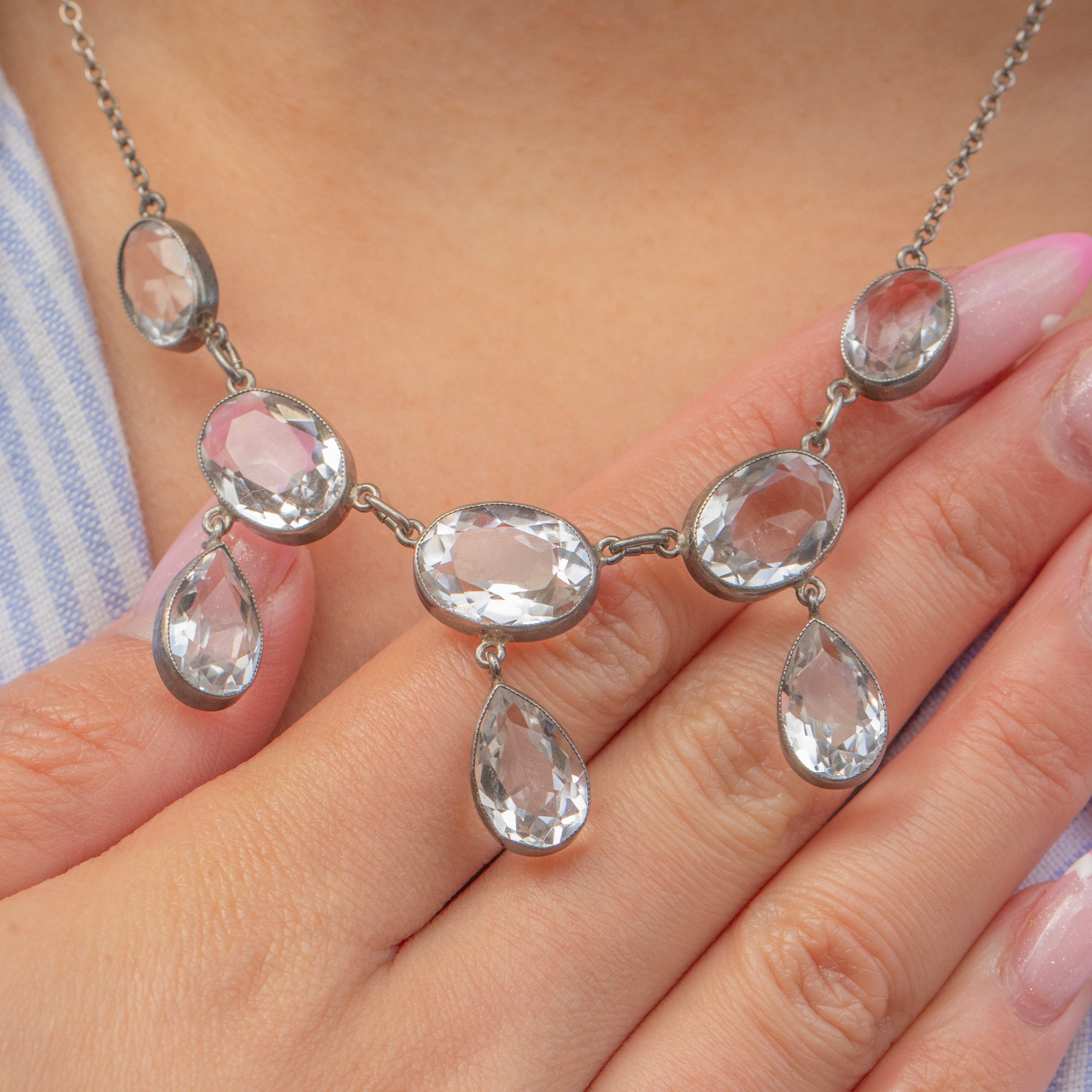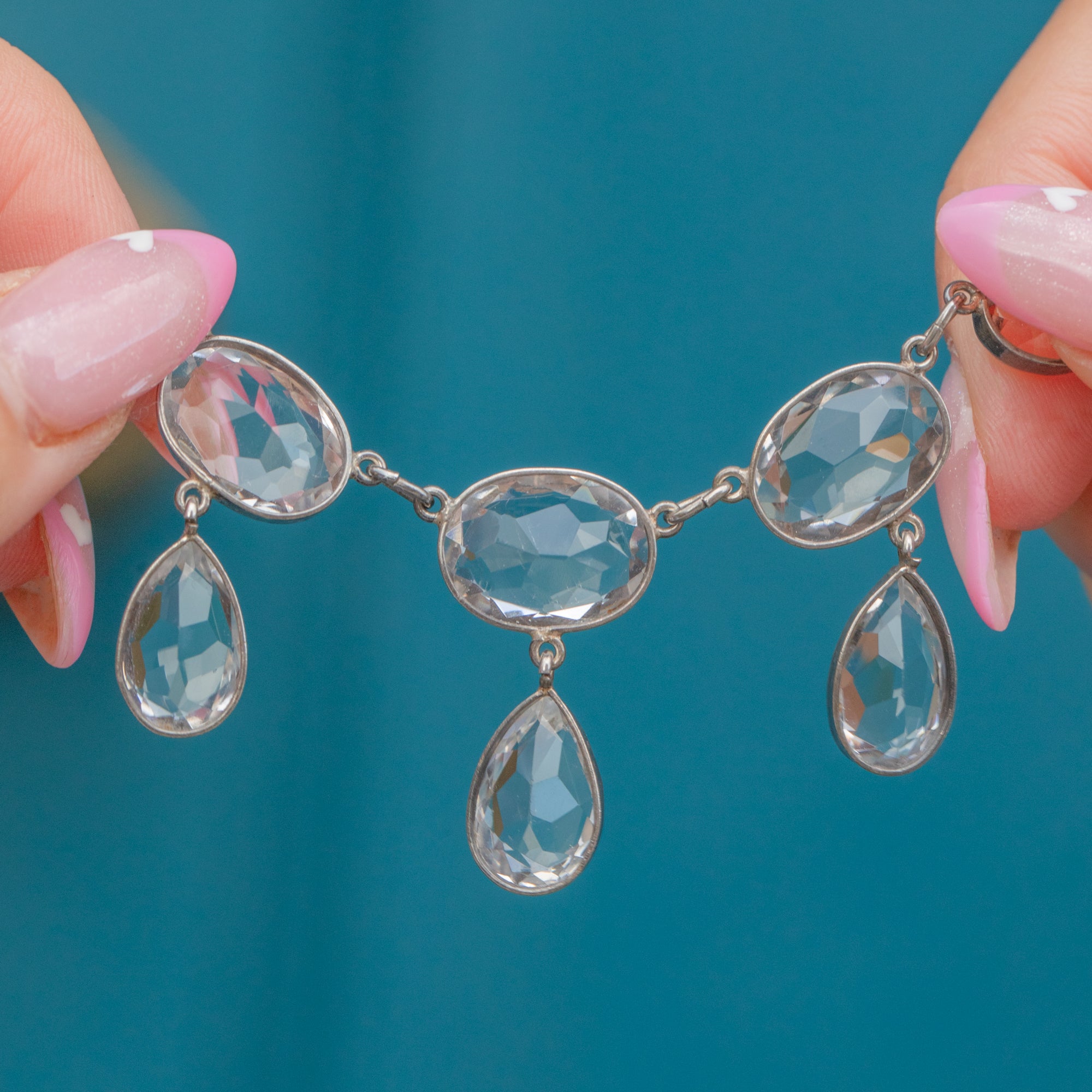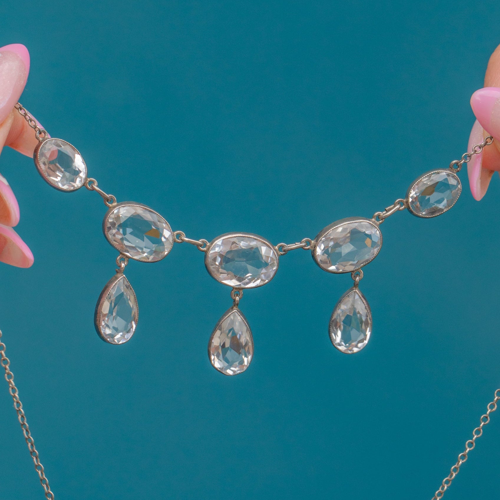 EXCELLENT: The necklace is in superb antique condition. The Rock Crystals are bright and clear with no chips or clouding, and the Silver chain is strong and secure. A beautifully preserved Edwardian treasure.