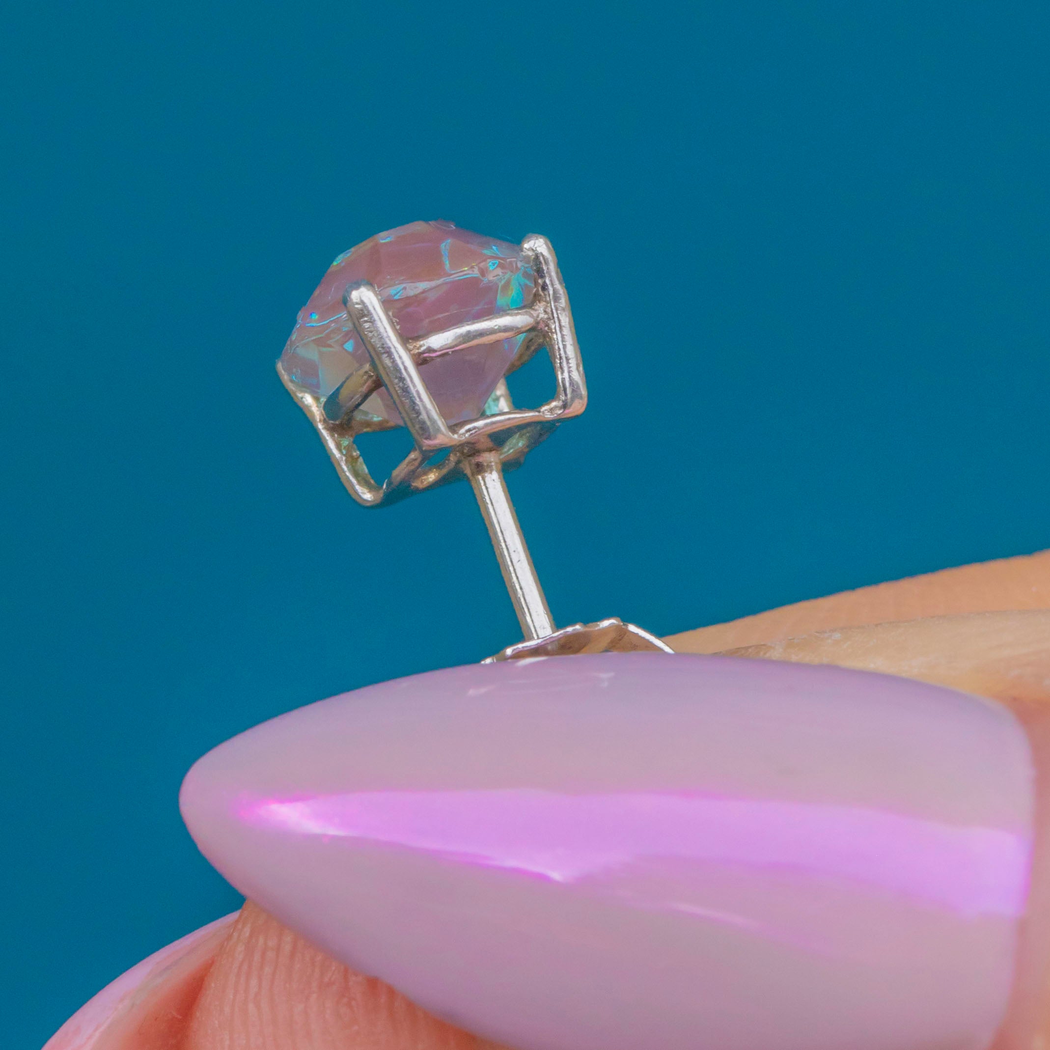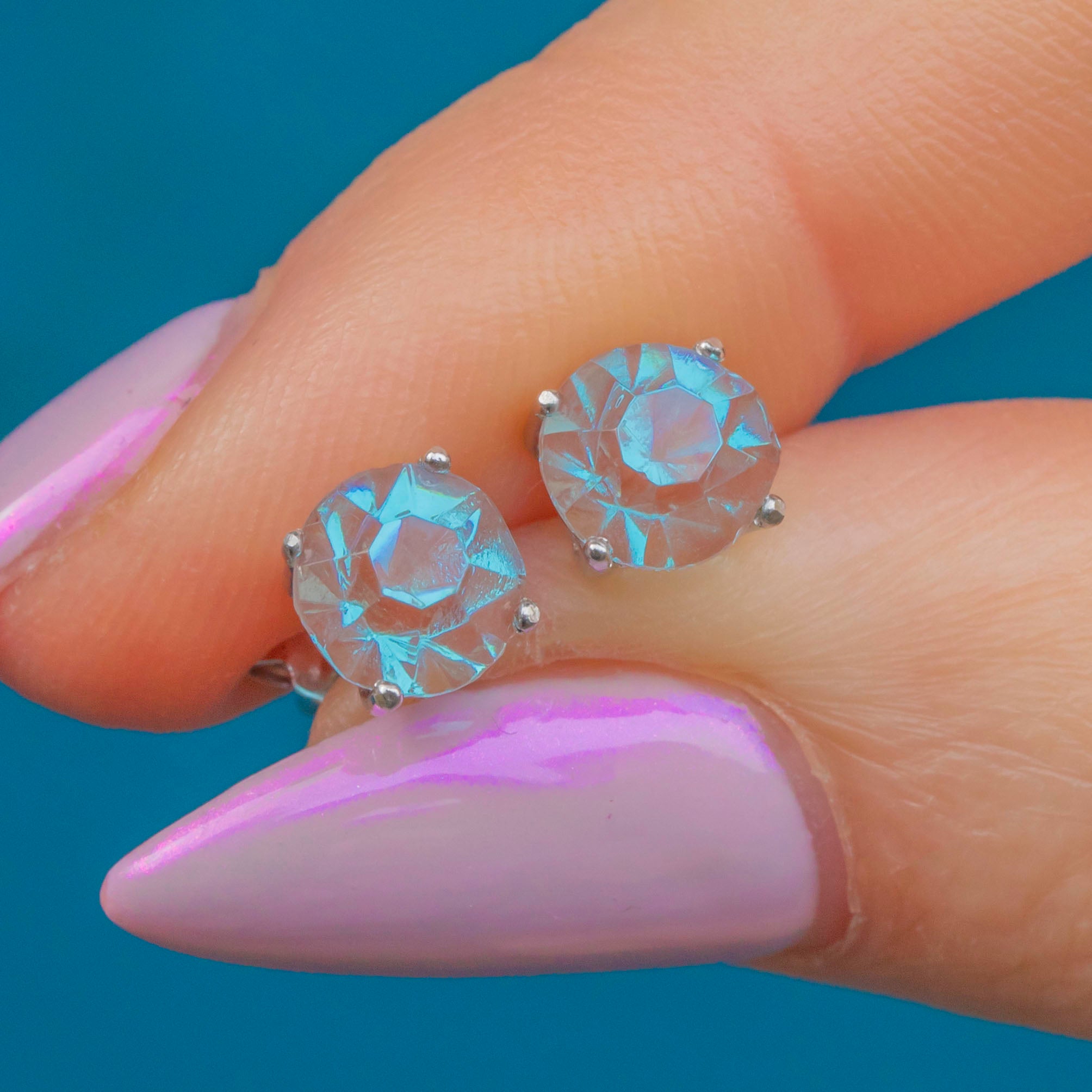 These charming Edwardian studs are set with original Sapphiret gems — a rare type of antique glass prized for its deep, moody blue-brown shimmer that resembles natural Sapphire. Their soft glow and subtle sparkle make them an elegant and wearable pair for everyday or evening.