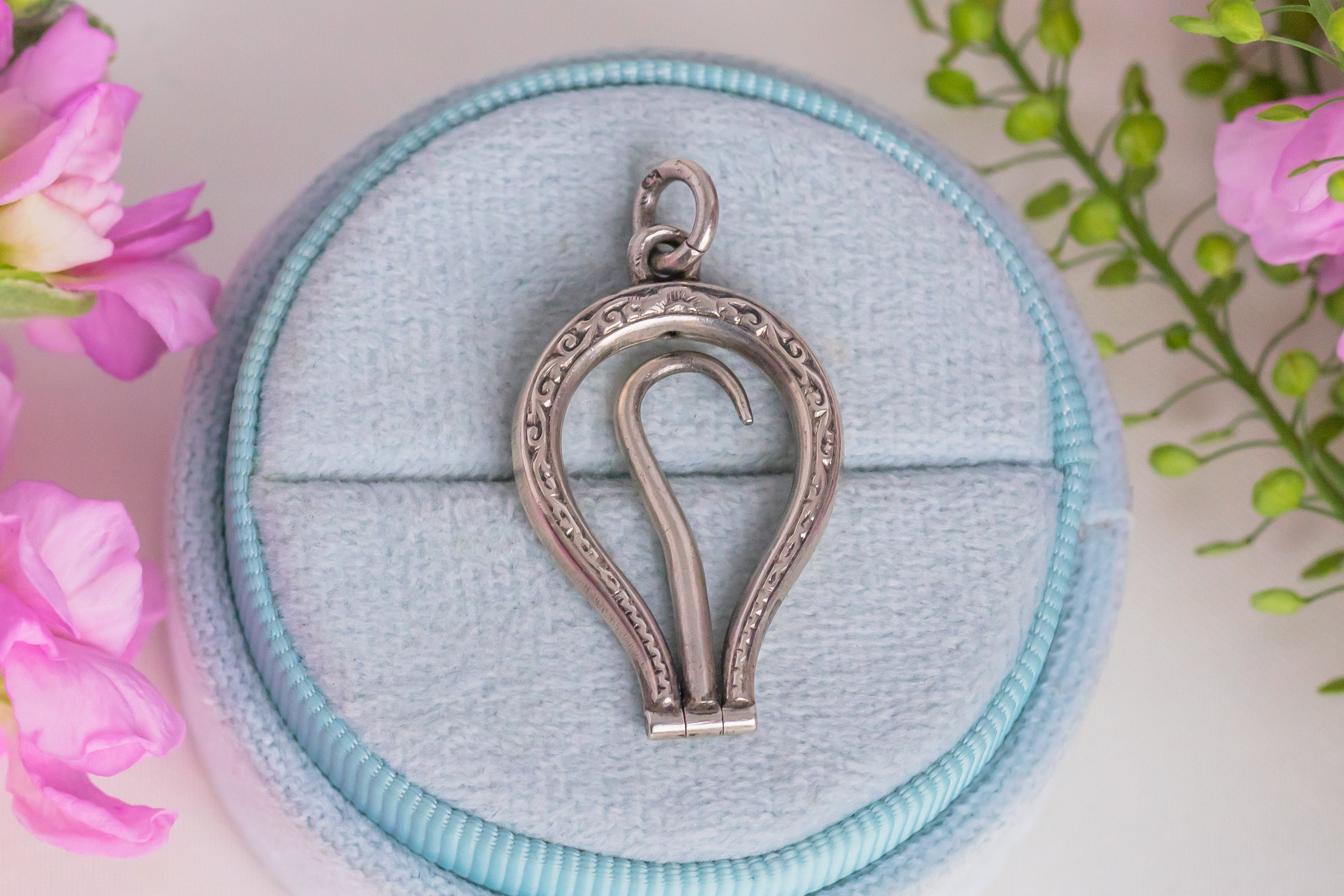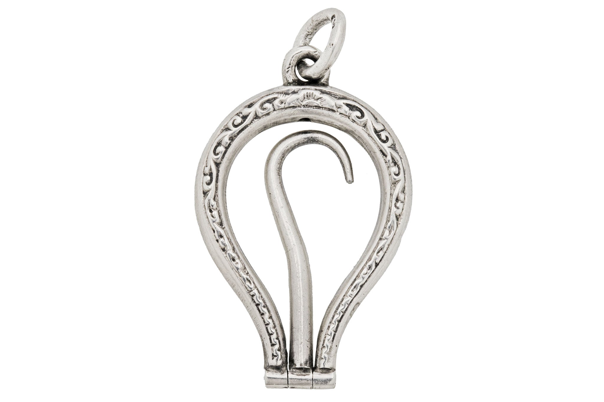 Antique Silver Engraved Button Hook Pendant