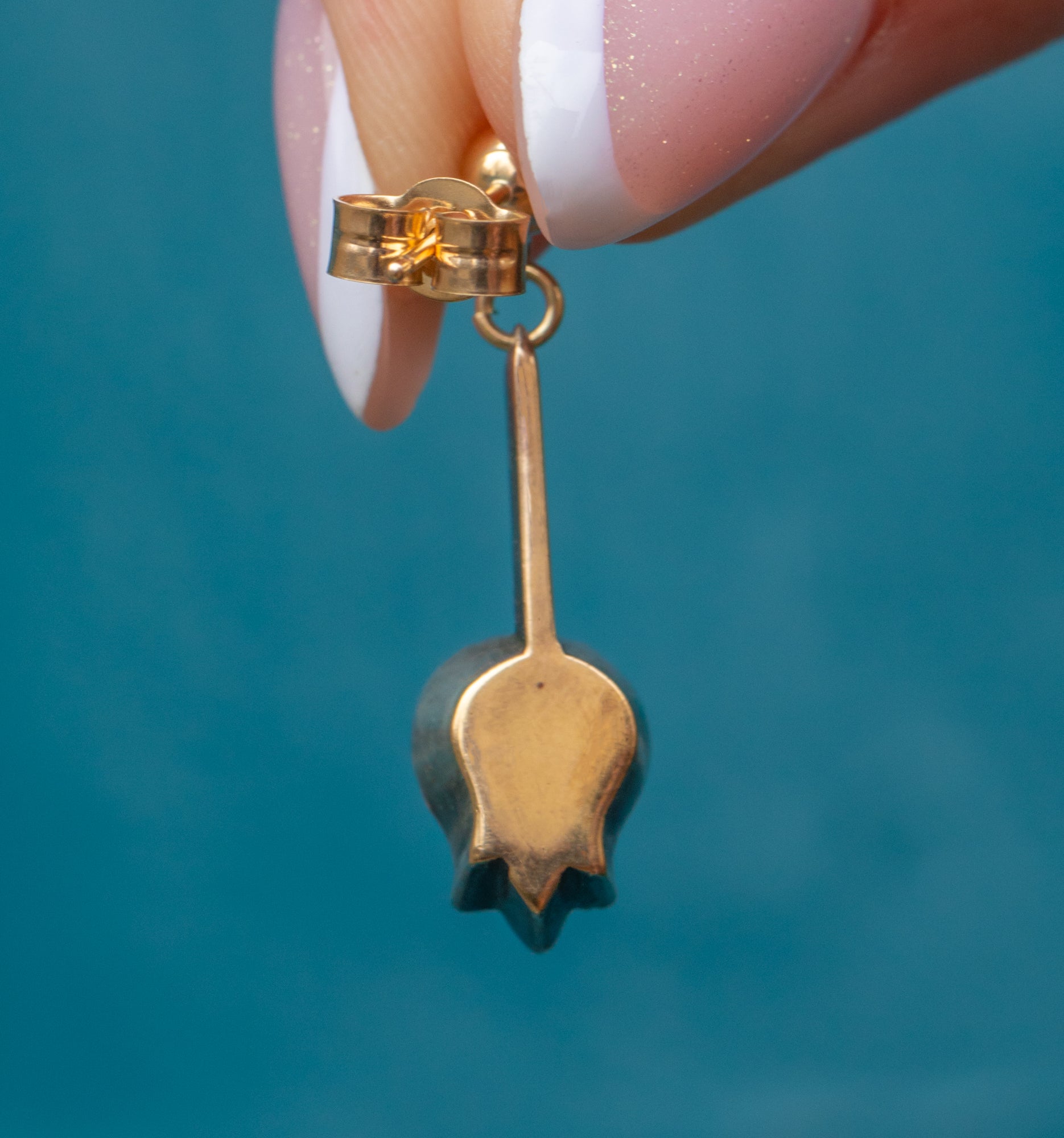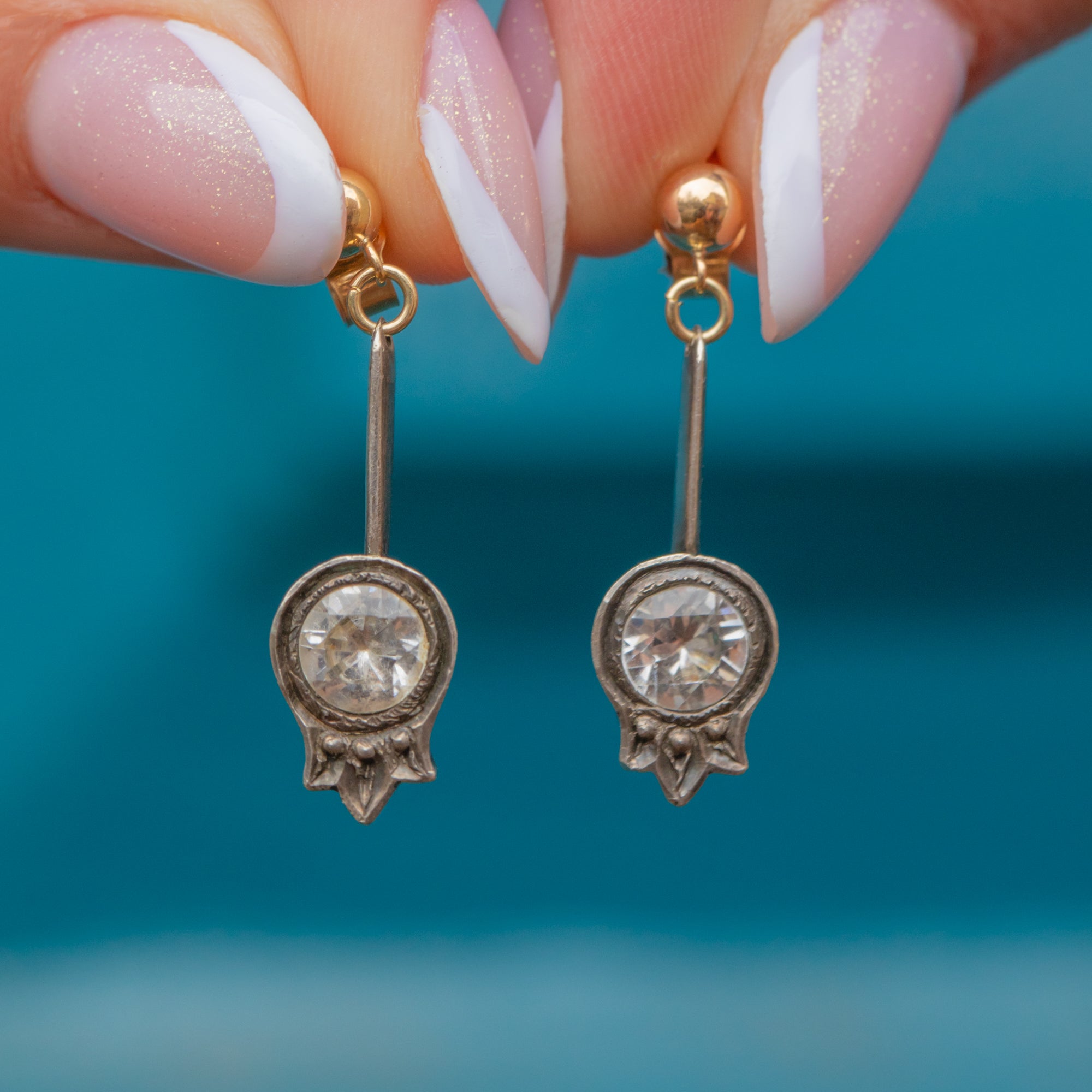 Antique Silver & 9ct Gold Paste Tulip Drop Earrings