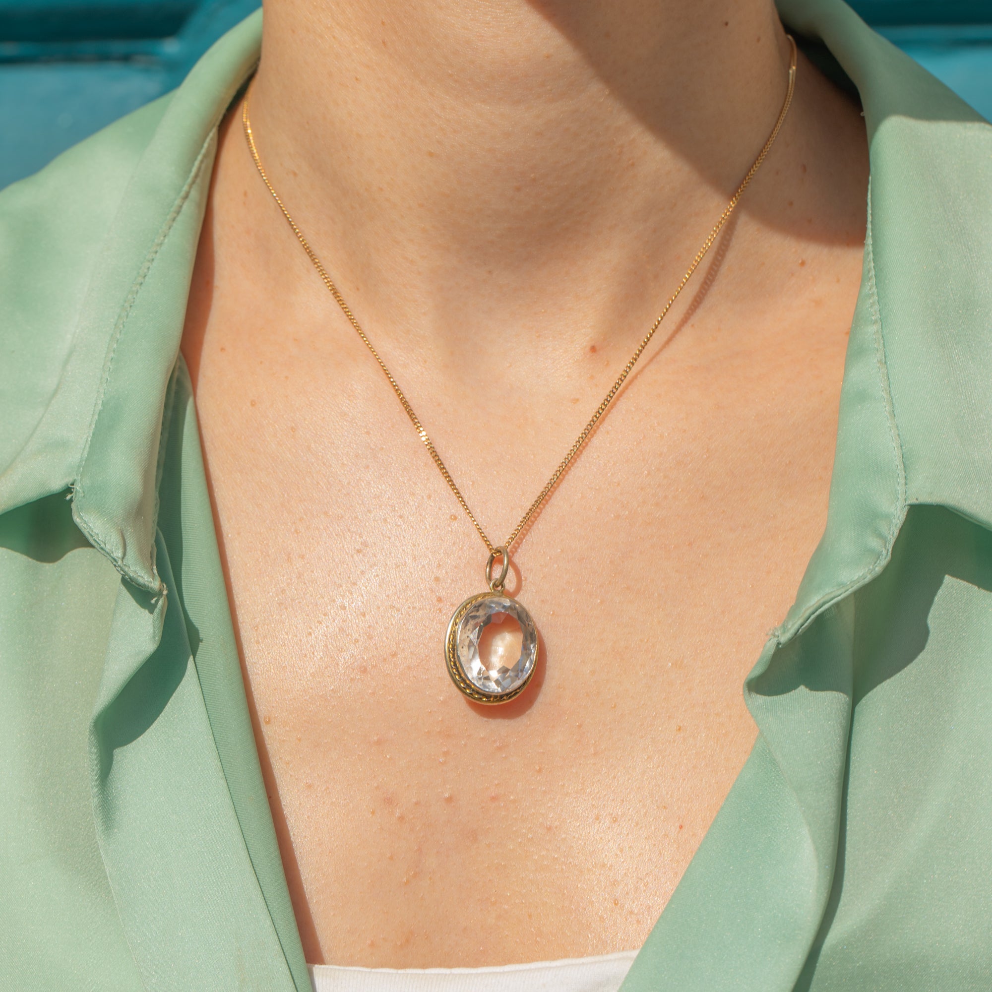 This antique Silver Rock Crystal pendant will make a fine addition to your collection! At the centre of this treasure lies a faceted 9.45ct Rock Crystal, glimmering beautifully as it catches the light.