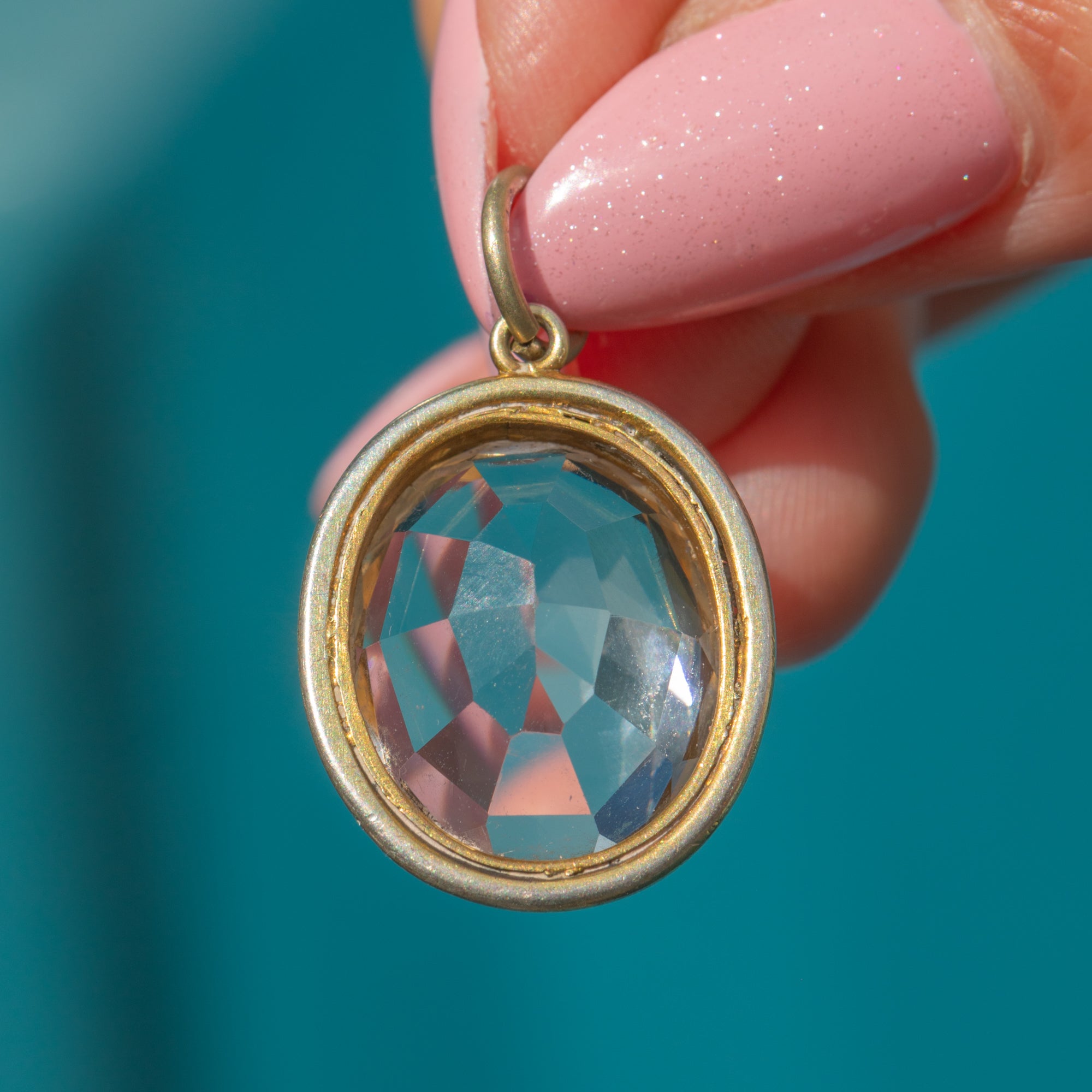 Rock crystal is 17mm long x 14mm wide, weighing approx 9.45ct.