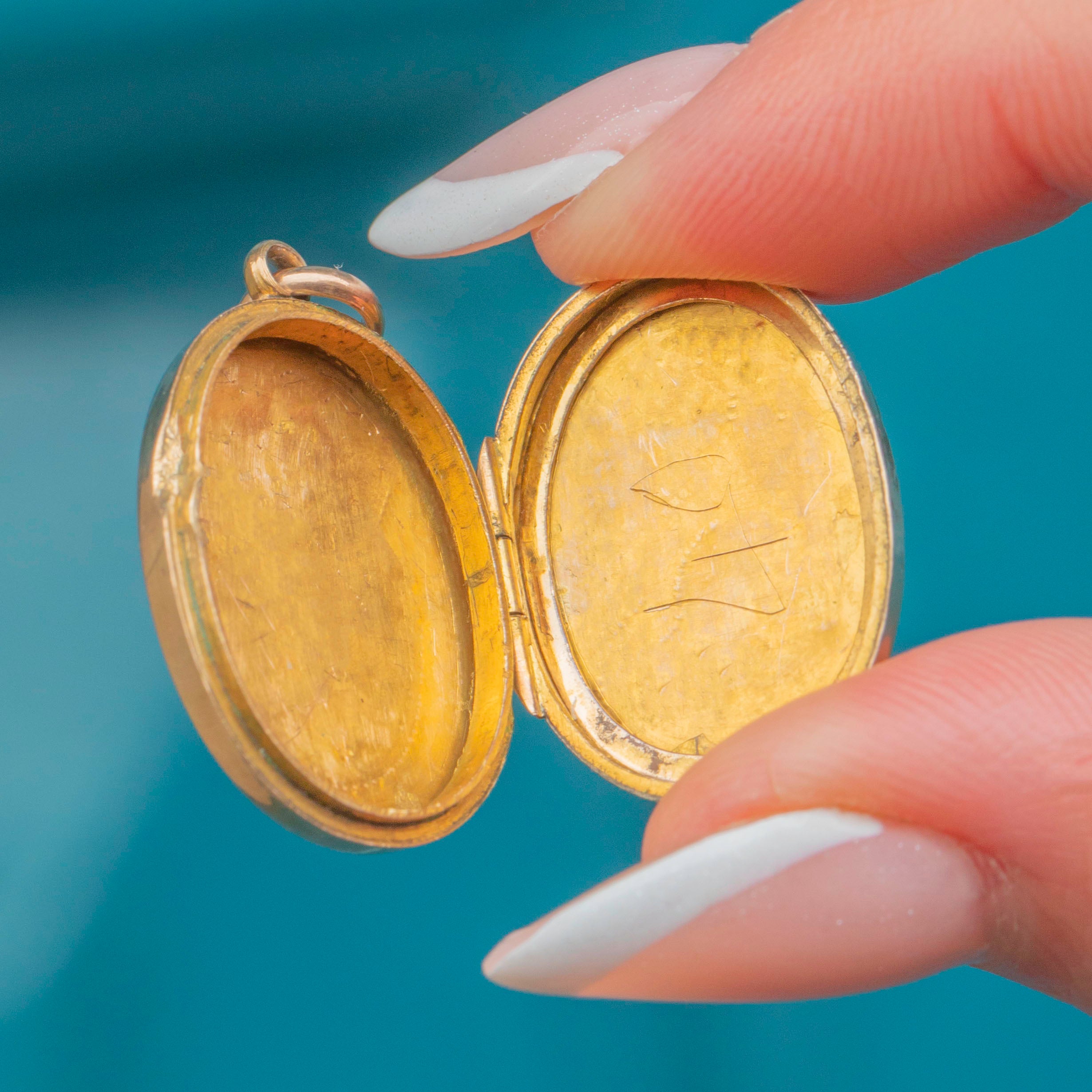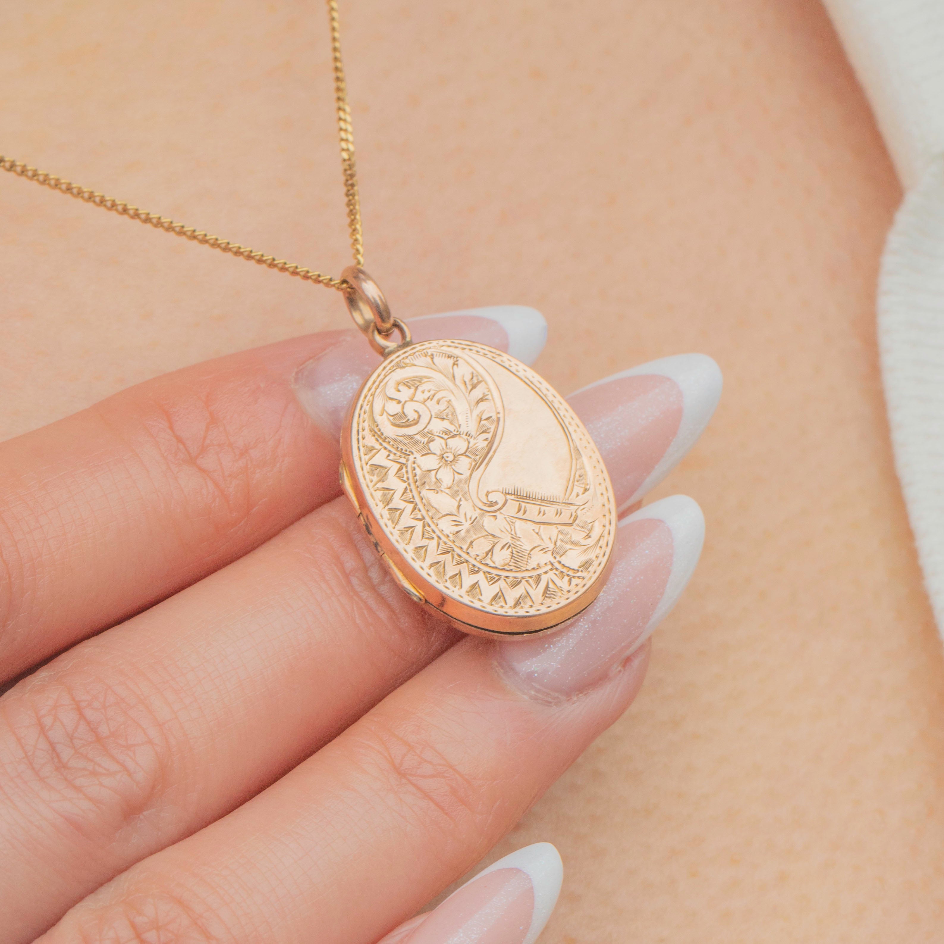 Antique Solid 9ct Gold Oval Engraved Locket