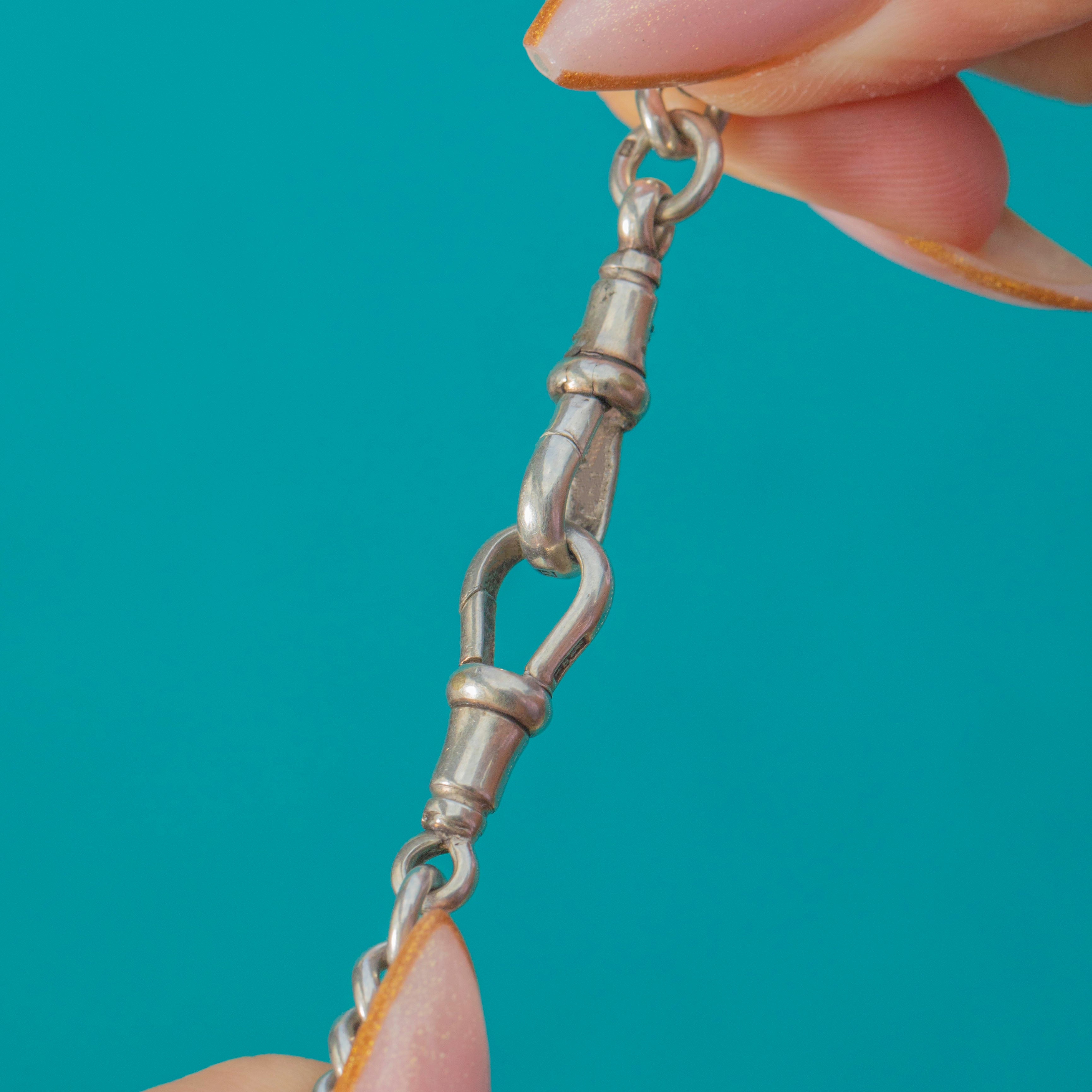 With its shorter, collar-style length, it sits perfectly as a standalone statement or layered with your favourite pendants and lockets. The original T-bar and matching dog-clips make it wonderfully versatile, whether you wear it as a traditional Albert, a chunky choker, or as part of a more elaborate antique neckmess.