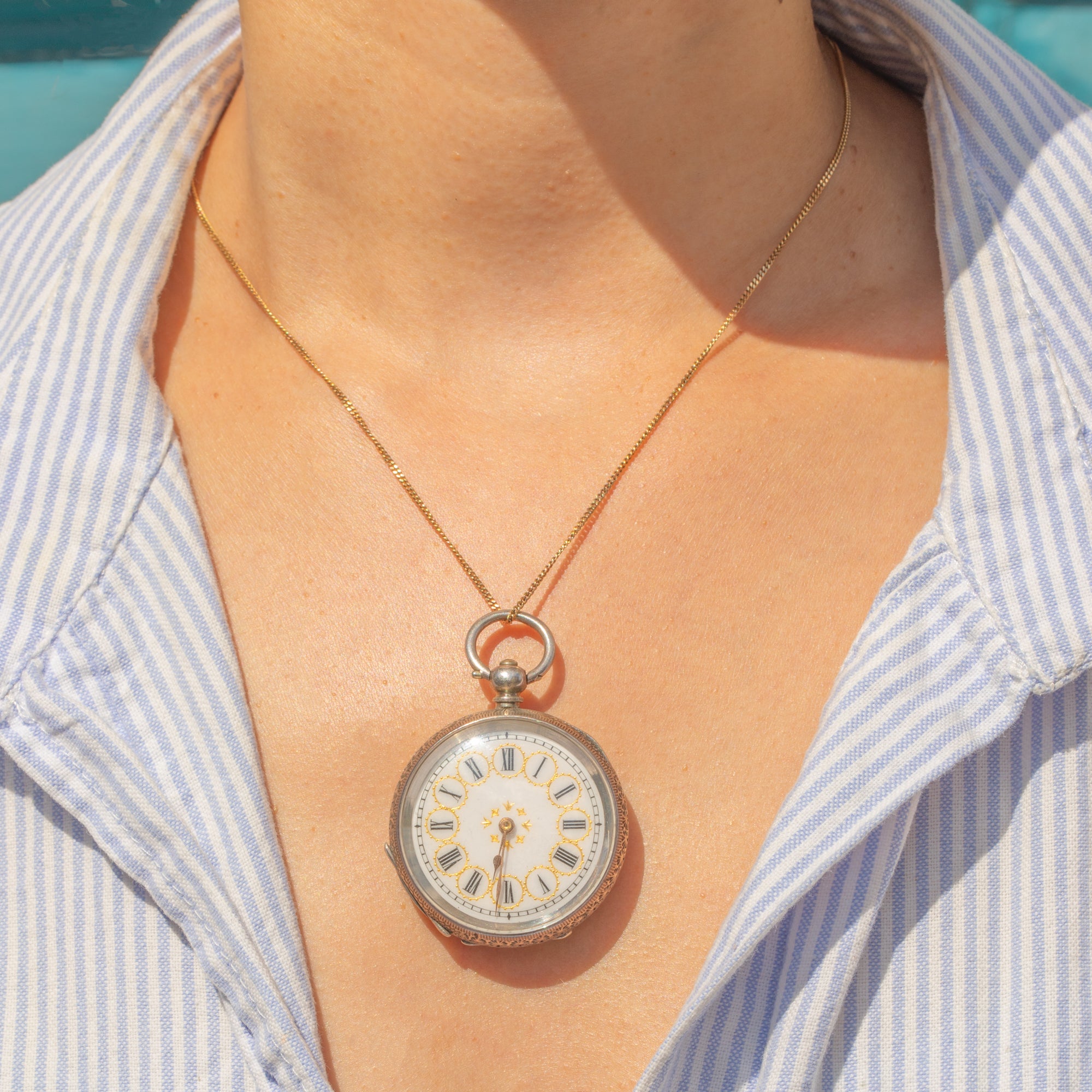 EXCELLENT: The watch can be opened easily by applying pressure to the bale, revealing its historic hallmarks inside. The engravings have remained crisp, as have the details on the watch face. Though it no longer functions to tell the time, you are still able to listen to this antique pocket watch tick. With a secure bale, this wonderful piece can be worn with confidence!