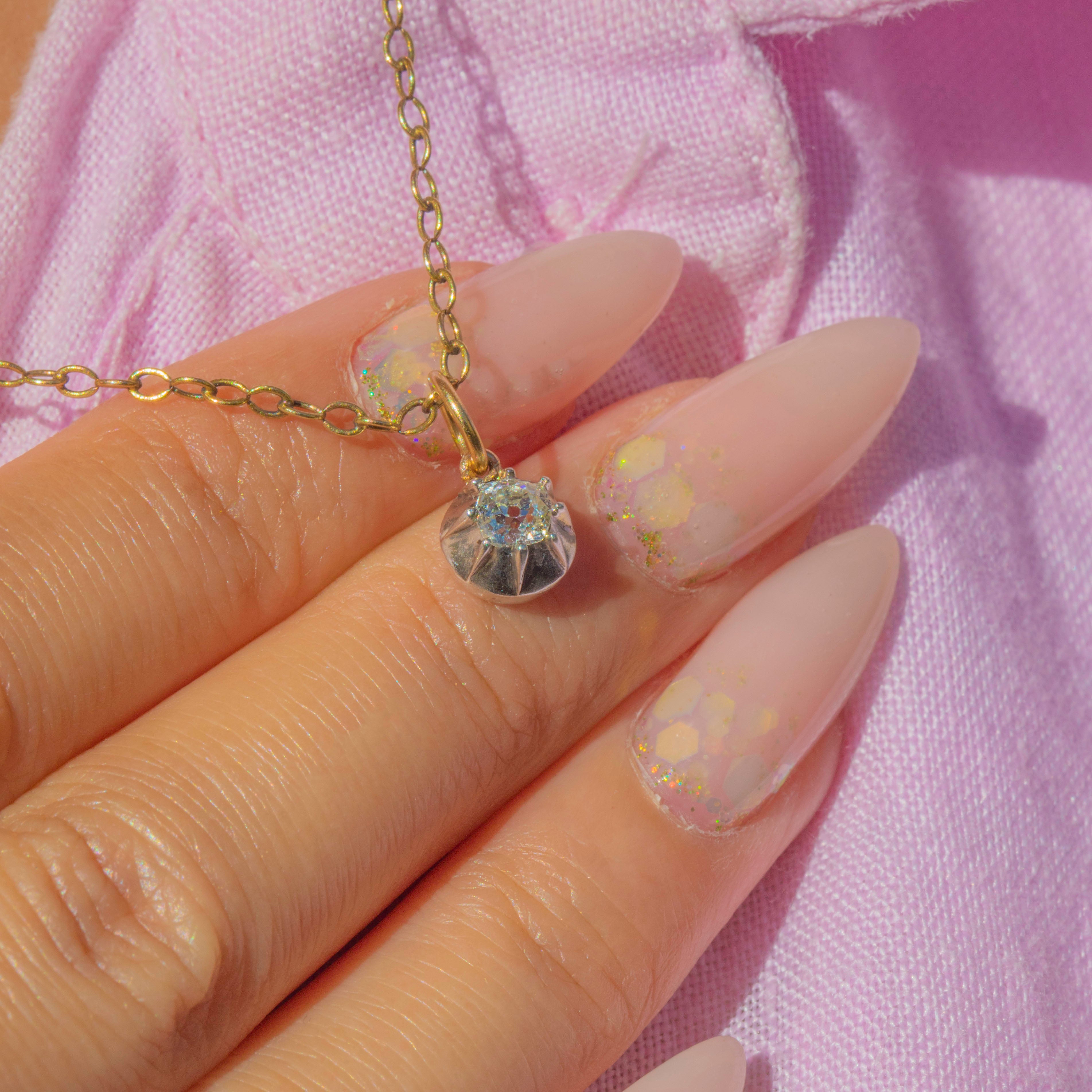 The Diamond is mounted in a traditional Sterling Silver collet backed in rich 18ct Gold, finished with an 18ct Gold jump ring. A classic and impactful jewel, it would make a wonderful addition to a charm bracelet or look elegant suspended on a fine antique chain.