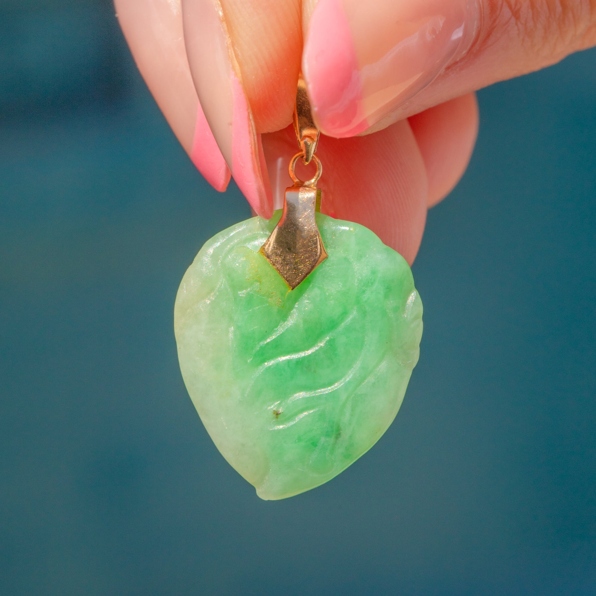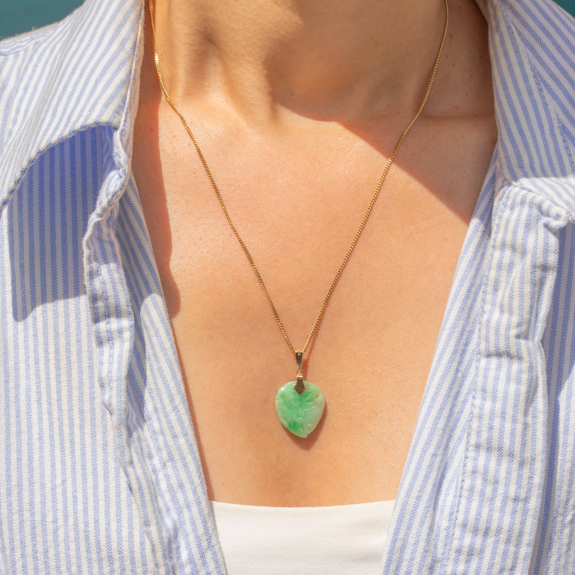 Art Deco 14ct Gold Carved Jade Heart Pendant
