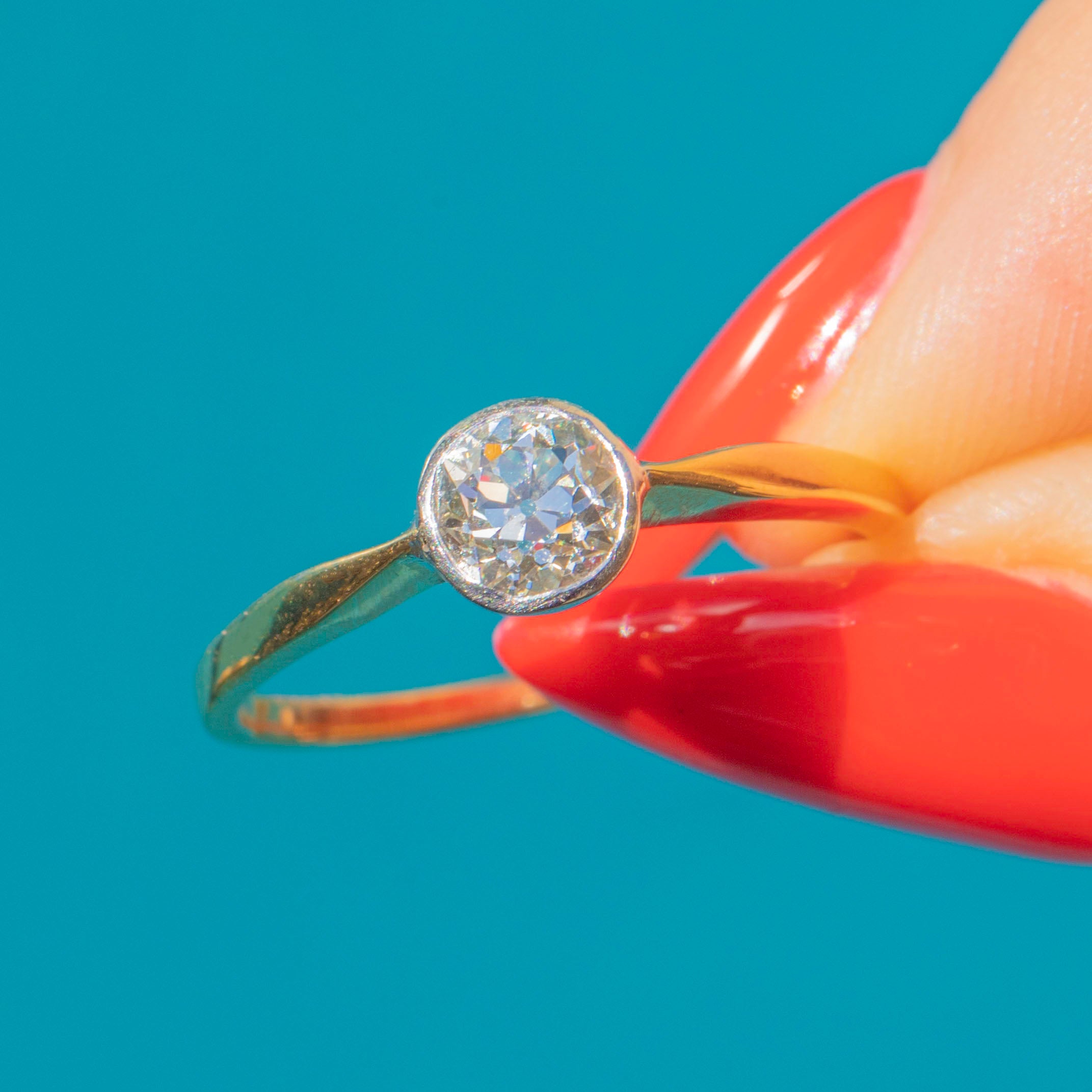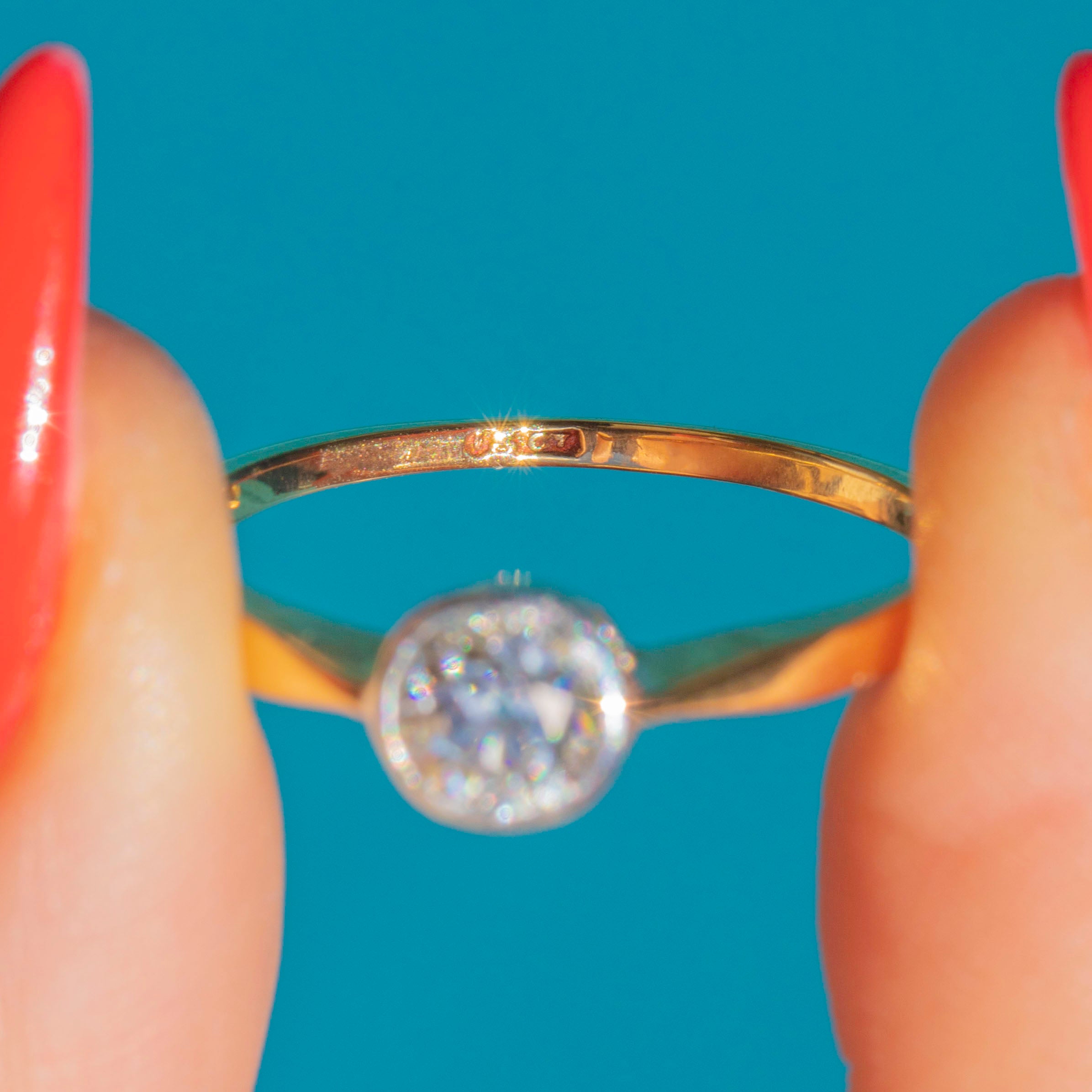 The size of this Old-European Diamond captures just the right balance between sparkle and practicality, and complete with a robust 18ct Gold shank this piece can be worn with the utmost confidence. This Art Deco Diamond ring would make a superb choice for a unique engagement ring!