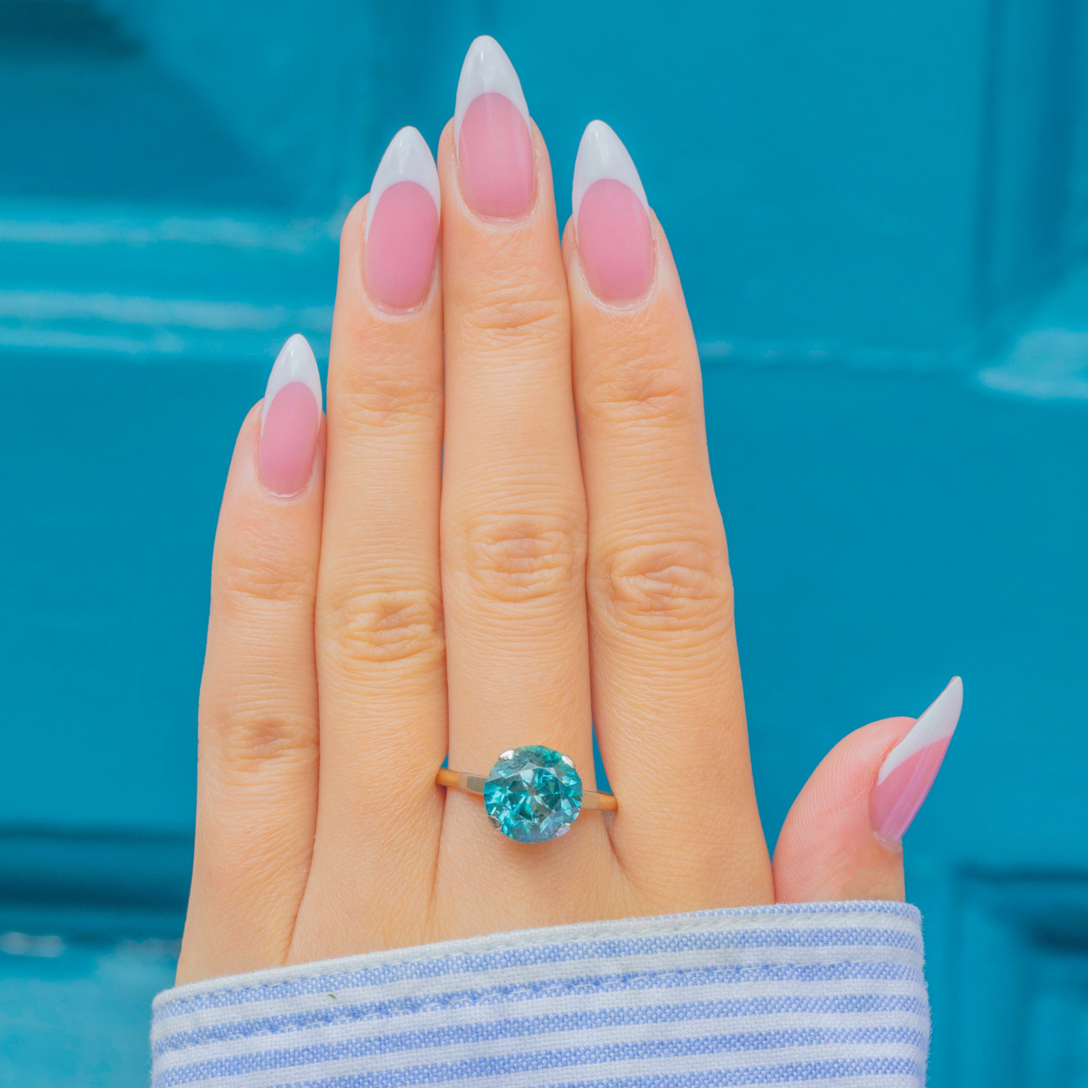 Art Deco 18ct Gold Blue Zircon Ring 4.45ct