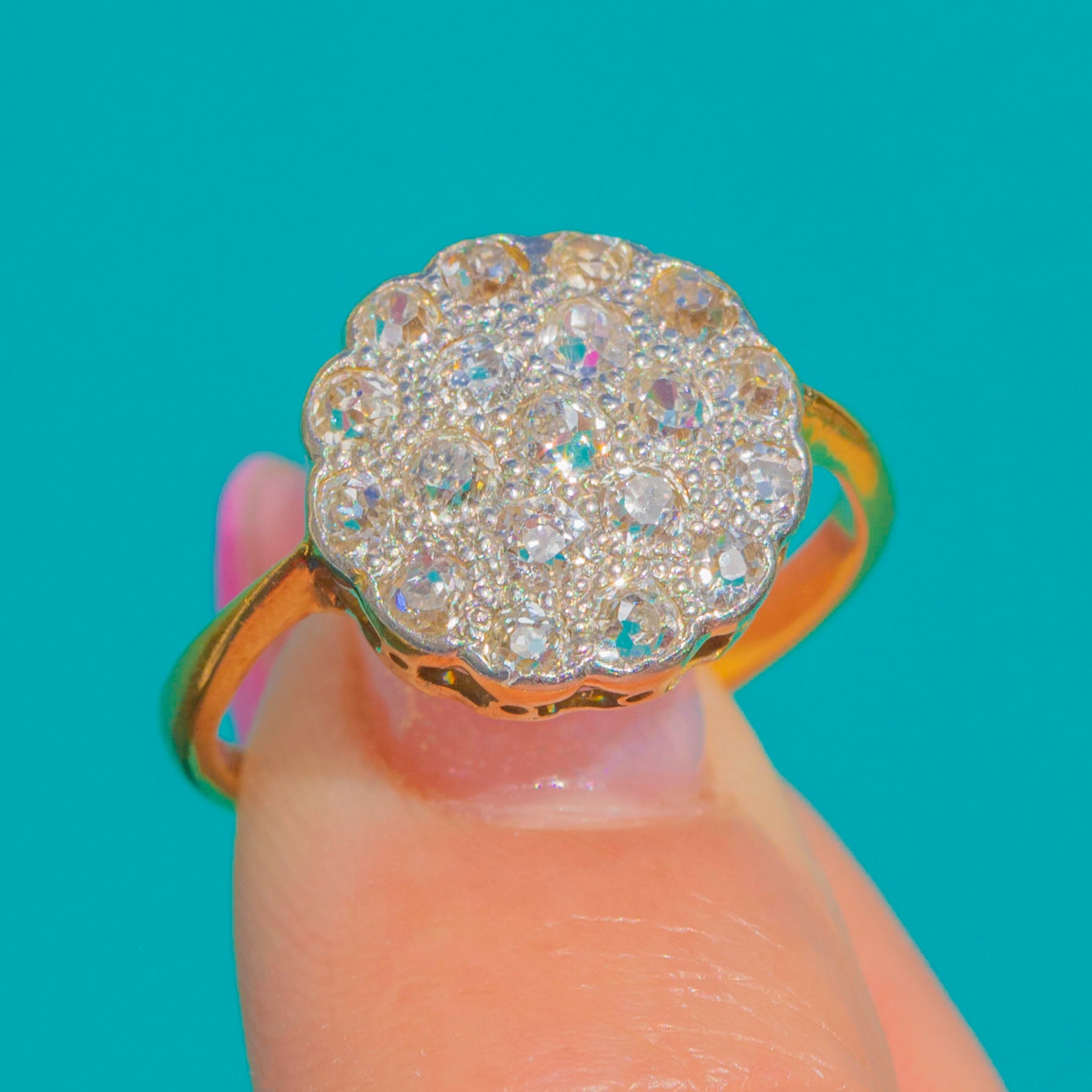 Art Deco 18ct Gold Diamond Cluster Engagement Ring