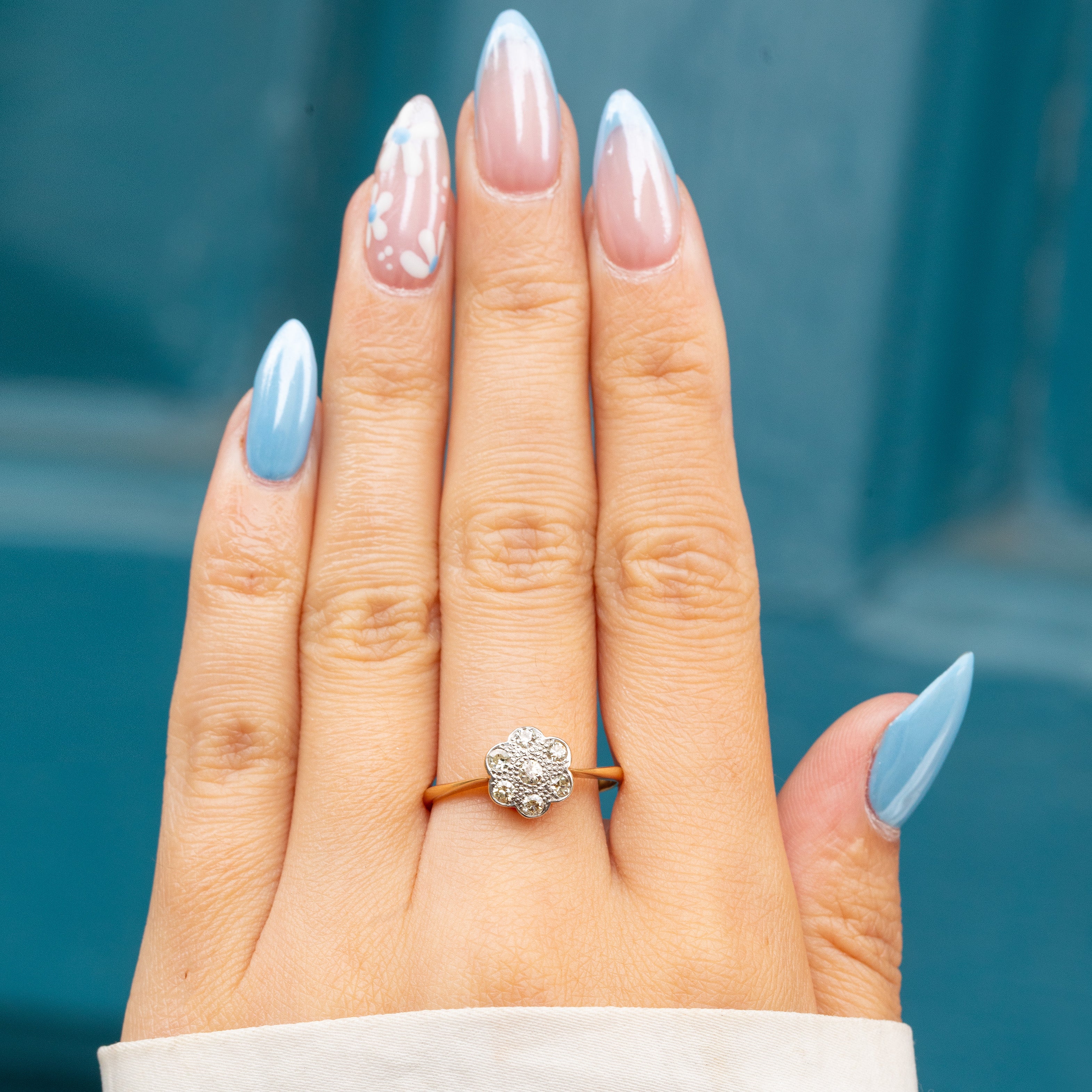 Timelessly charming, this Art Deco Diamond cluster ring is formed into a delicate floral daisy motif, whose bloom will be everlasting!