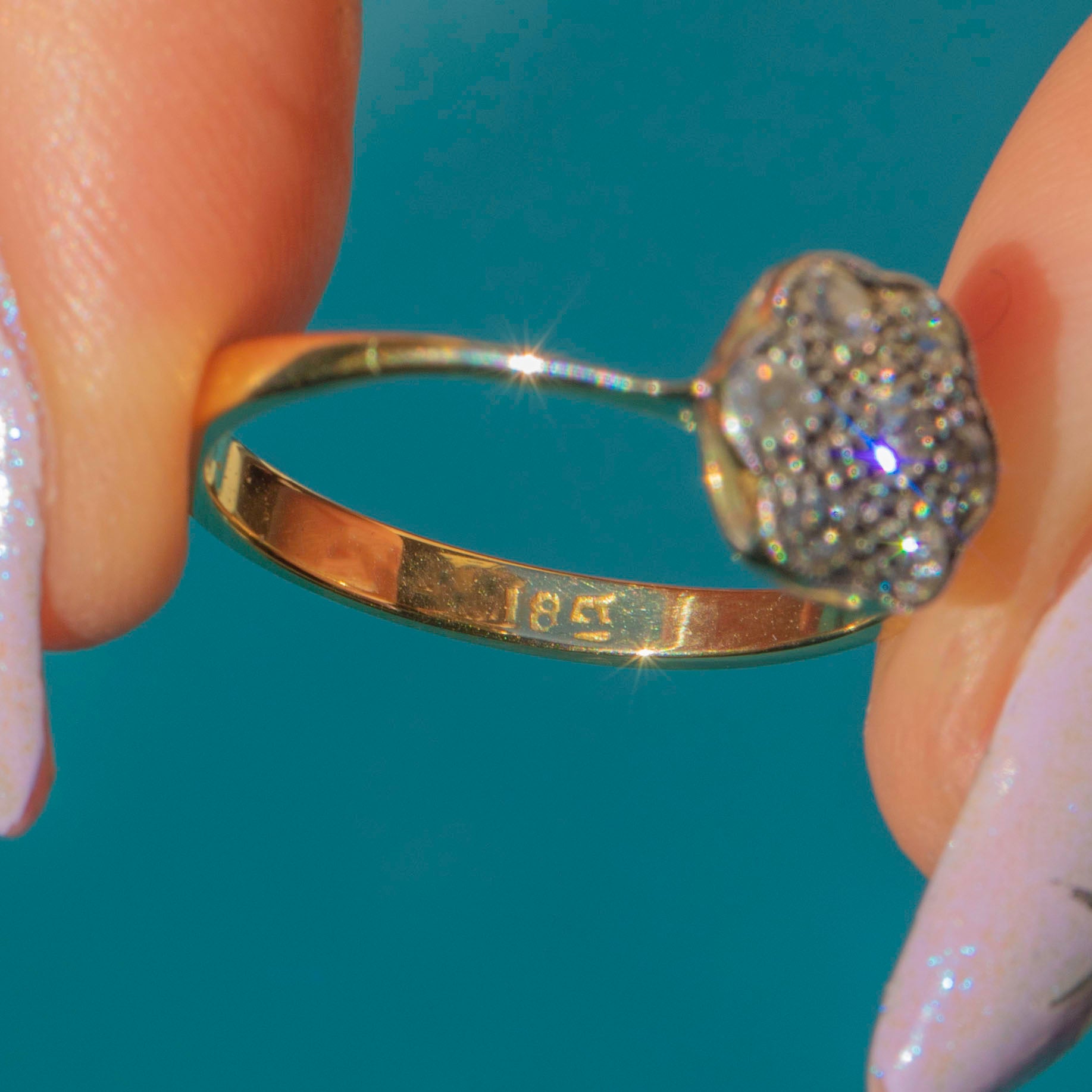 STAMPS: 18ct on ring band.