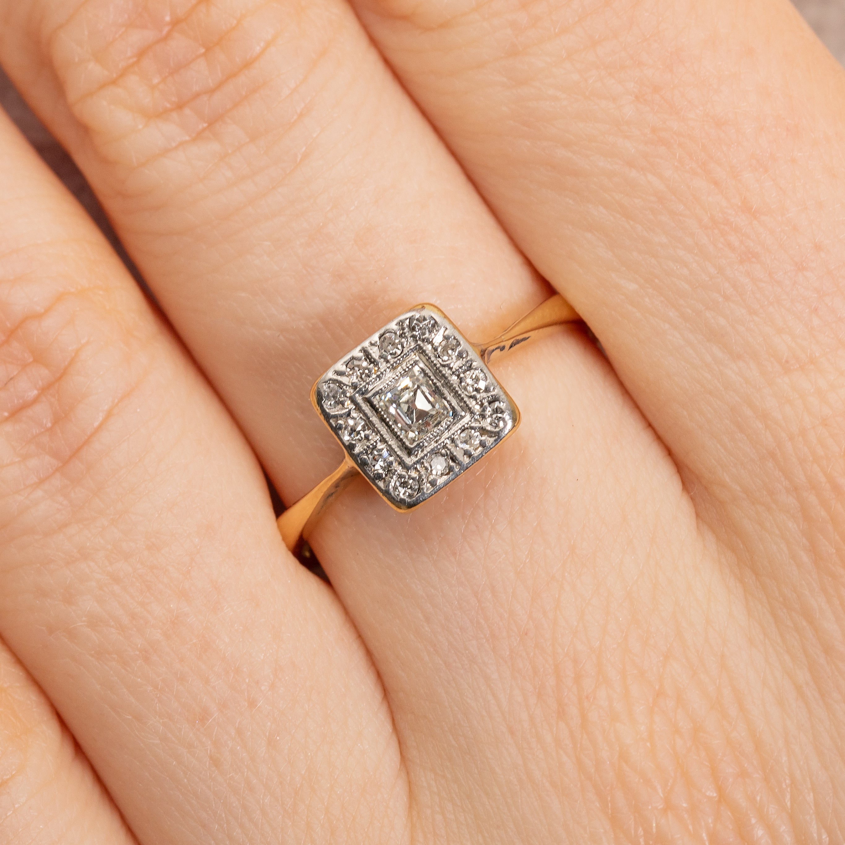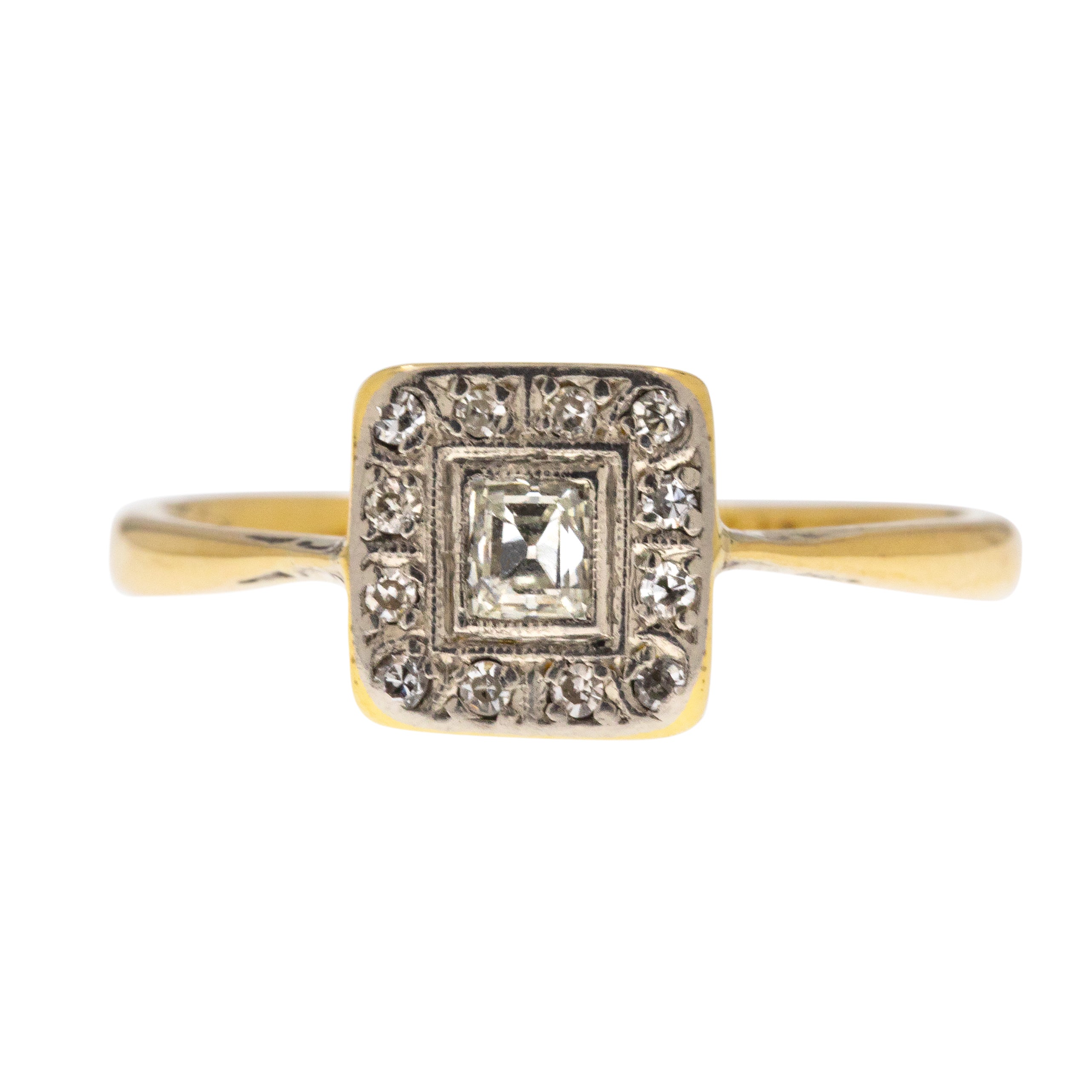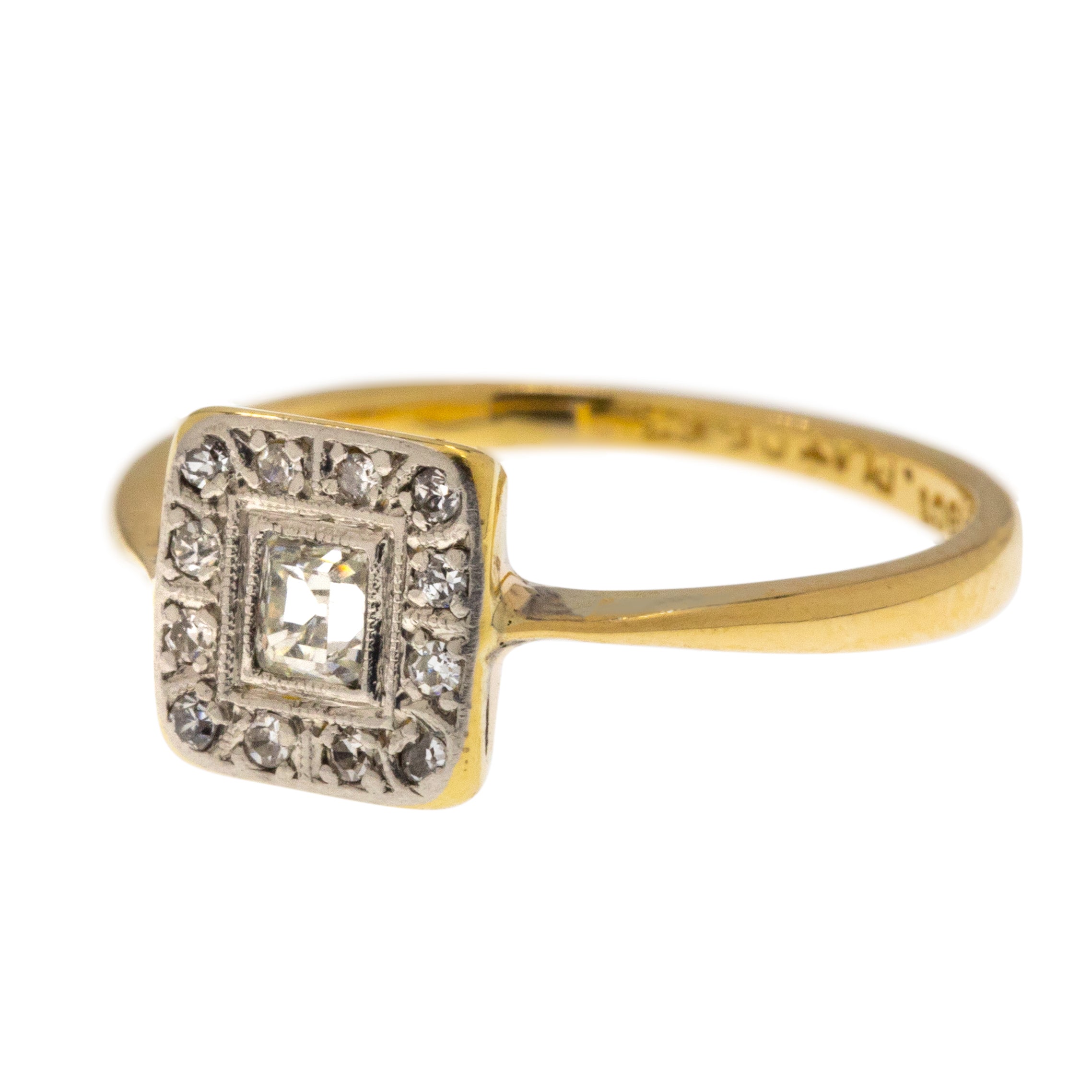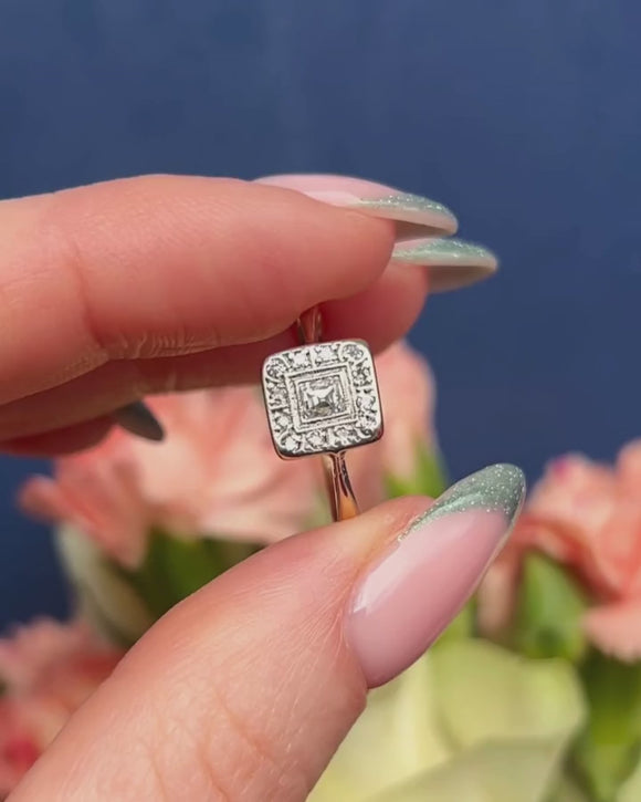 Art Deco 18ct Gold & Platinum Diamond Panel Ring