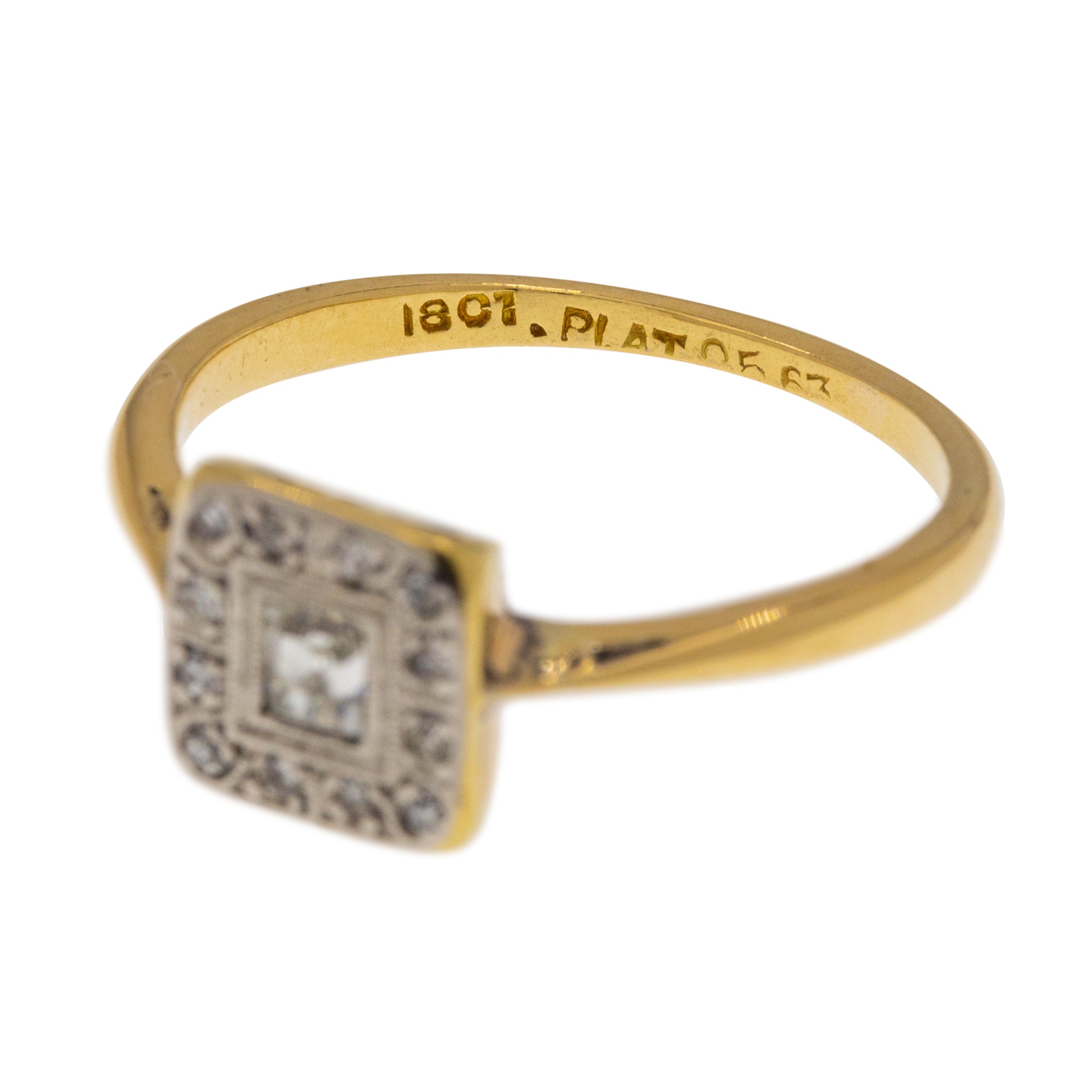 STAMPS: "18CT", "PLAT" on the inside of the band.