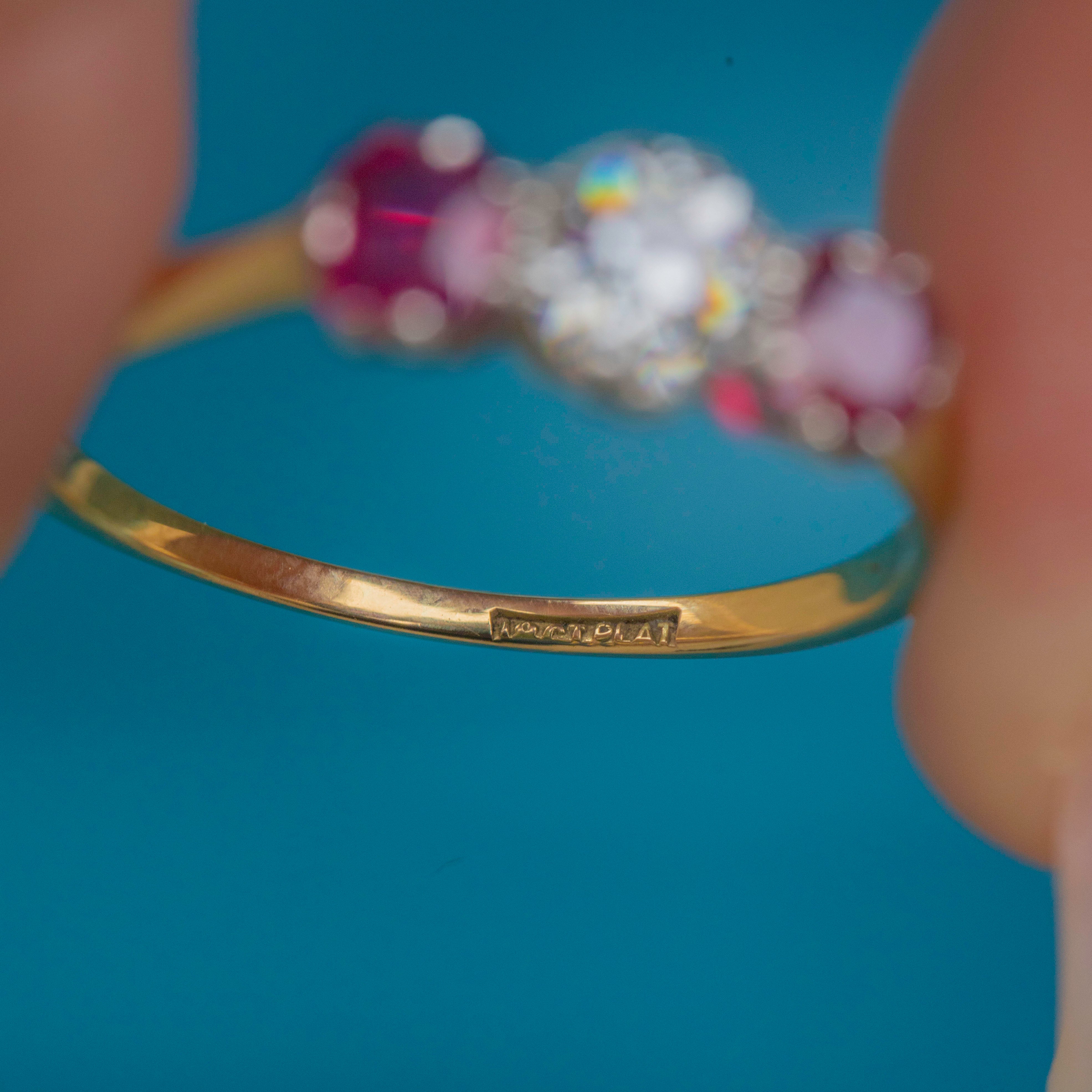 Art Deco 18ct Gold Ruby and Diamond Trilogy Engagement Ring