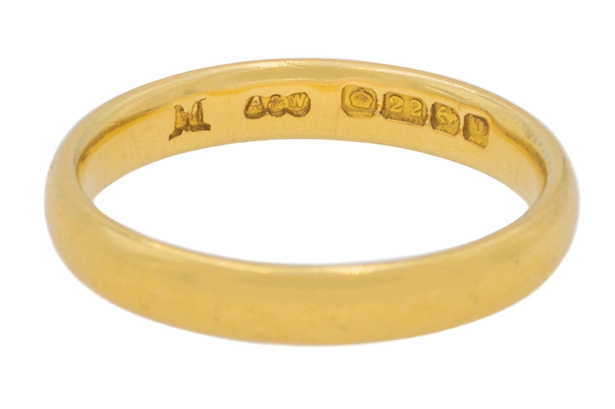 STAMPS & HALLMARKS: 'A&W', Crown, 22, Birmingham Assay, D for 1928.