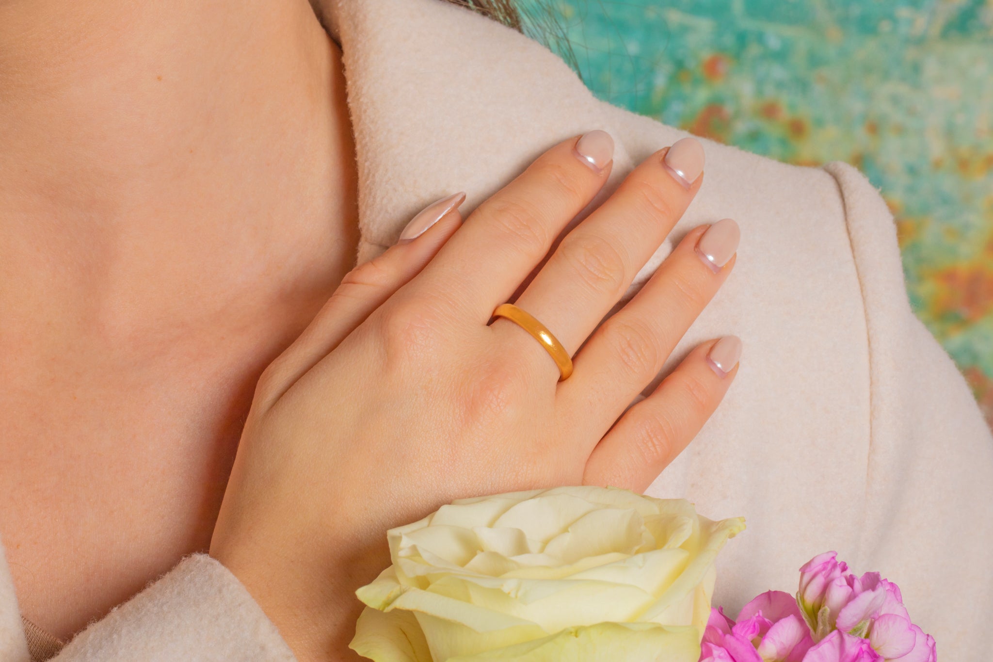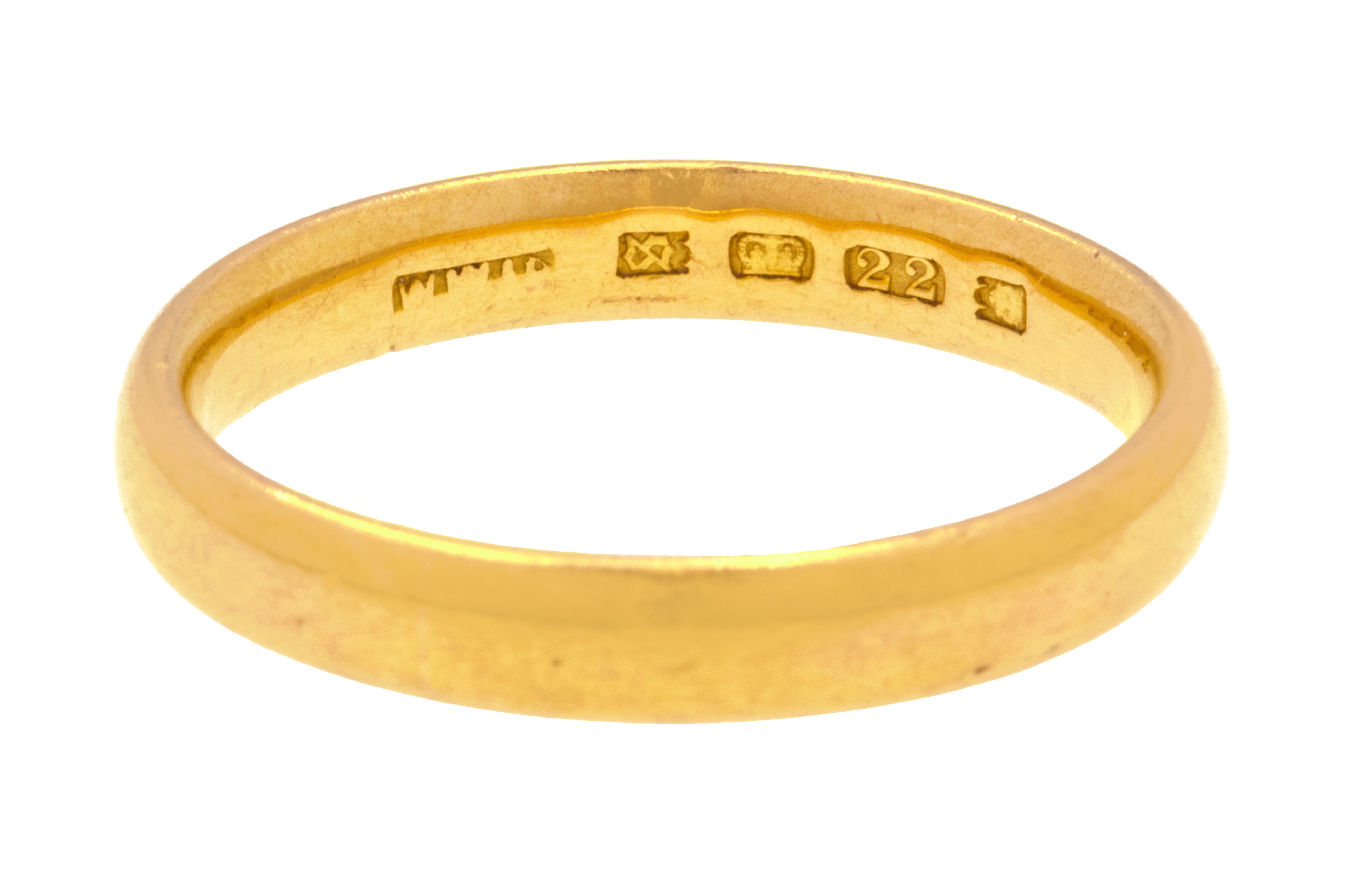 EXCELLENT. This Art Deco 22ct Gold wedding band is in excellent condition throughout, making her the perfect ring to say 'I do' too! Her 22ct Gold is rich and buttery throughout, with only light surface wear to the band. She has a full set of hallmarks on the inside of the band making her all the more special. With little to report on this timeless piece, she is truly amazing at over 90 years old!