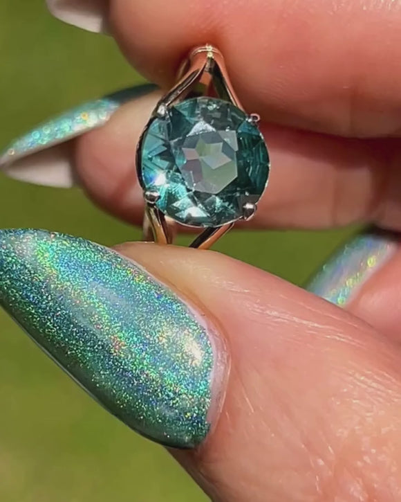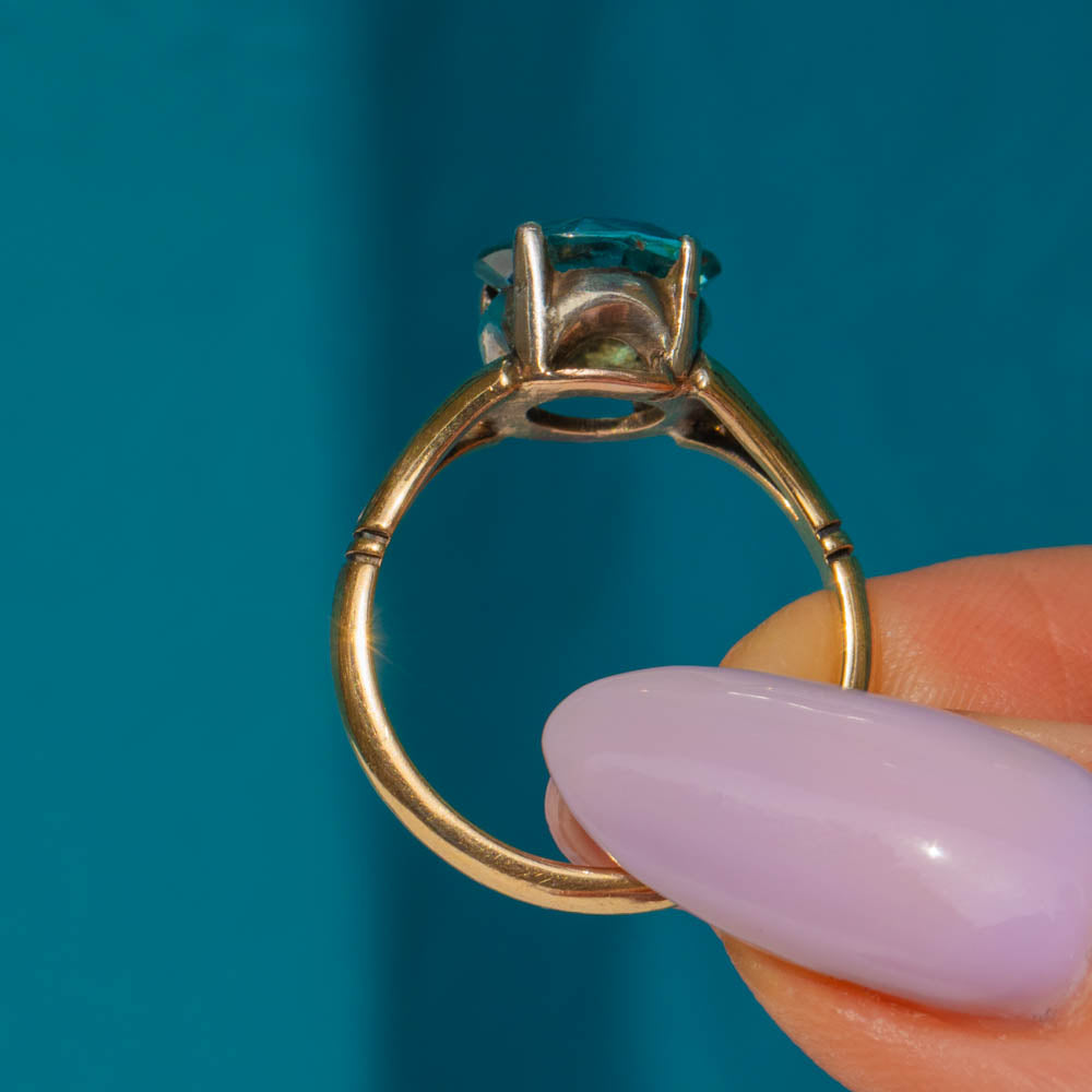 Art Deco 9ct Gold Blue Zircon Solitaire Ring, 2.21ct