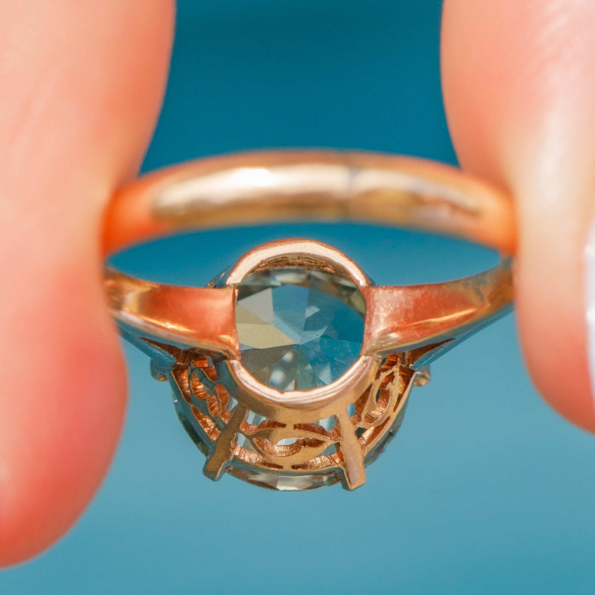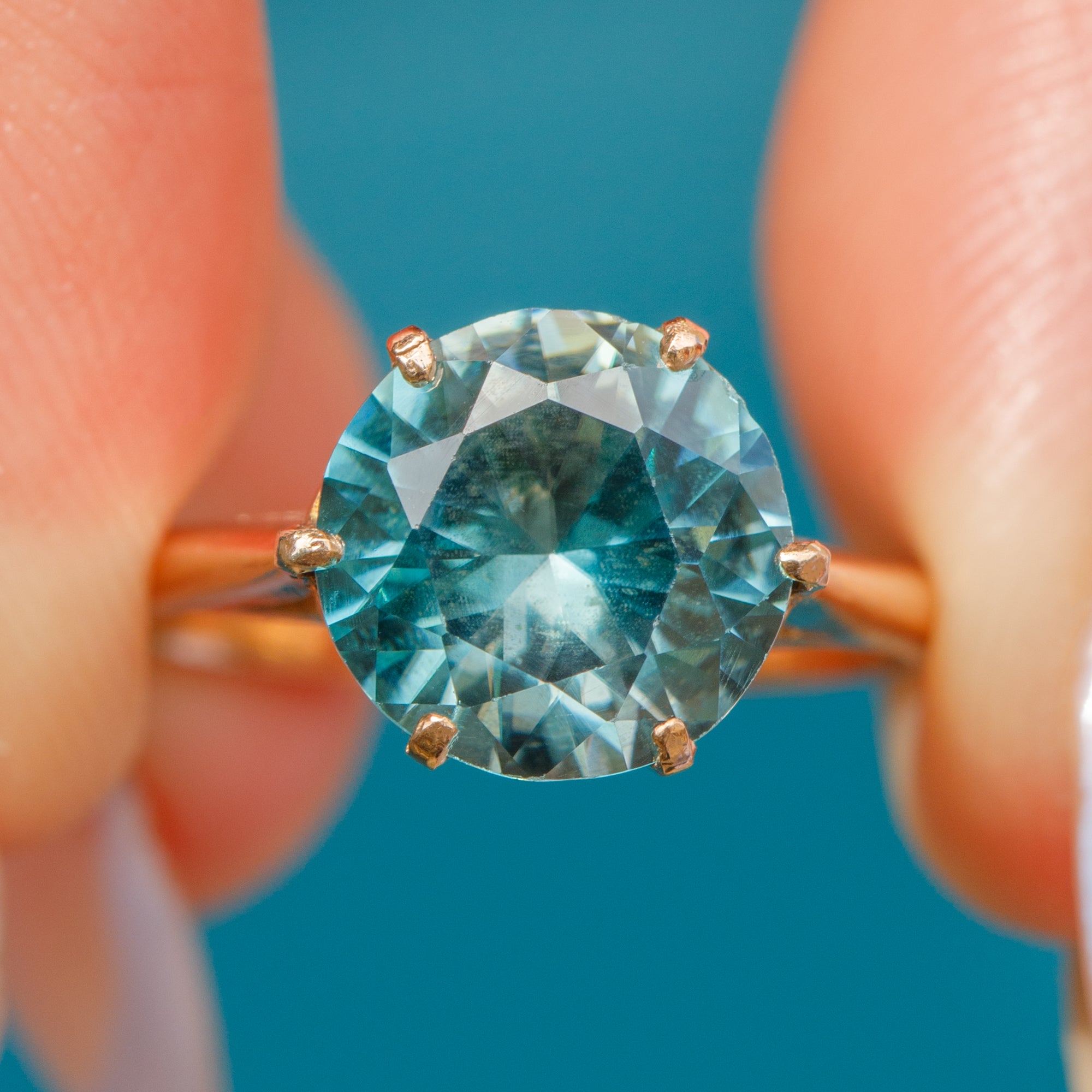 Art Deco 9ct Gold Blue Zircon Solitaire Ring, 2.85ct