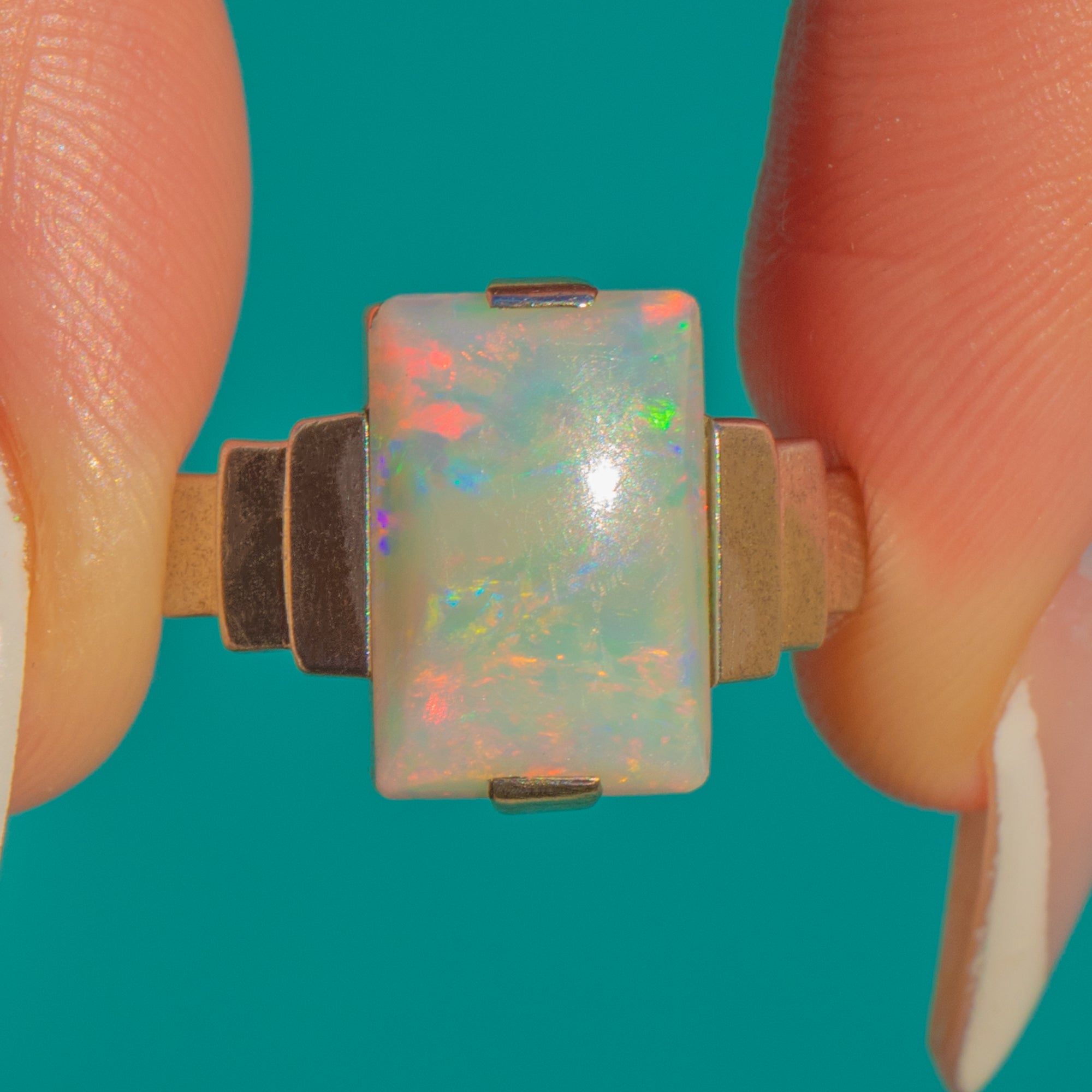 Art Deco 9ct Gold Rectangular Opal Solitaire Ring