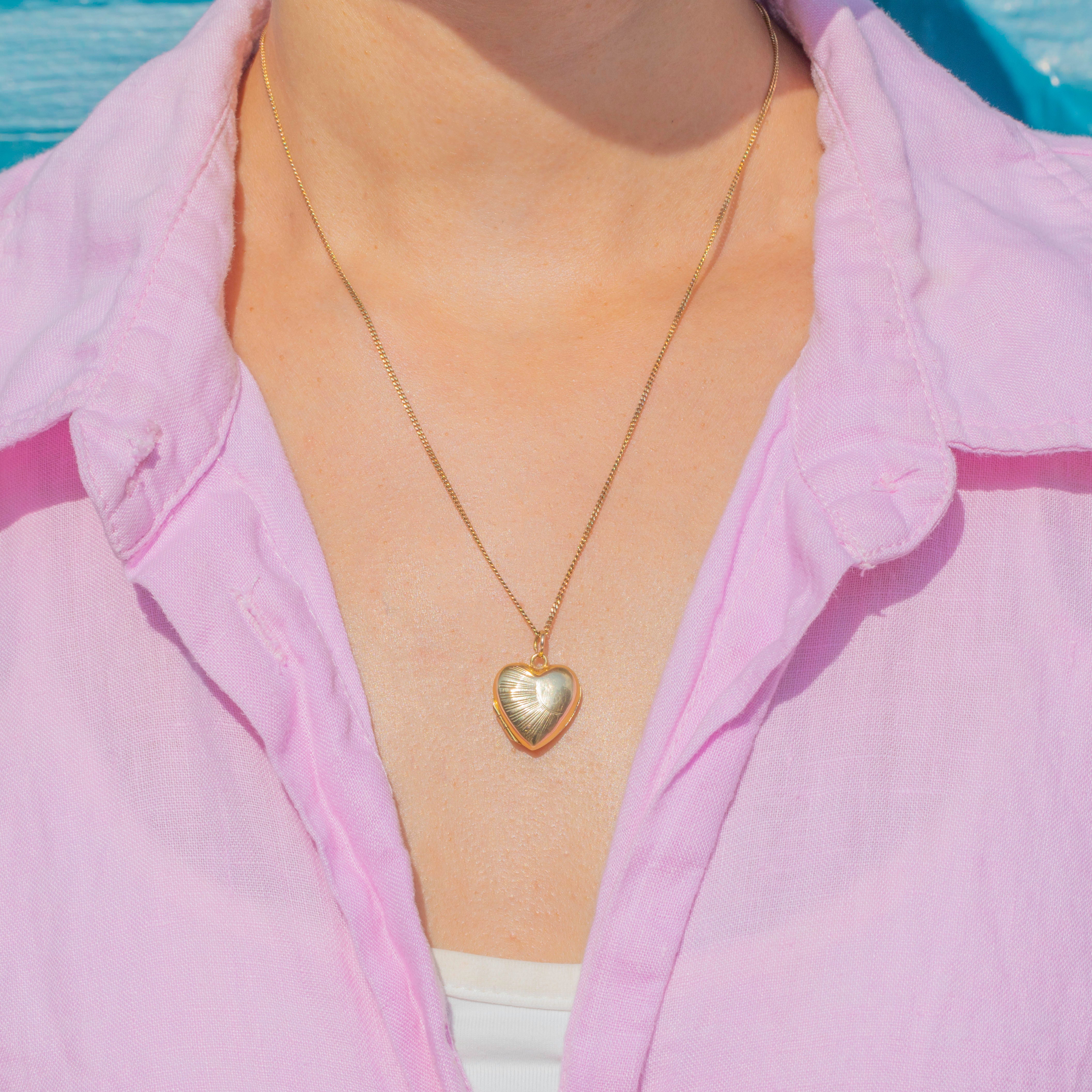 Art Deco 9ct Gold Sunburst Heart Locket