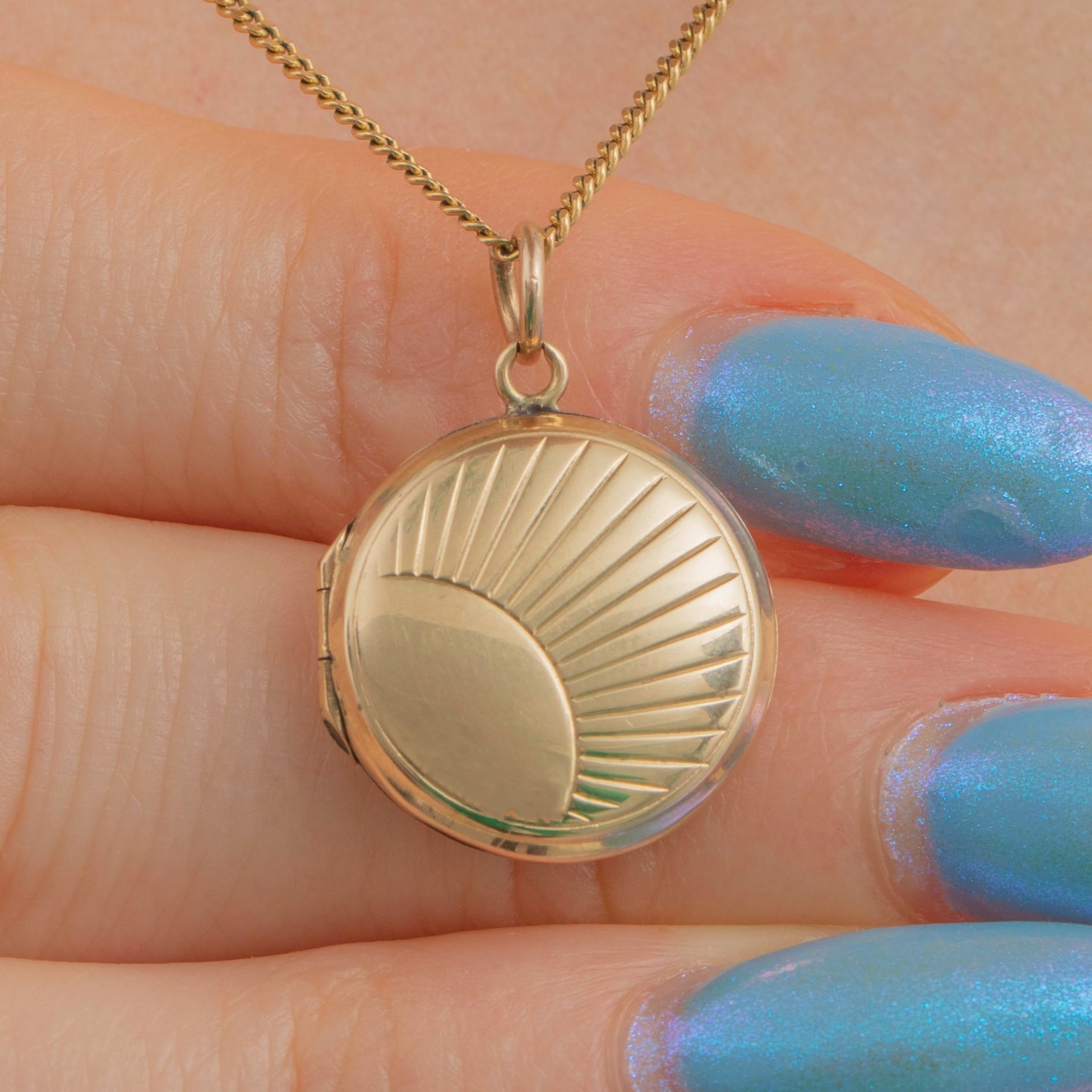 This Art Deco 9ct Gold sunburst locket is a beautiful piece from the 1920s. Symbolic of transformation and "good vibes", the sunburst motif adorns the front of this Gold locket, promising you the hope and optimism of a new day.