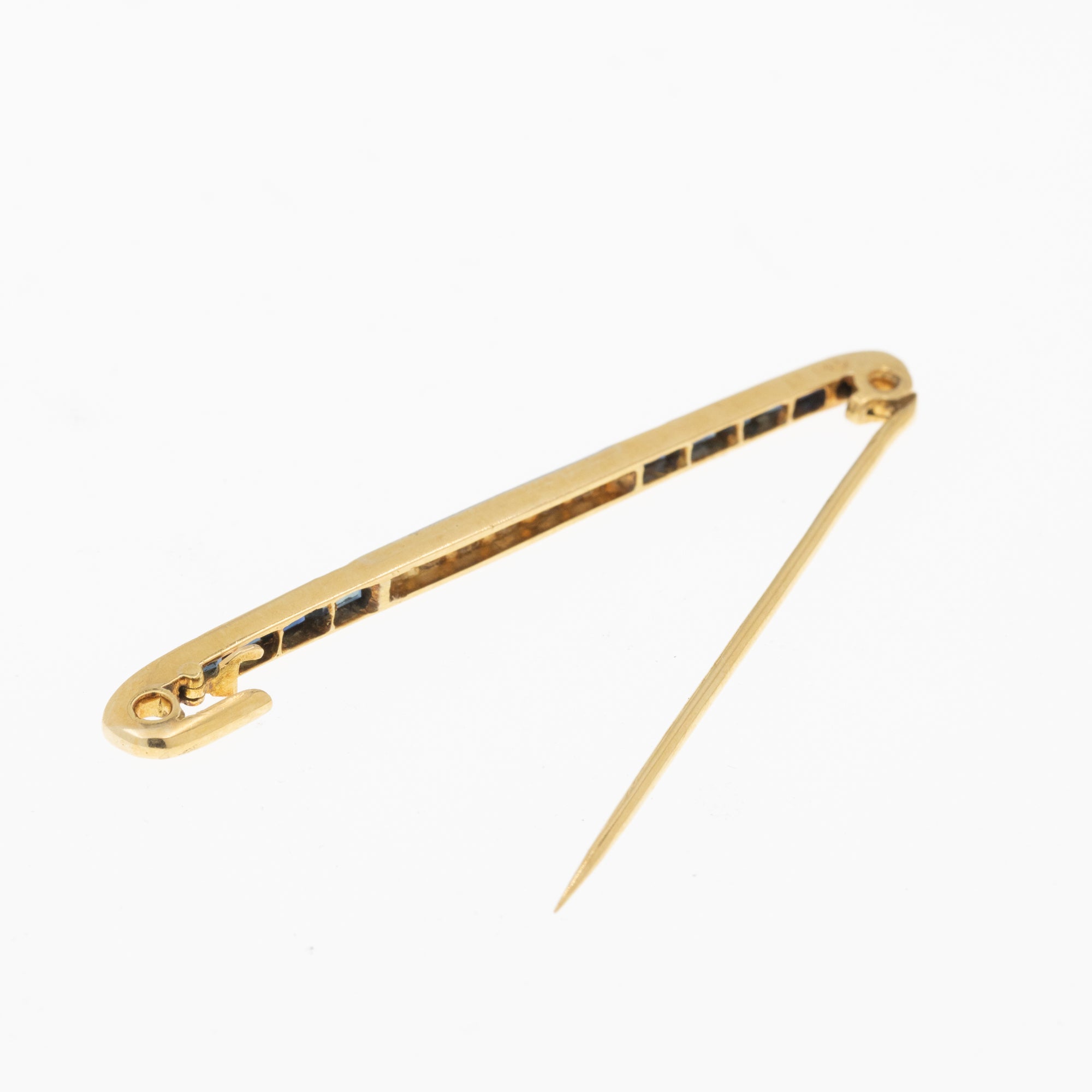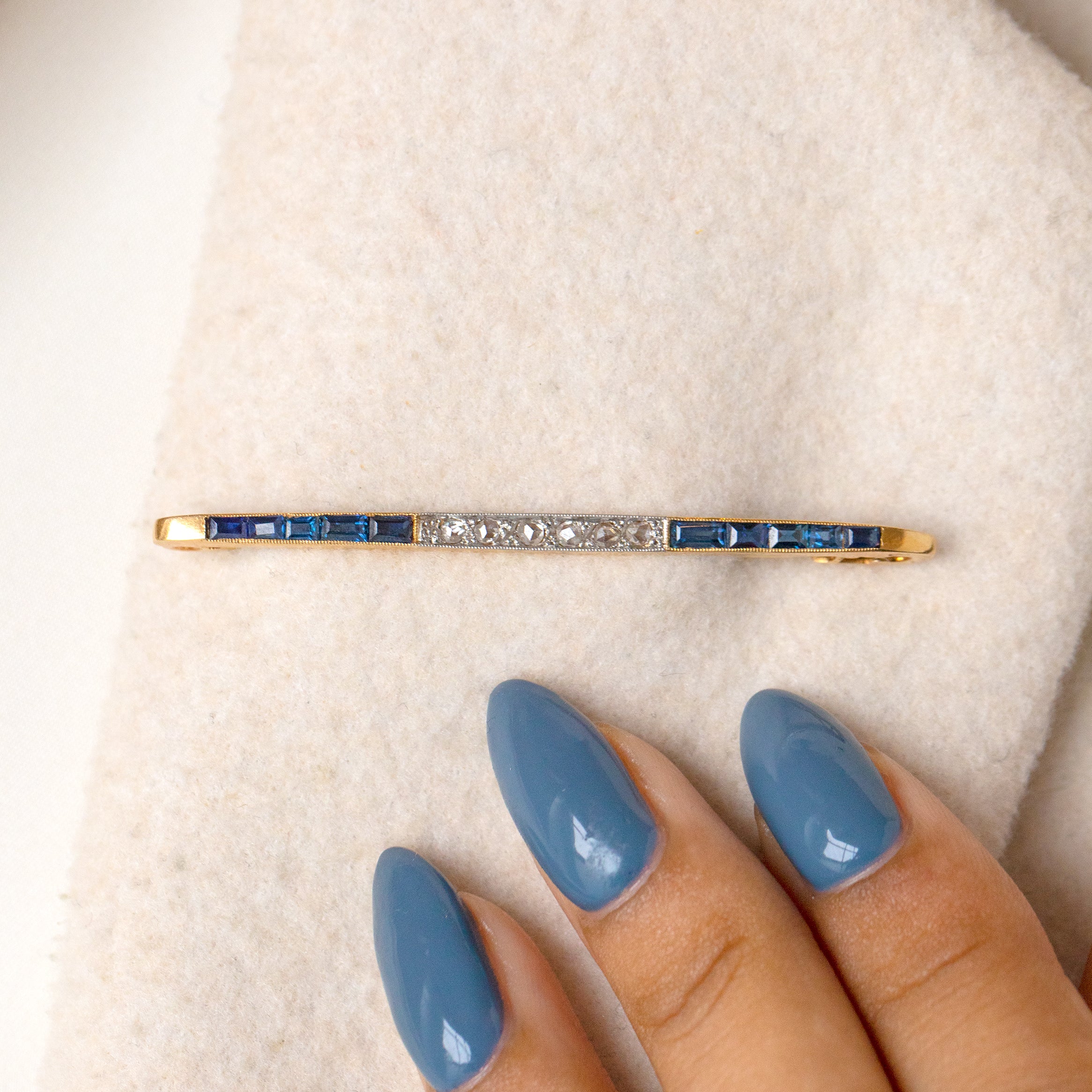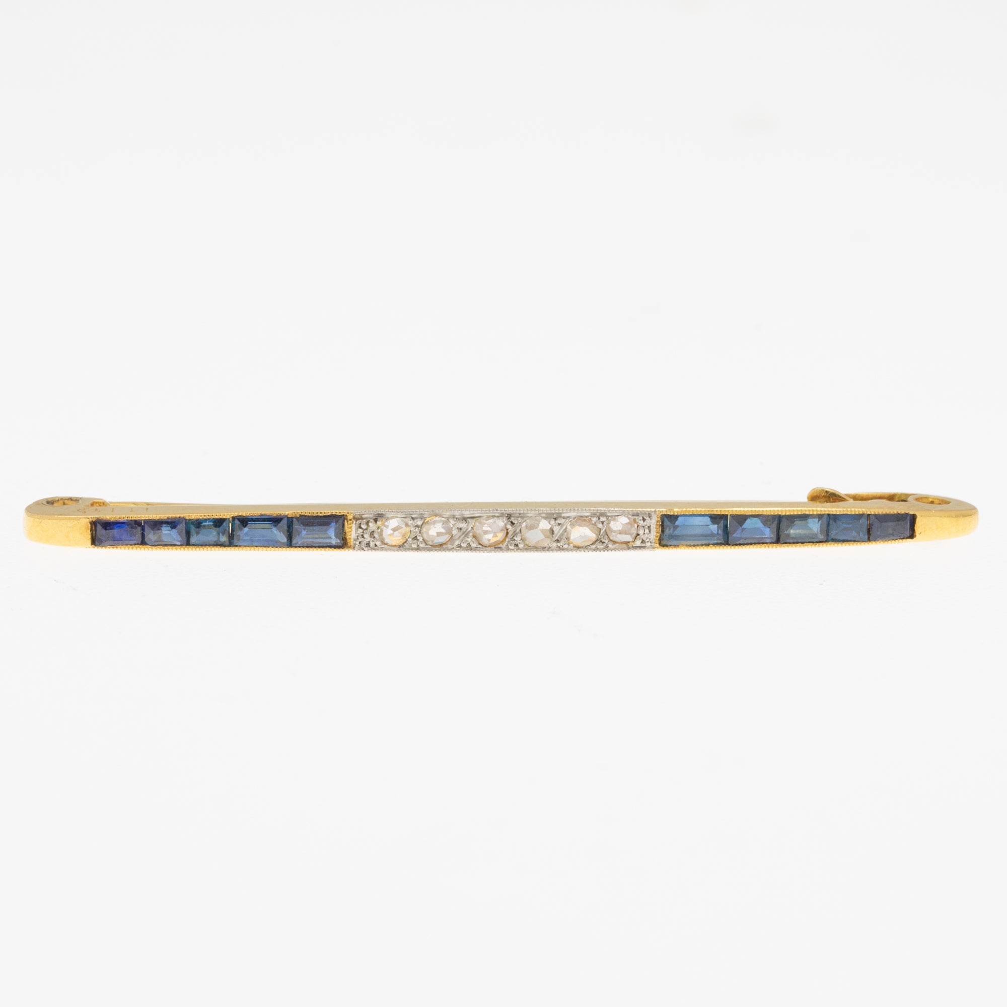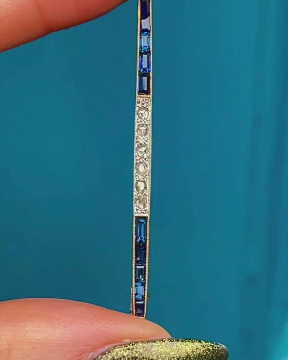 Art Deco French 18ct Gold Sapphire Diamond Bar Brooch