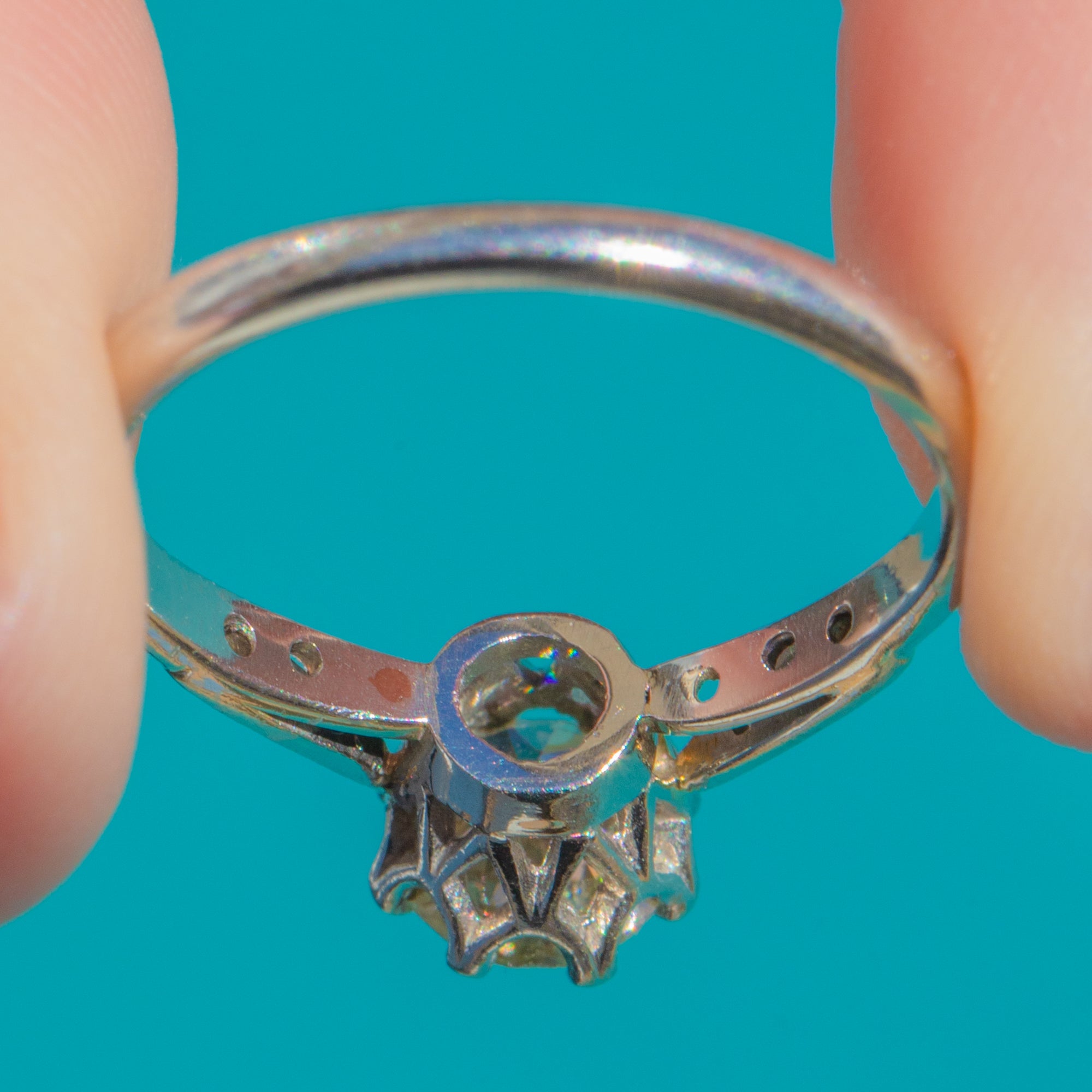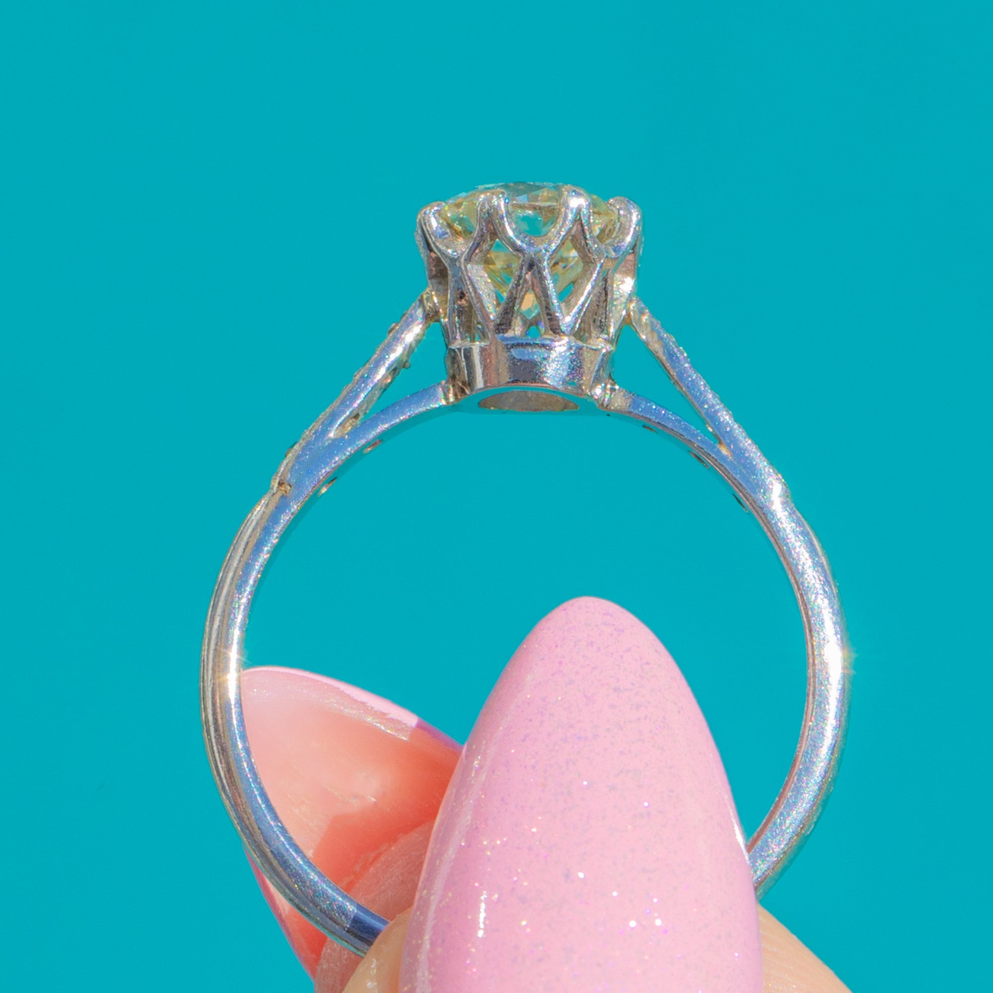 A luminous Art Deco solitaire, this Platinum ring showcases a captivating 0.75ct Old European Cut Diamond. Brimming with period charm, the stone’s broad facets deliver gorgeous fire and scintillation, with an elegant near‑colourless H–I hue and VS clarity for crisp, bright brilliance.