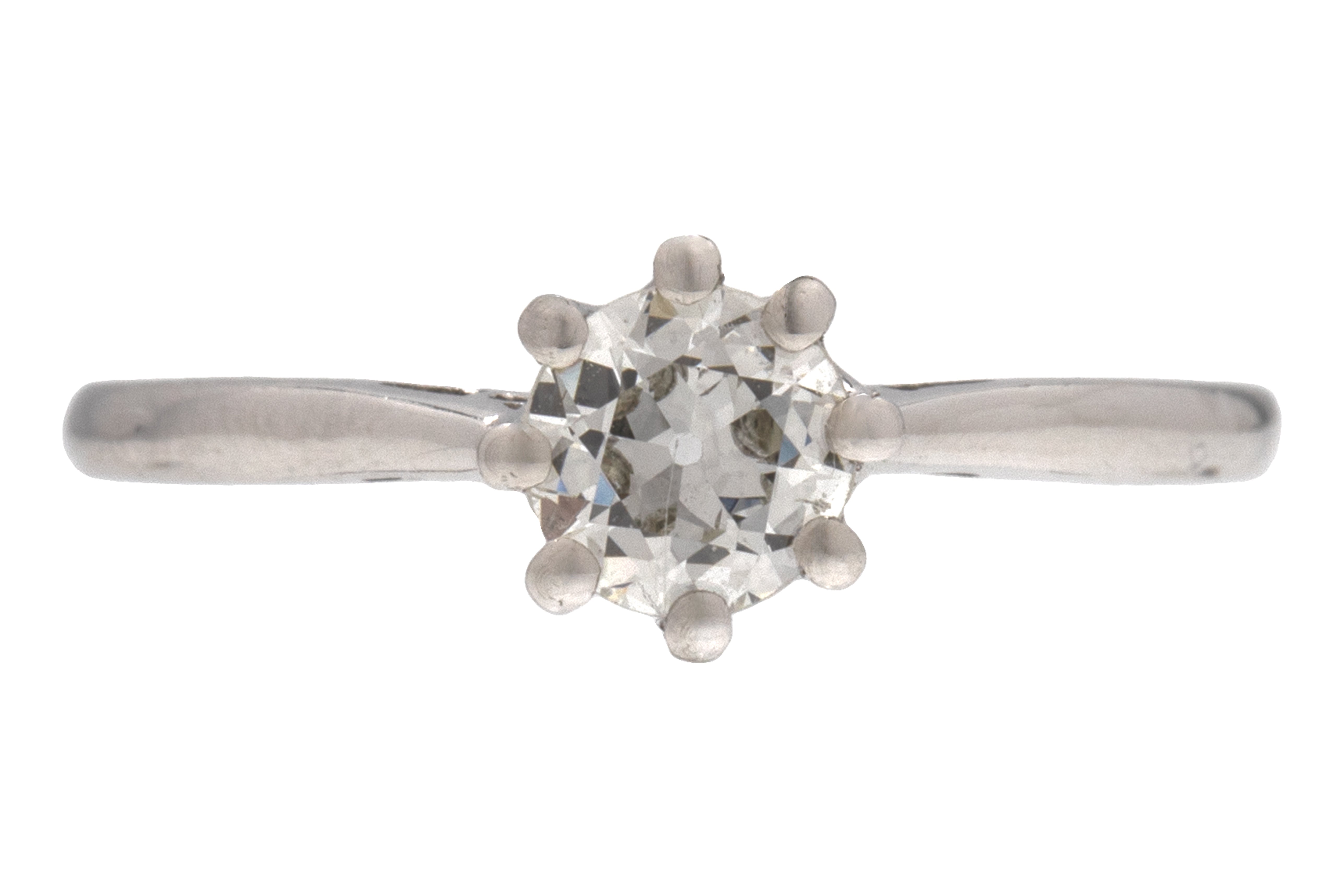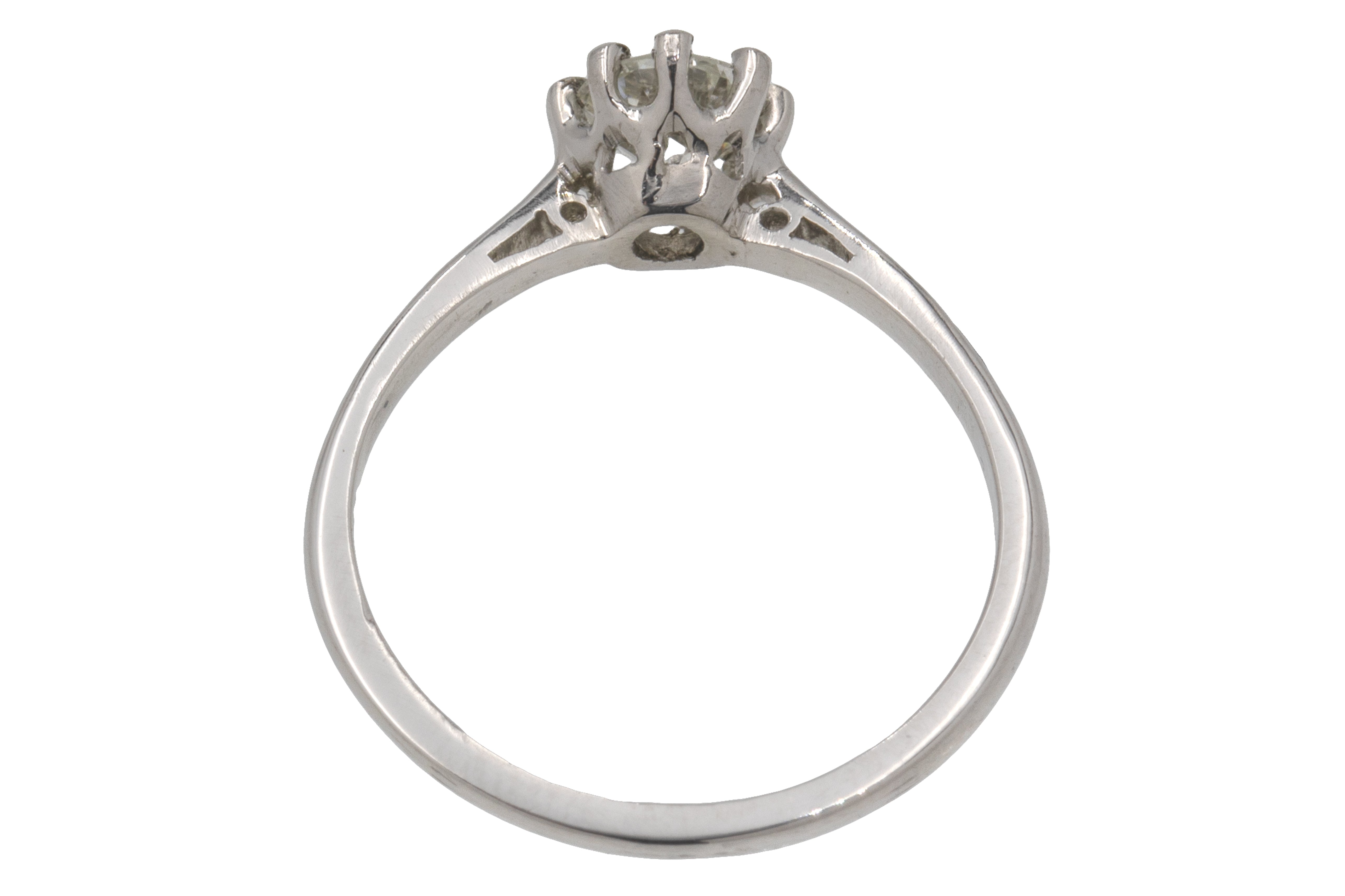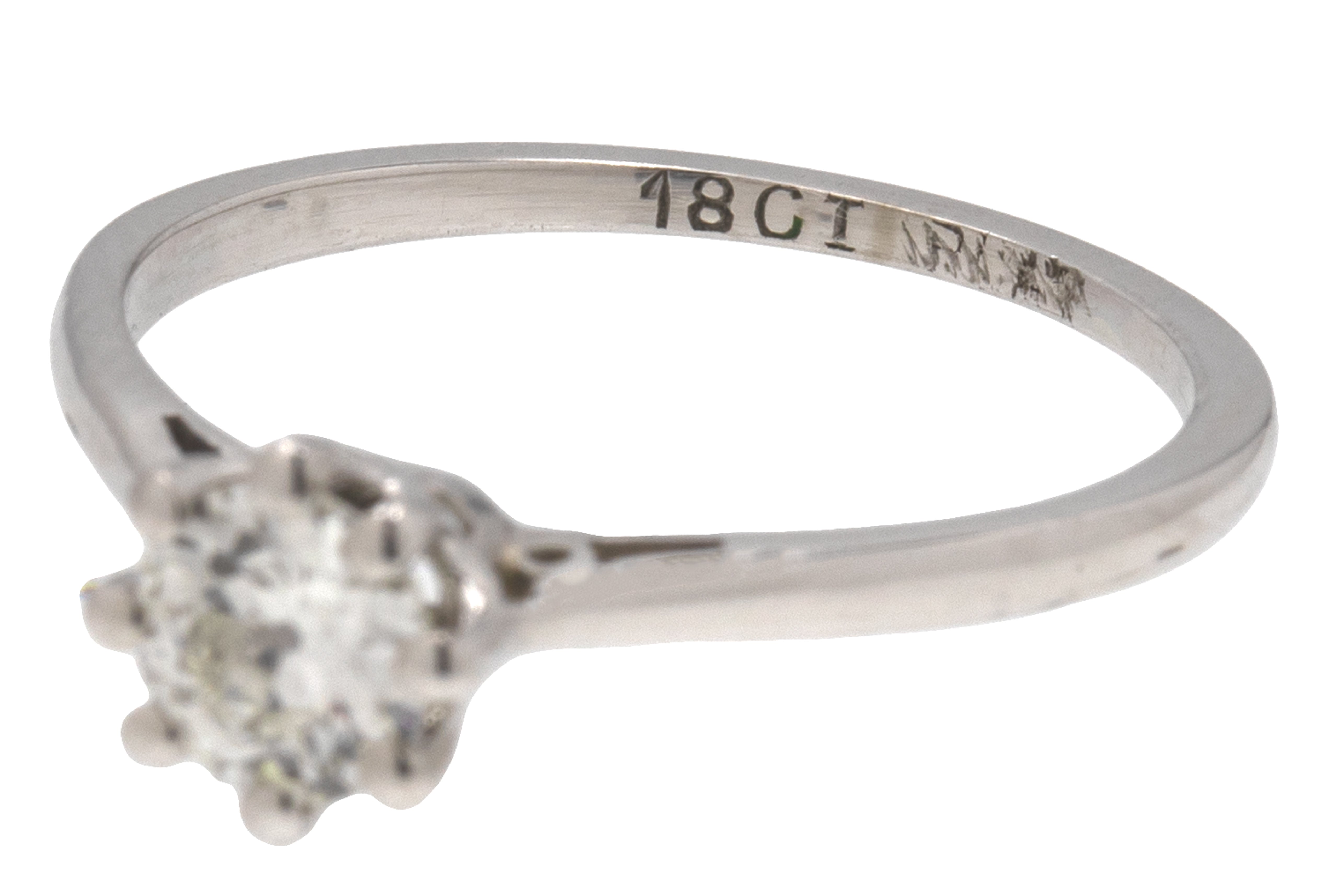 MATERIALS: Tests as 18ct White Gold shank, Platinum settings, Diamond (0.50ct).