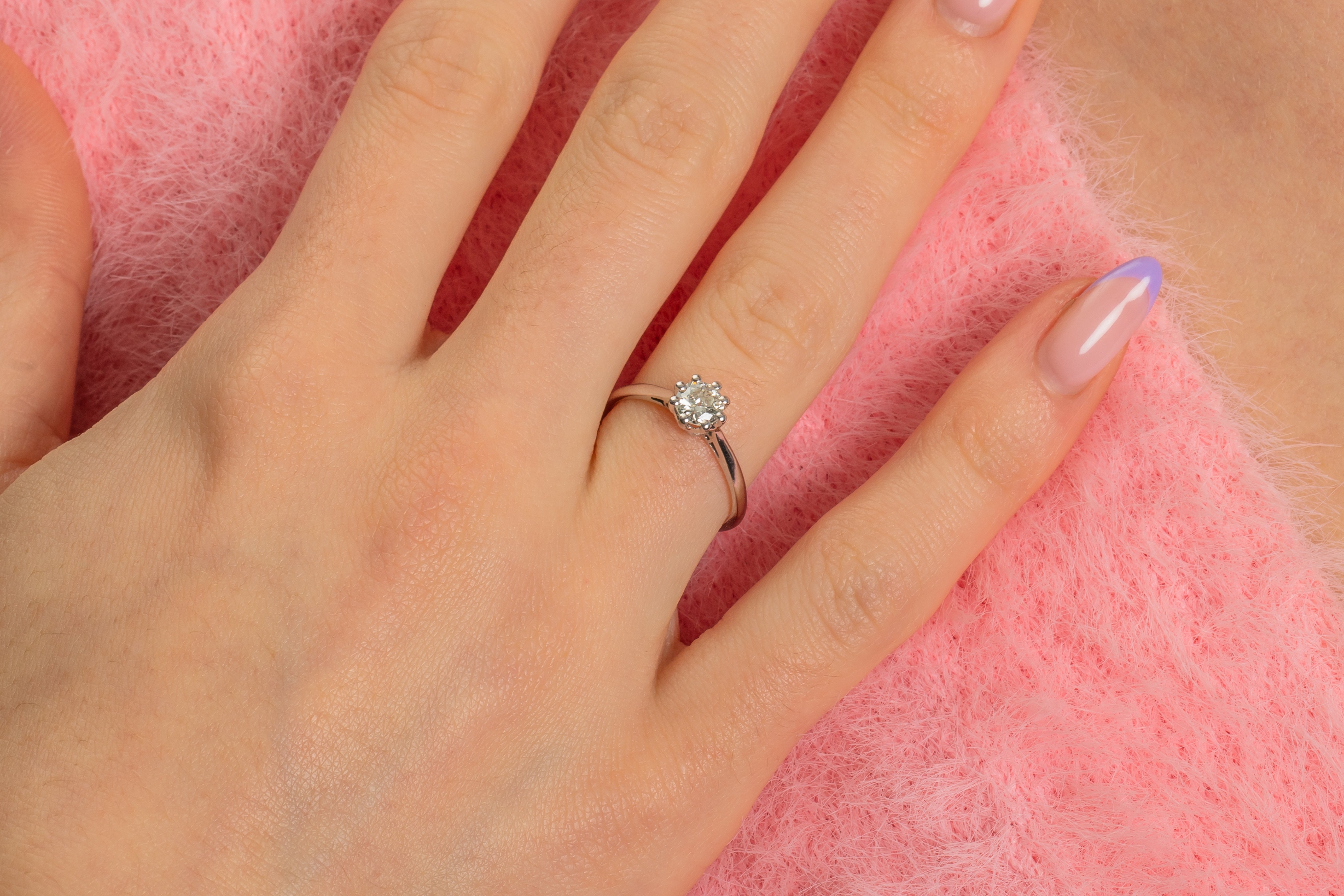 With a clean minimal design, this gorgeous engagement ring ticks all of the boxes. An eye-catching sparkly Diamond is poised at the centre, perfect for those who love classic design. With a robust 18ct White Gold bank, you can wear this antique Diamond ring with confidence.