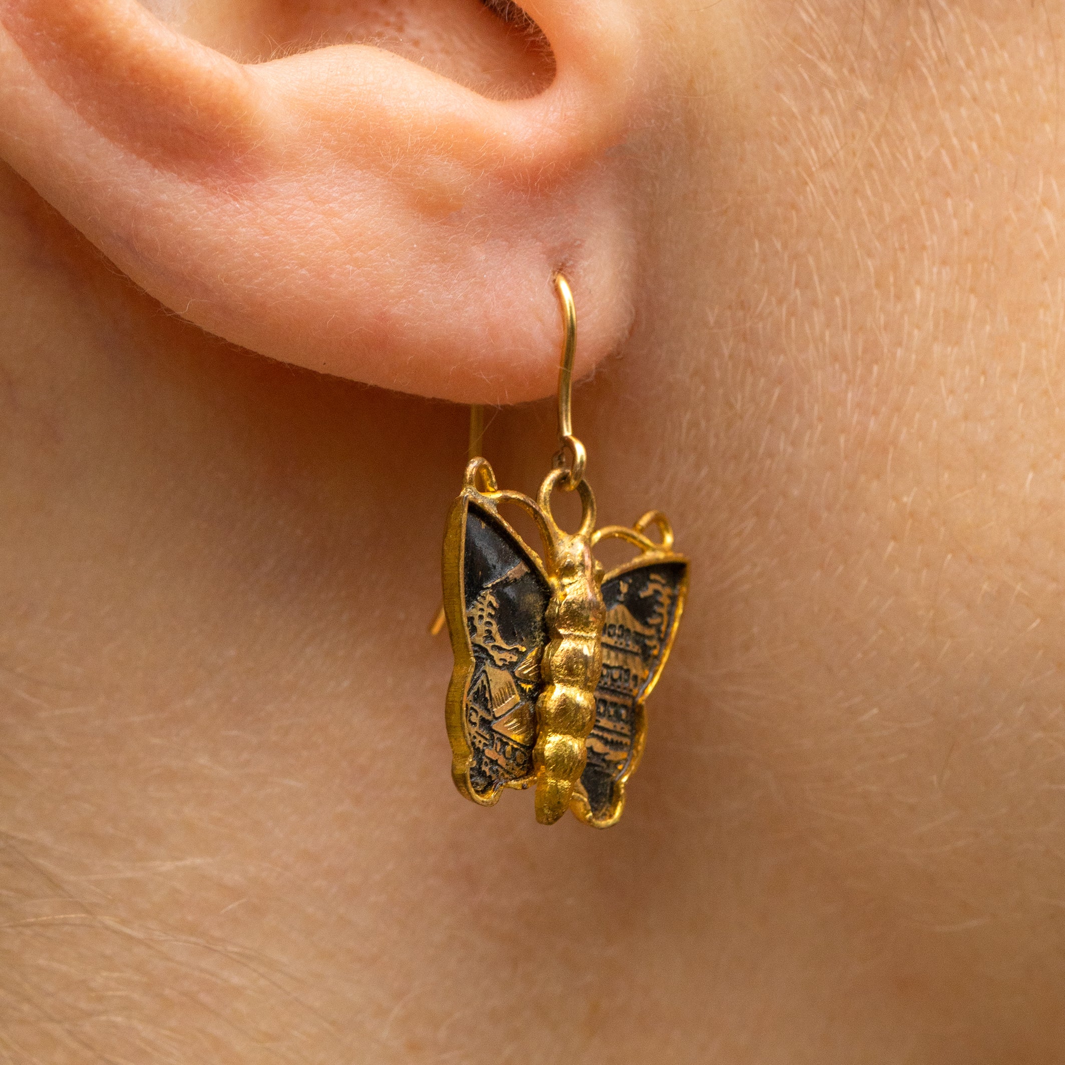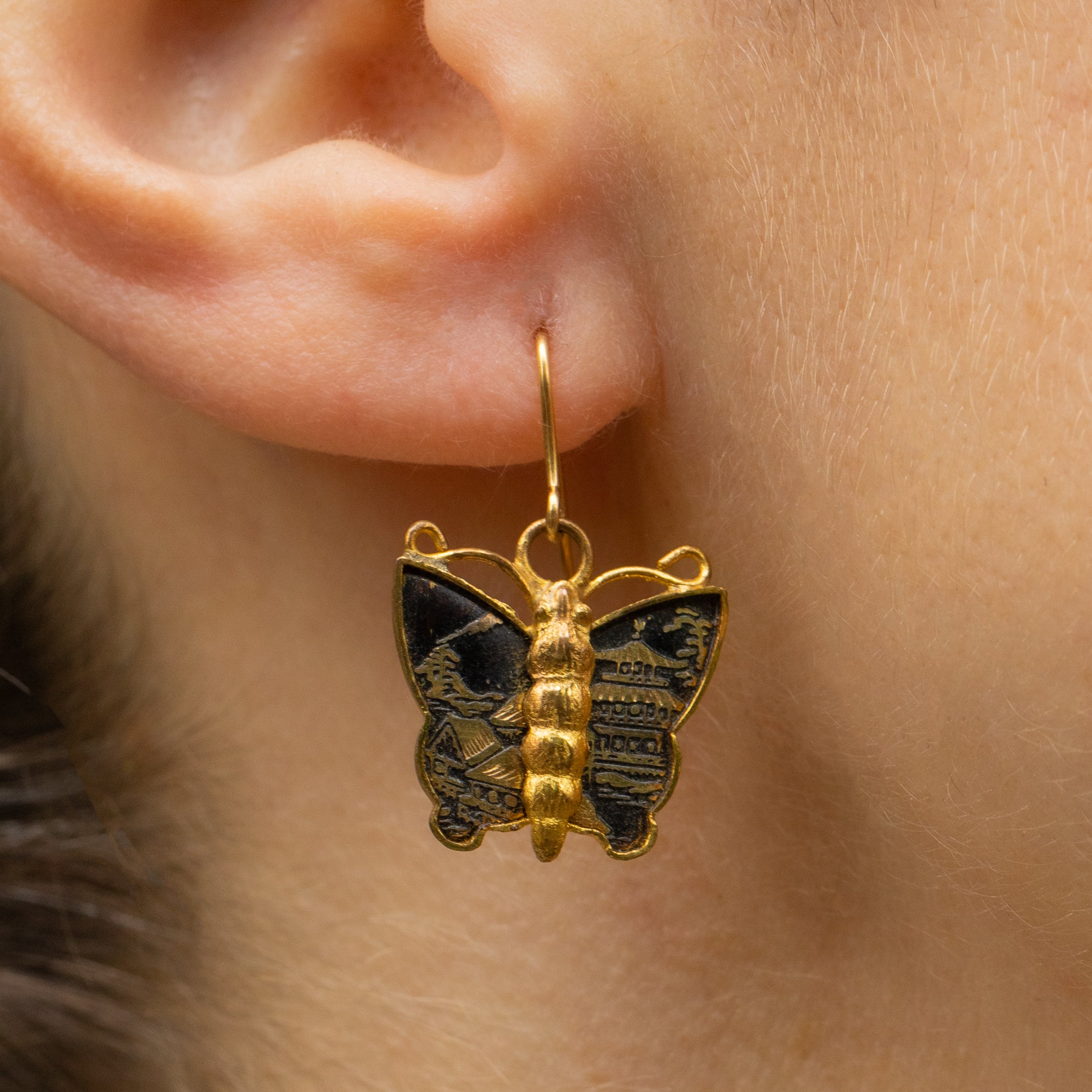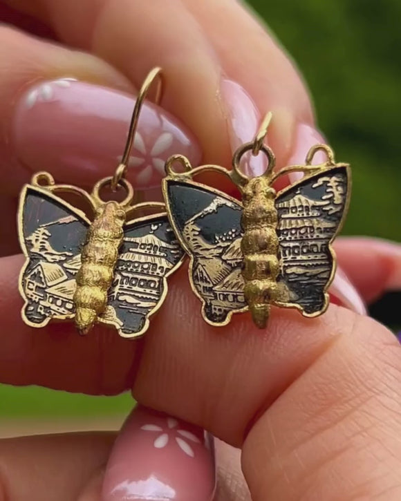 Art Deco Shakudo Damascene Butterfly Earrings