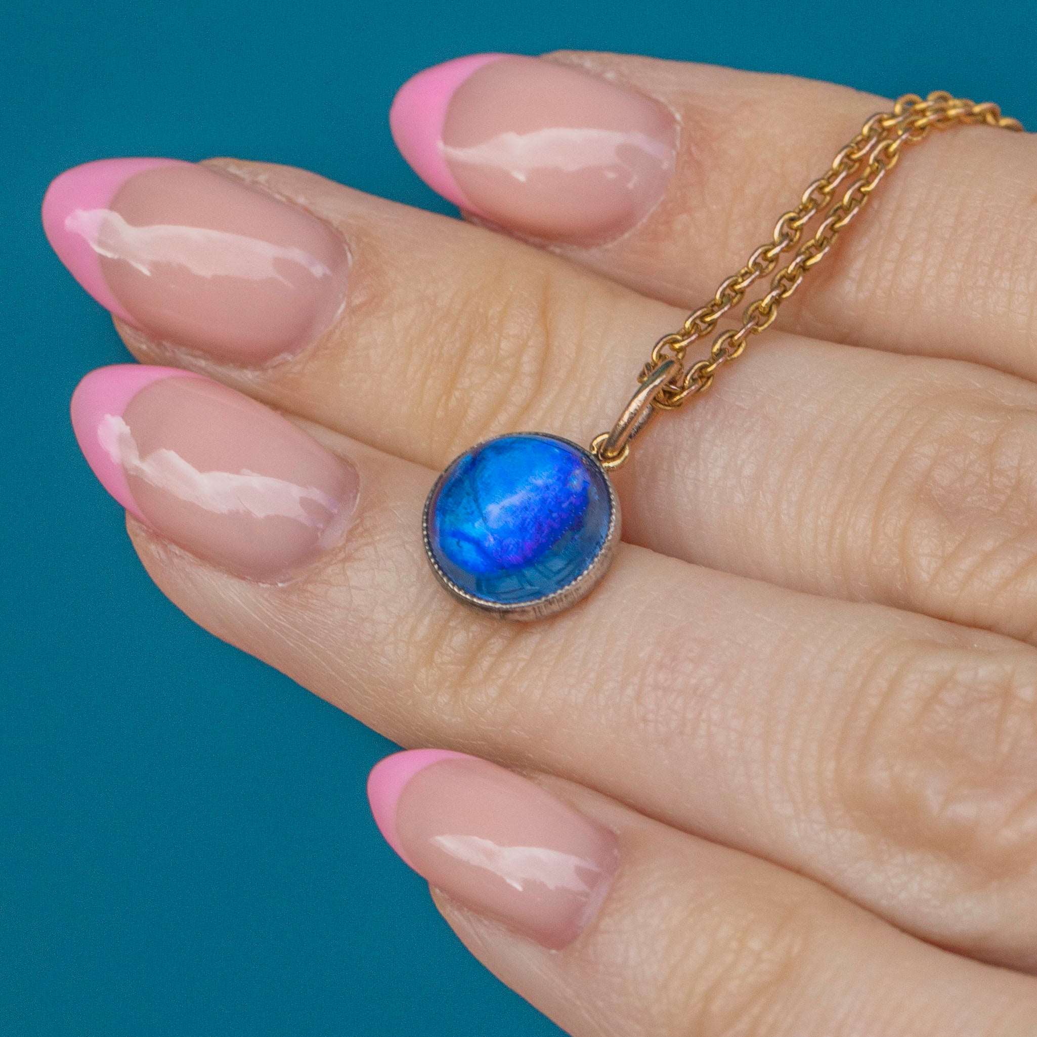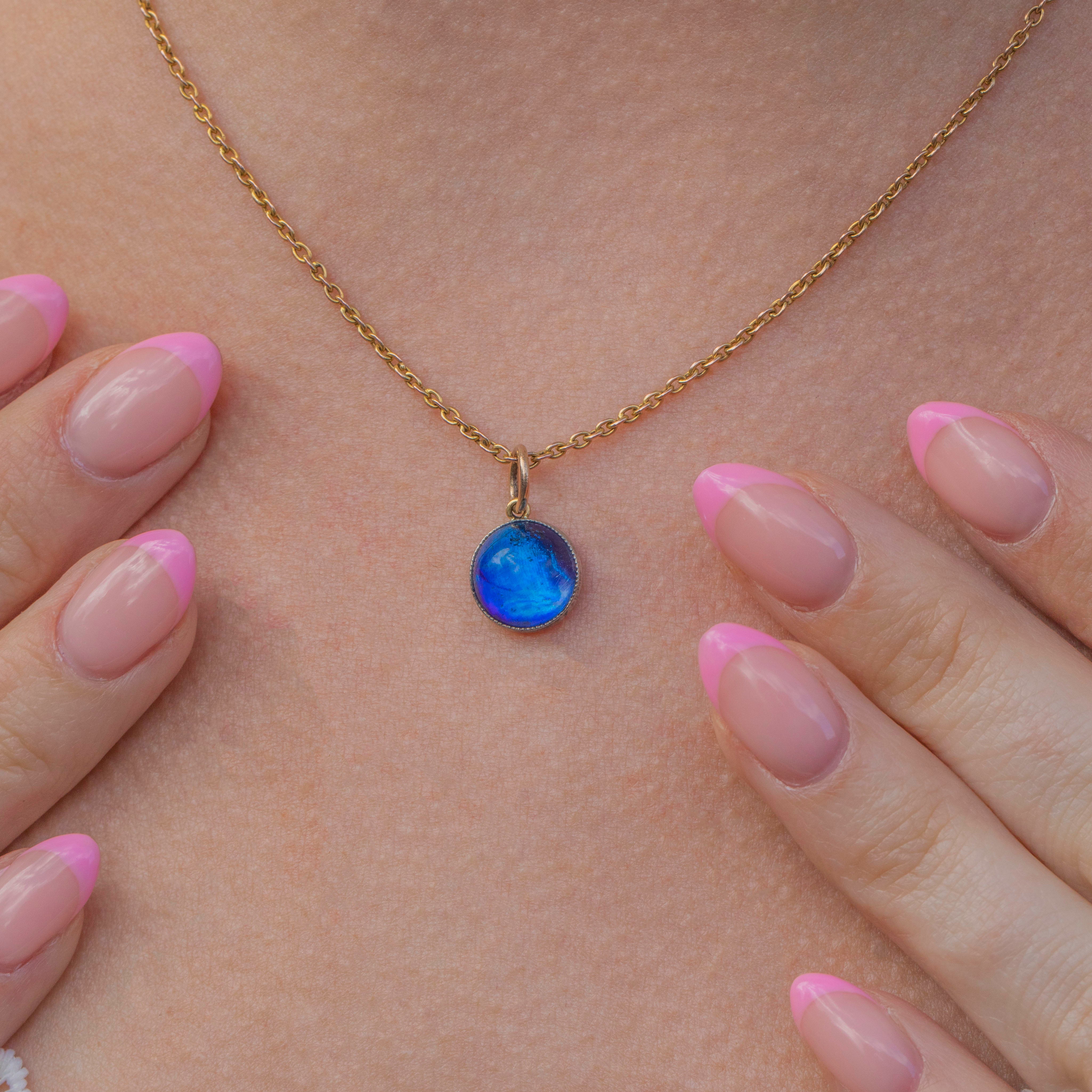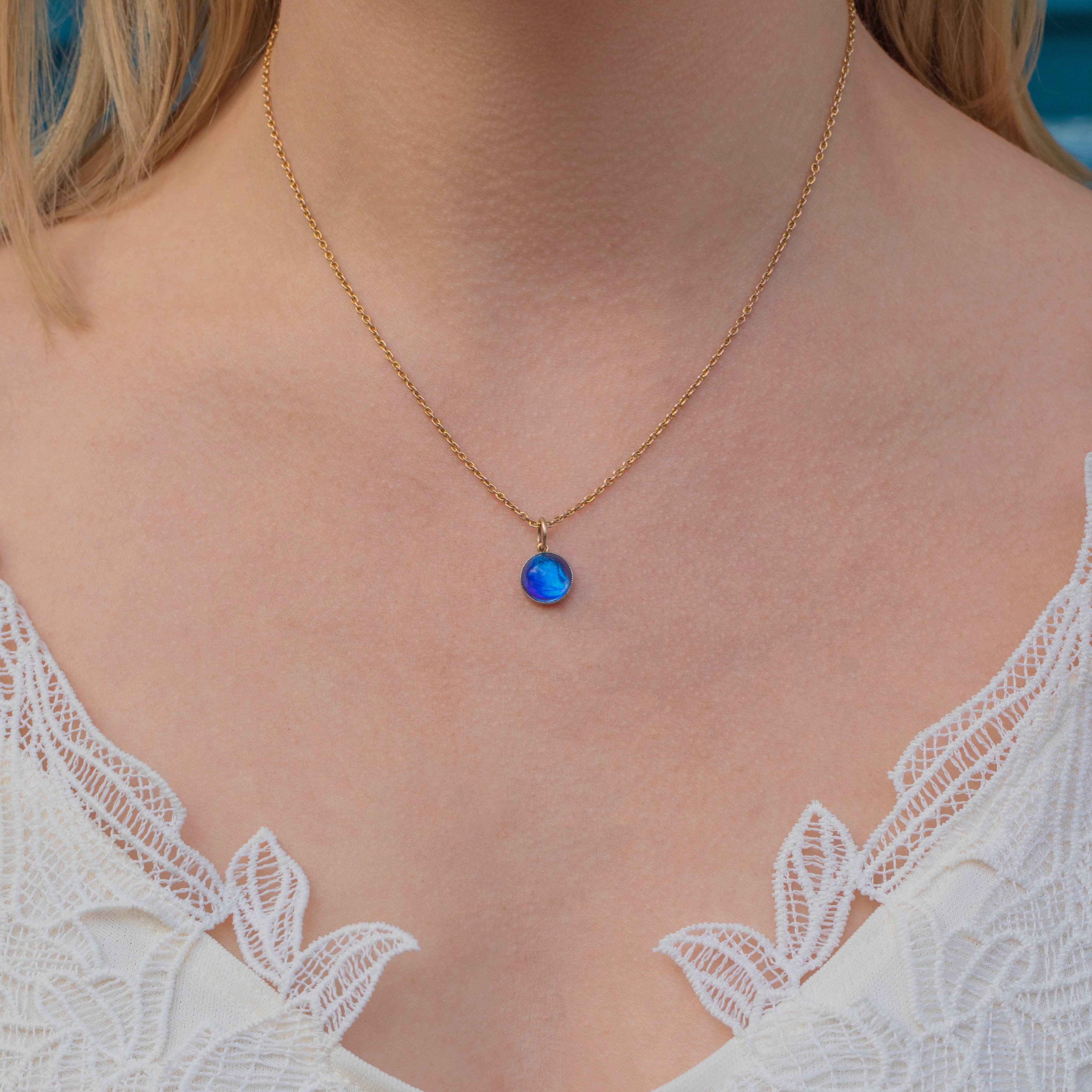 Butterfly wing jewellery was highly fashionable during the 1920s, symbolic of transformation and metamorphosis! This eye-catching pool of Cerulean blue will be the envy of all of your friends.