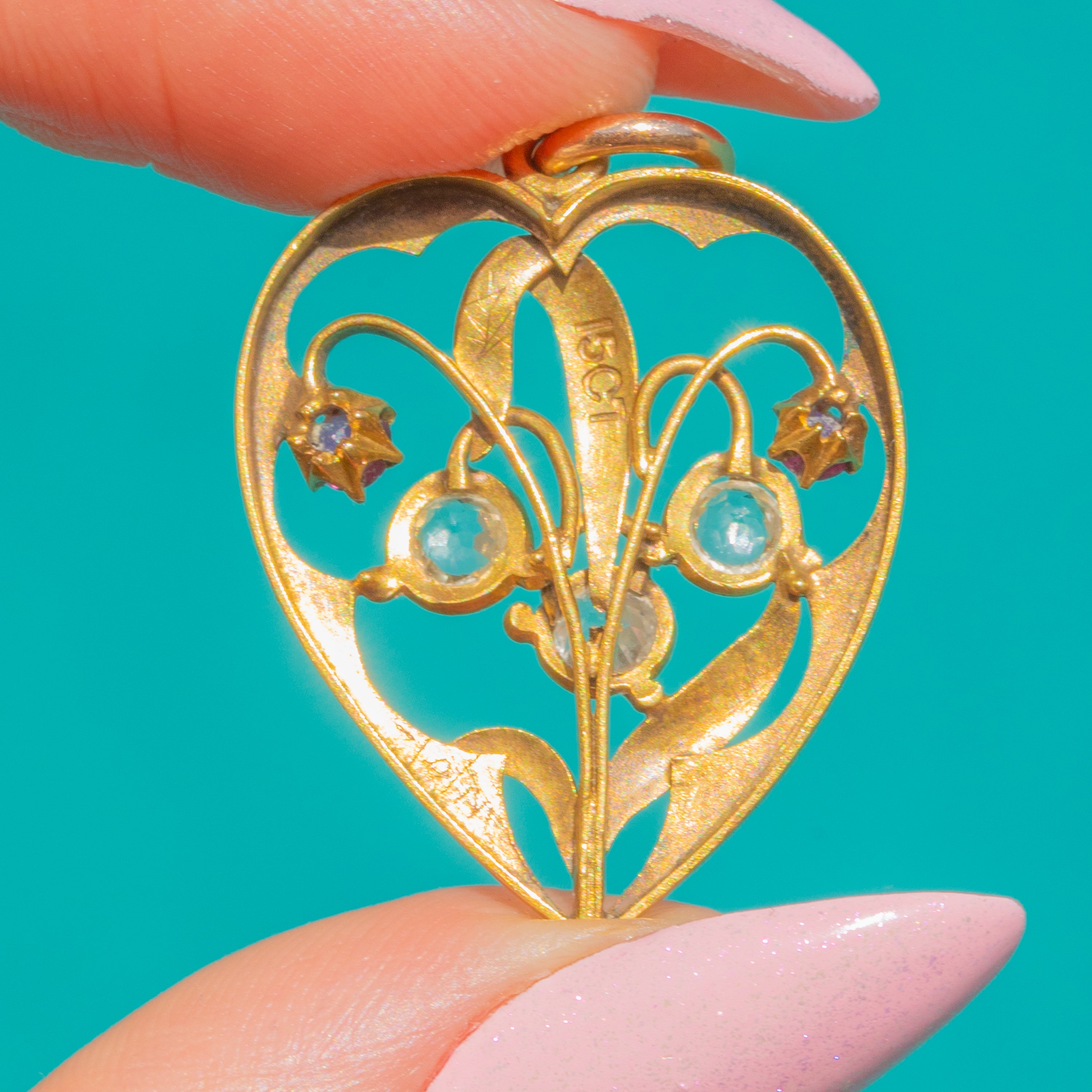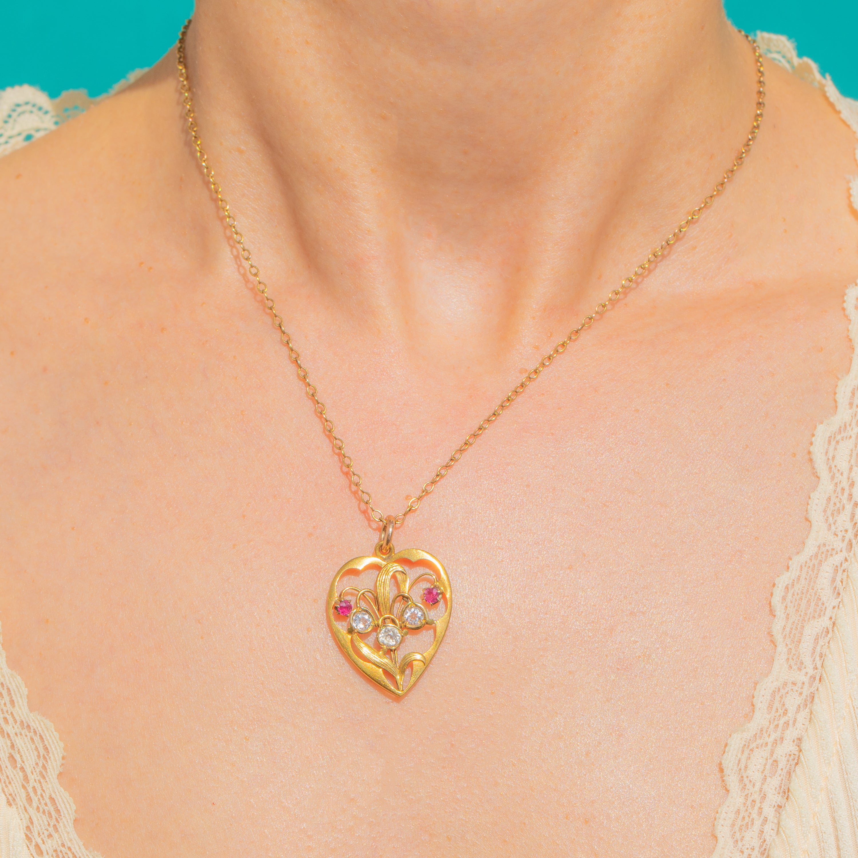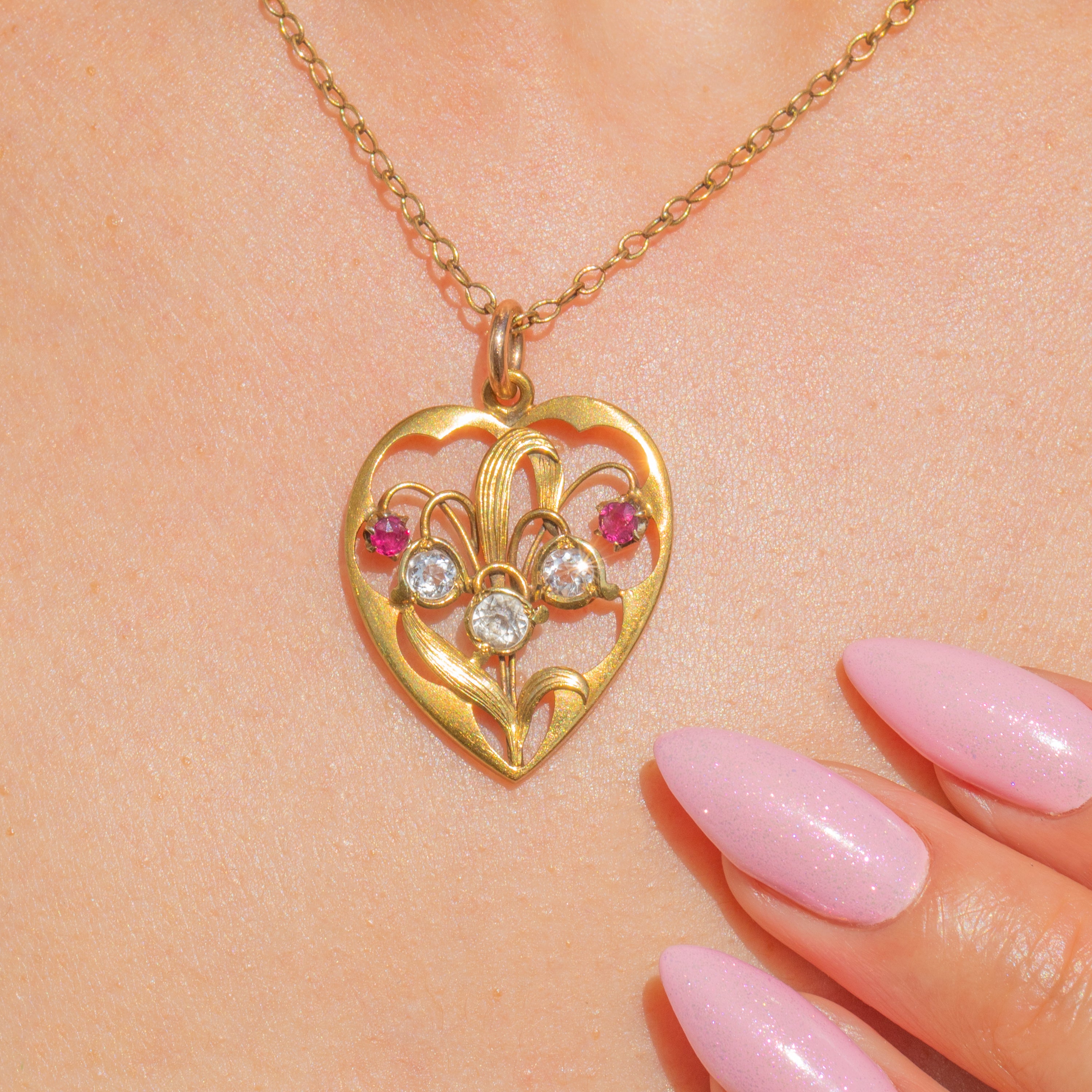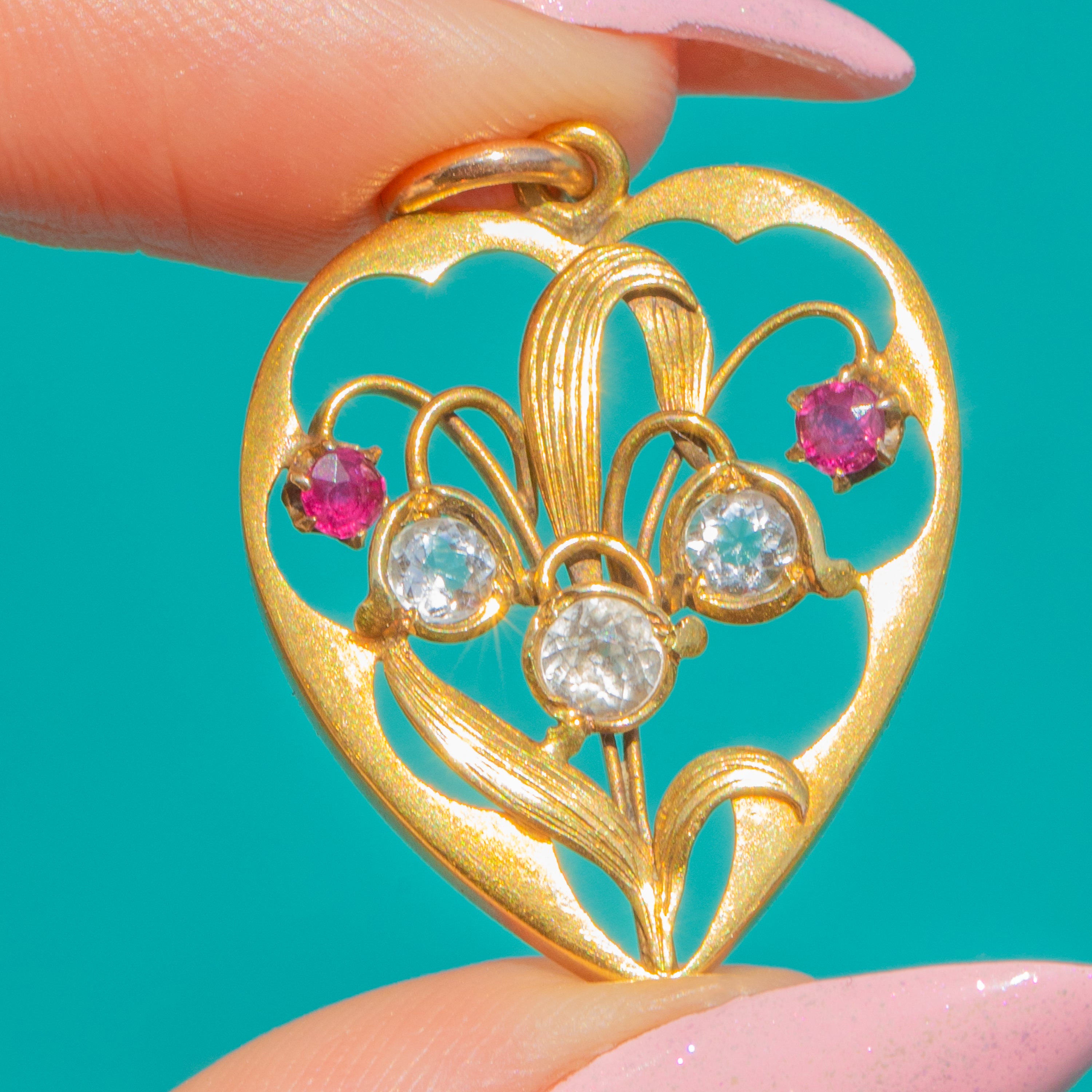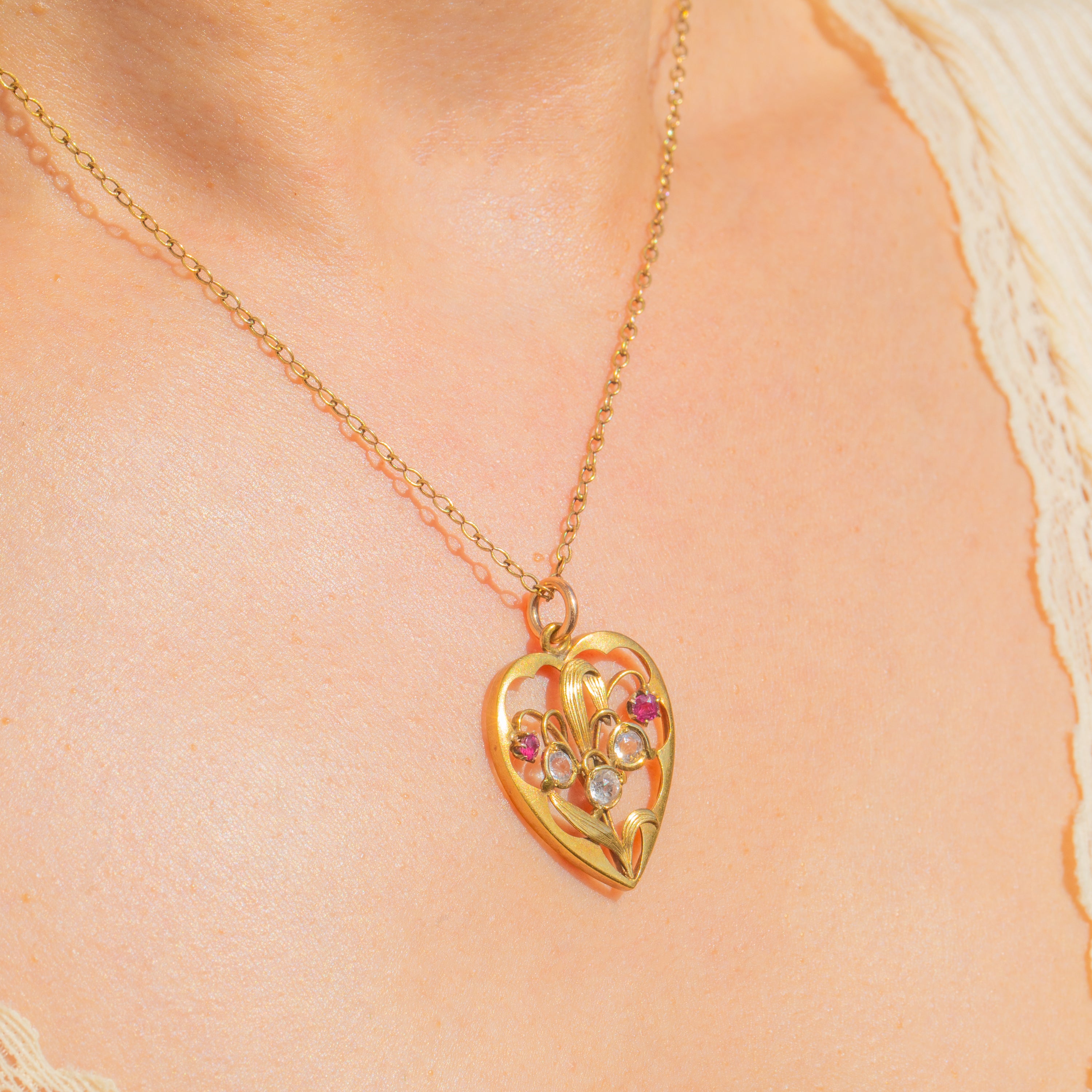 Art Nouveau 15ct Gold Spinel Heart Pendant