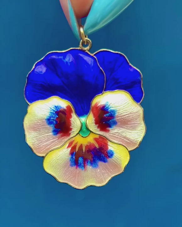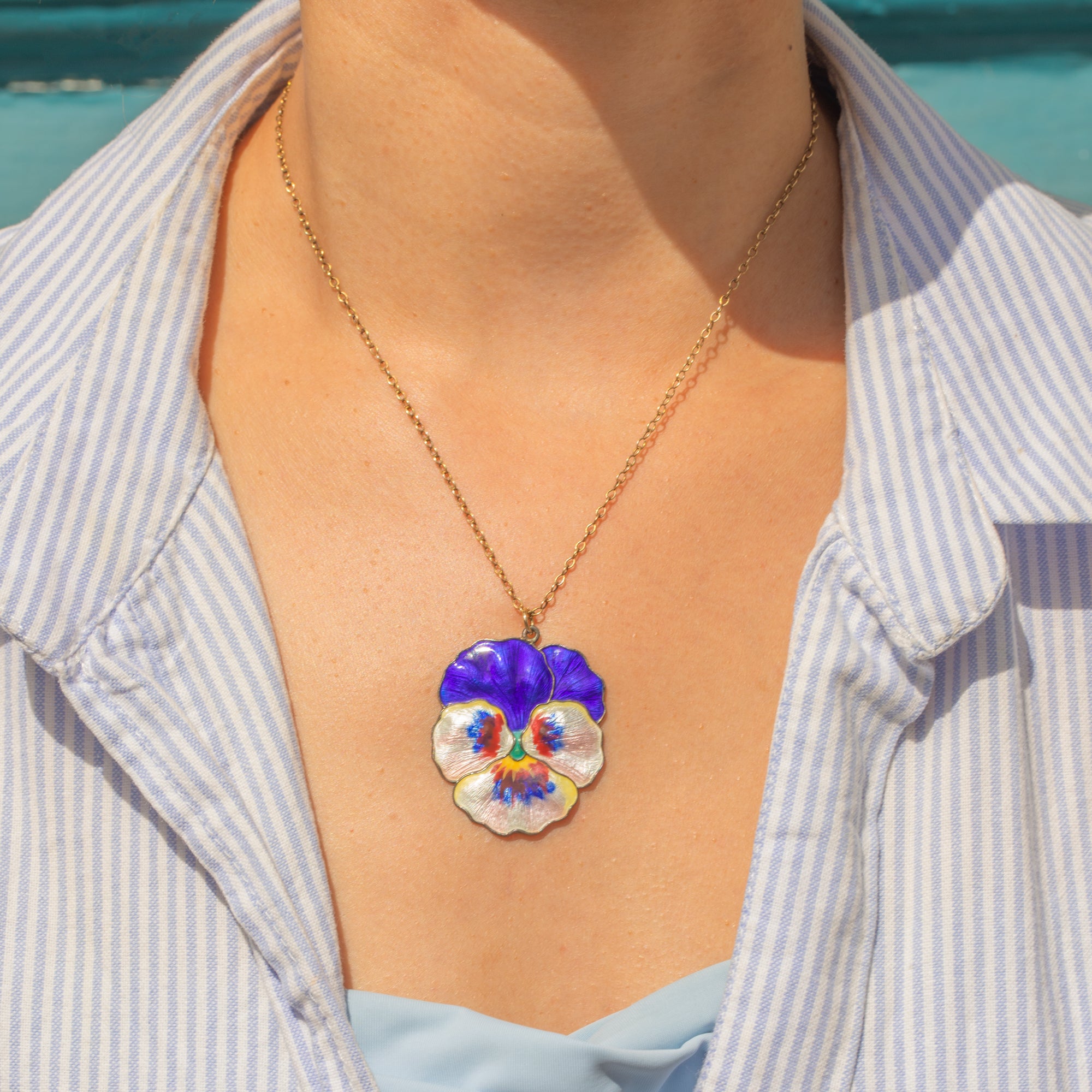 Art Nouveau Silver Enamel Pansy Flower Pendant