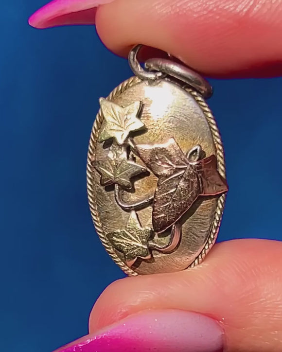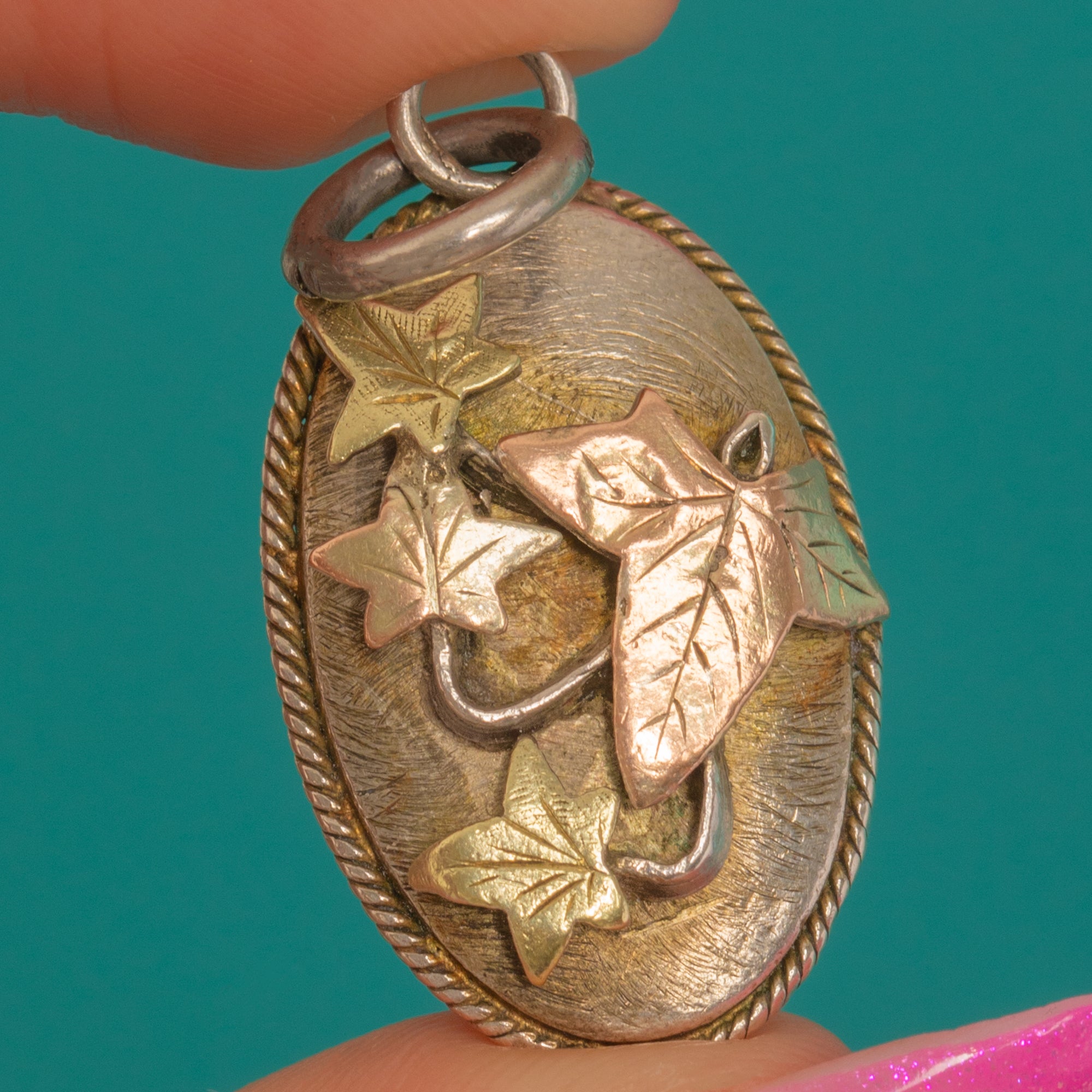Art Nouveau Silver Rock Crystal Pendant with Gold Leaves