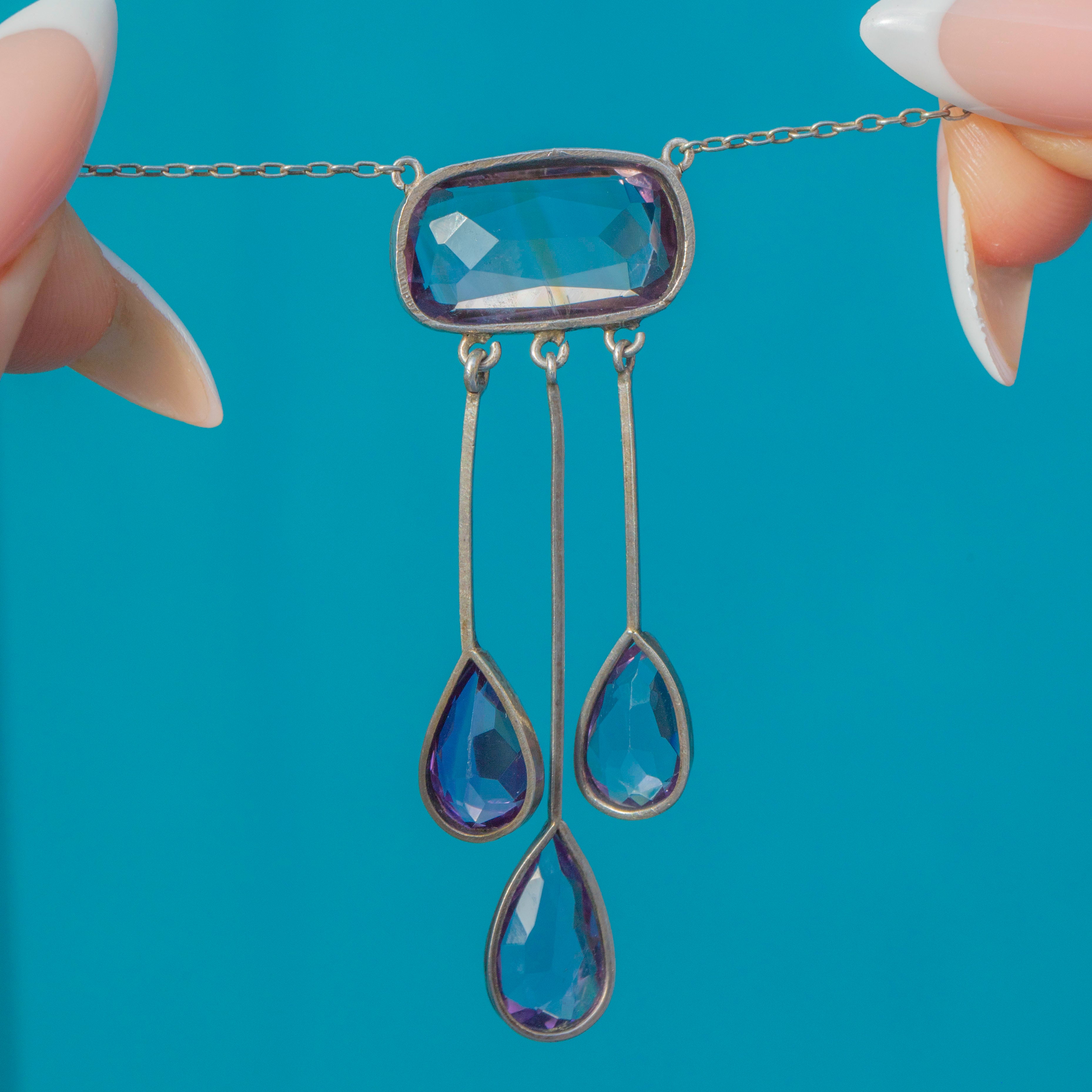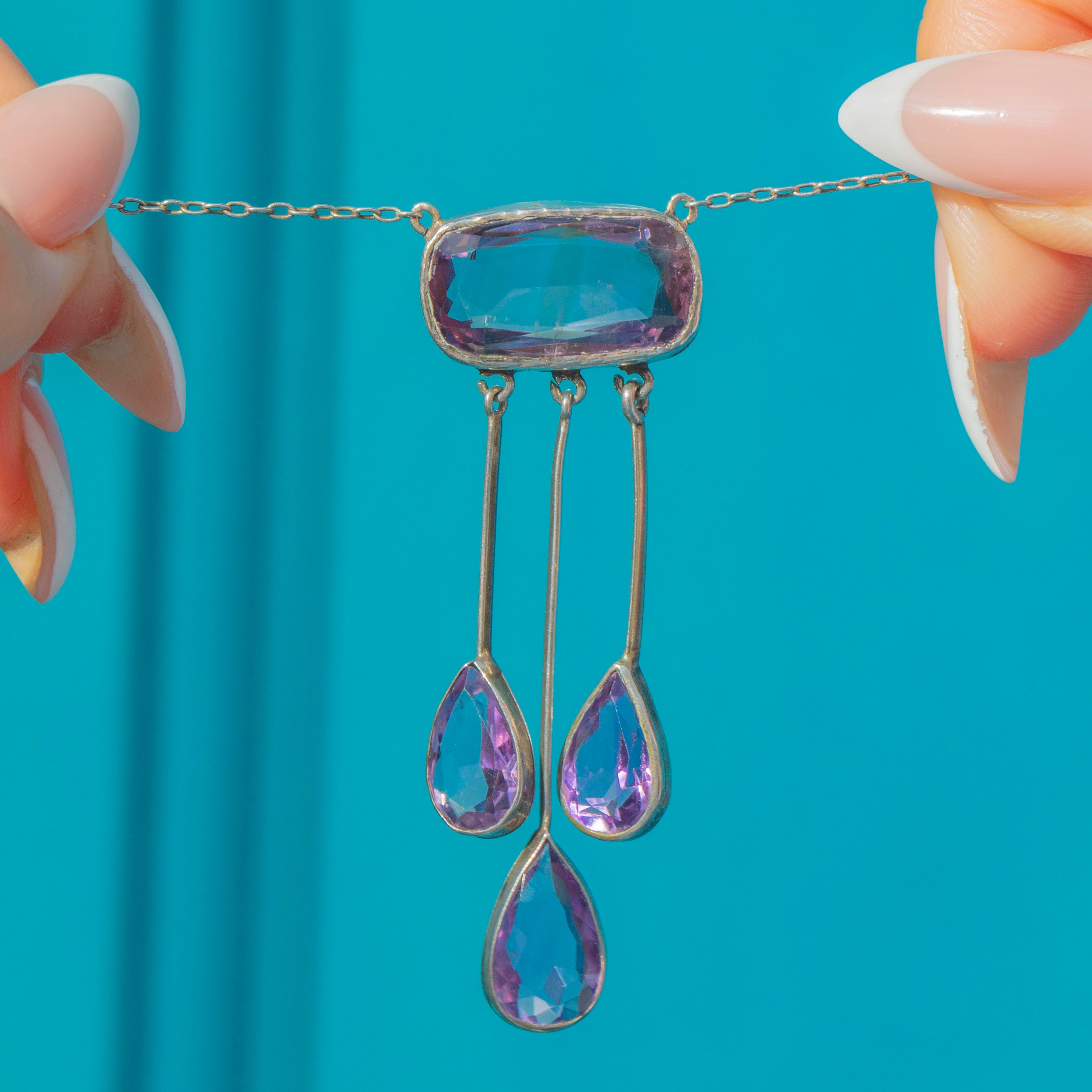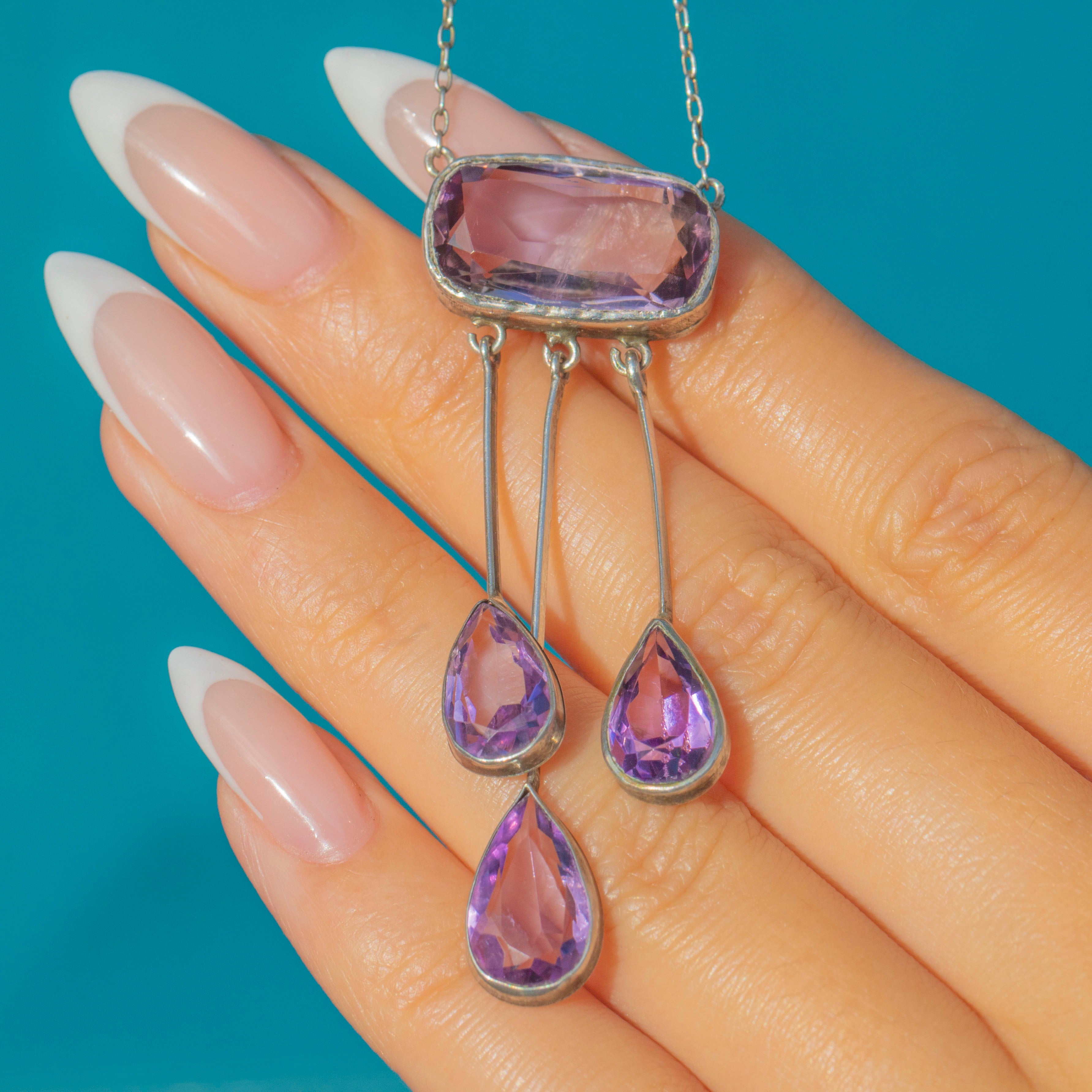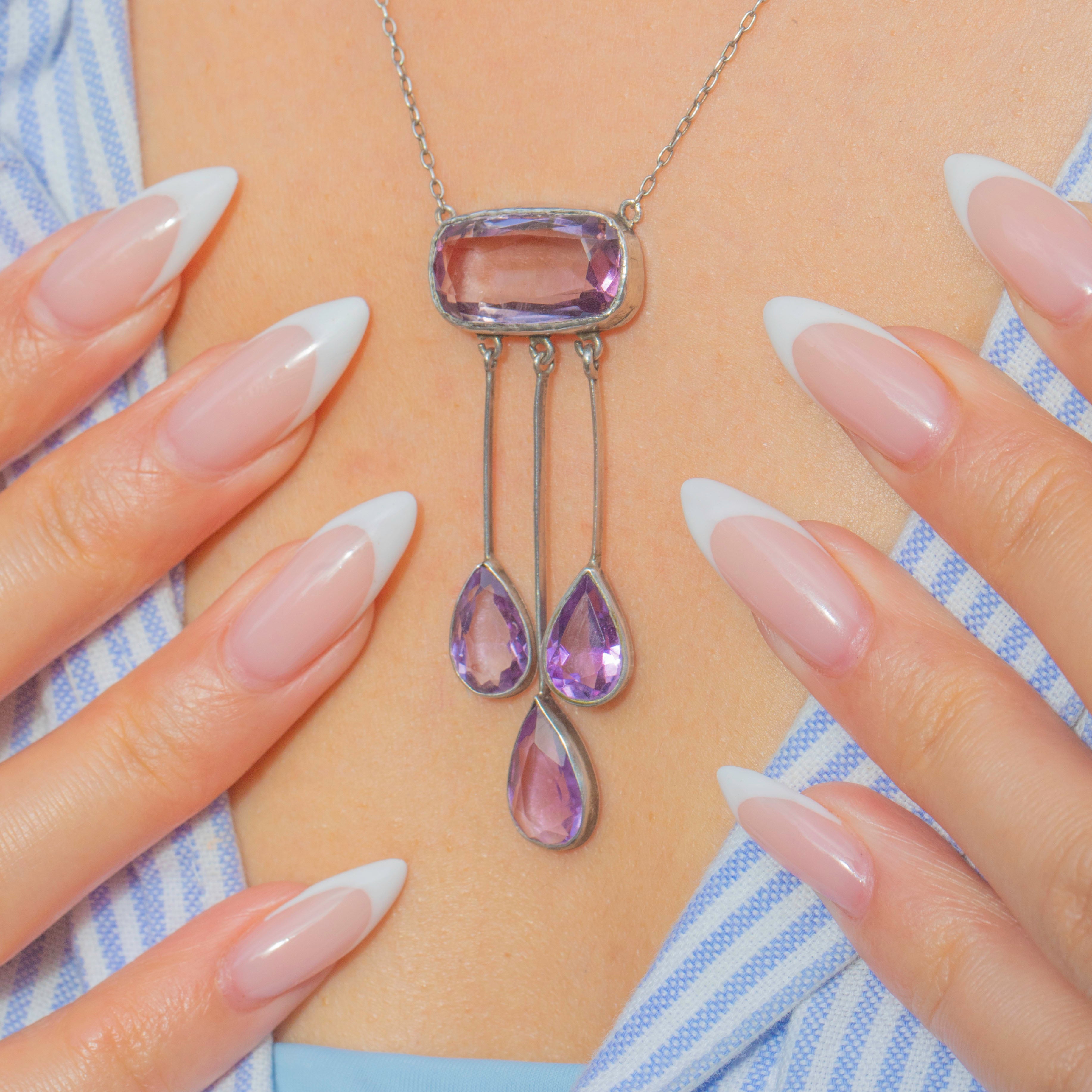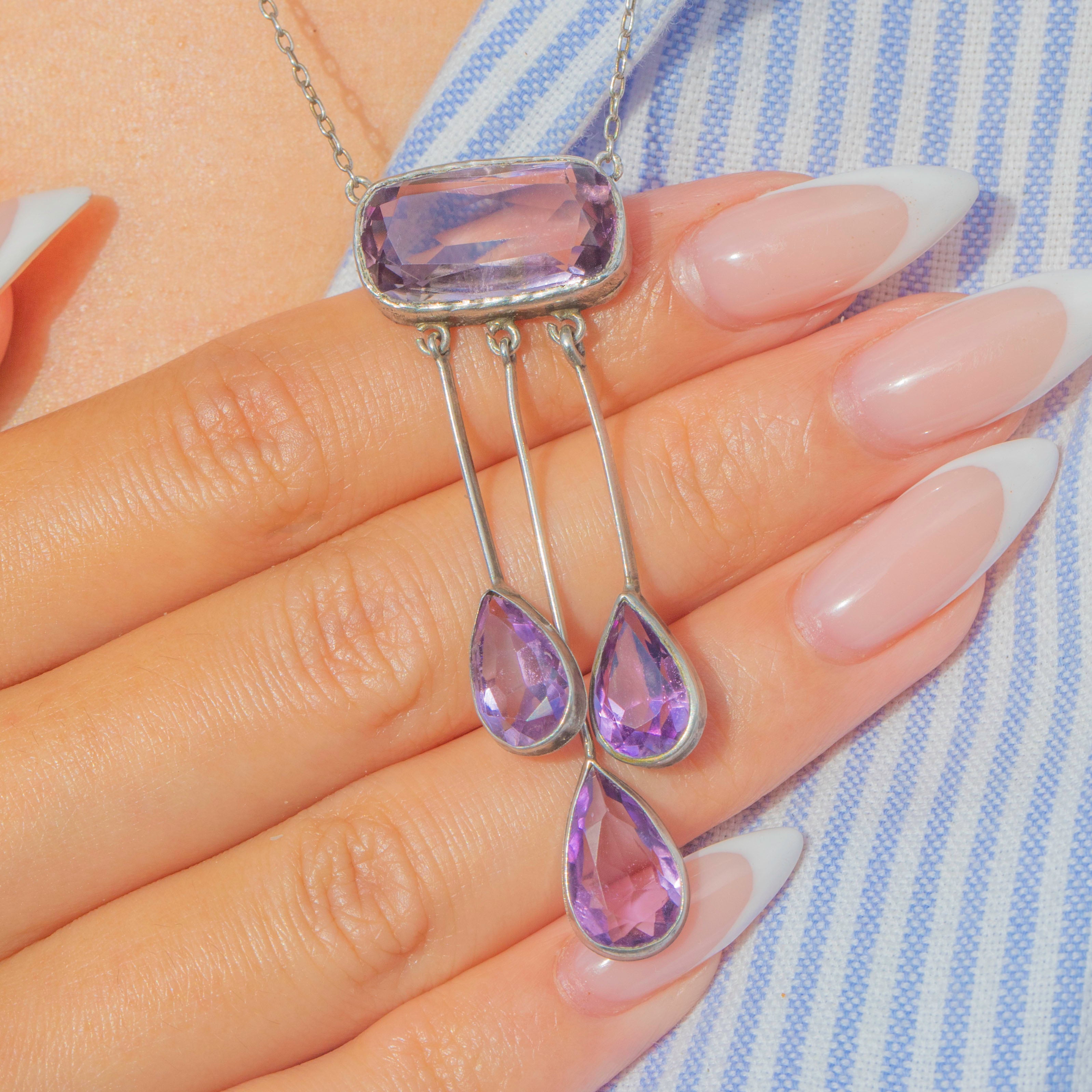 Arts & Crafts Era Silver Amethyst Negligee Drop Necklace c.1905