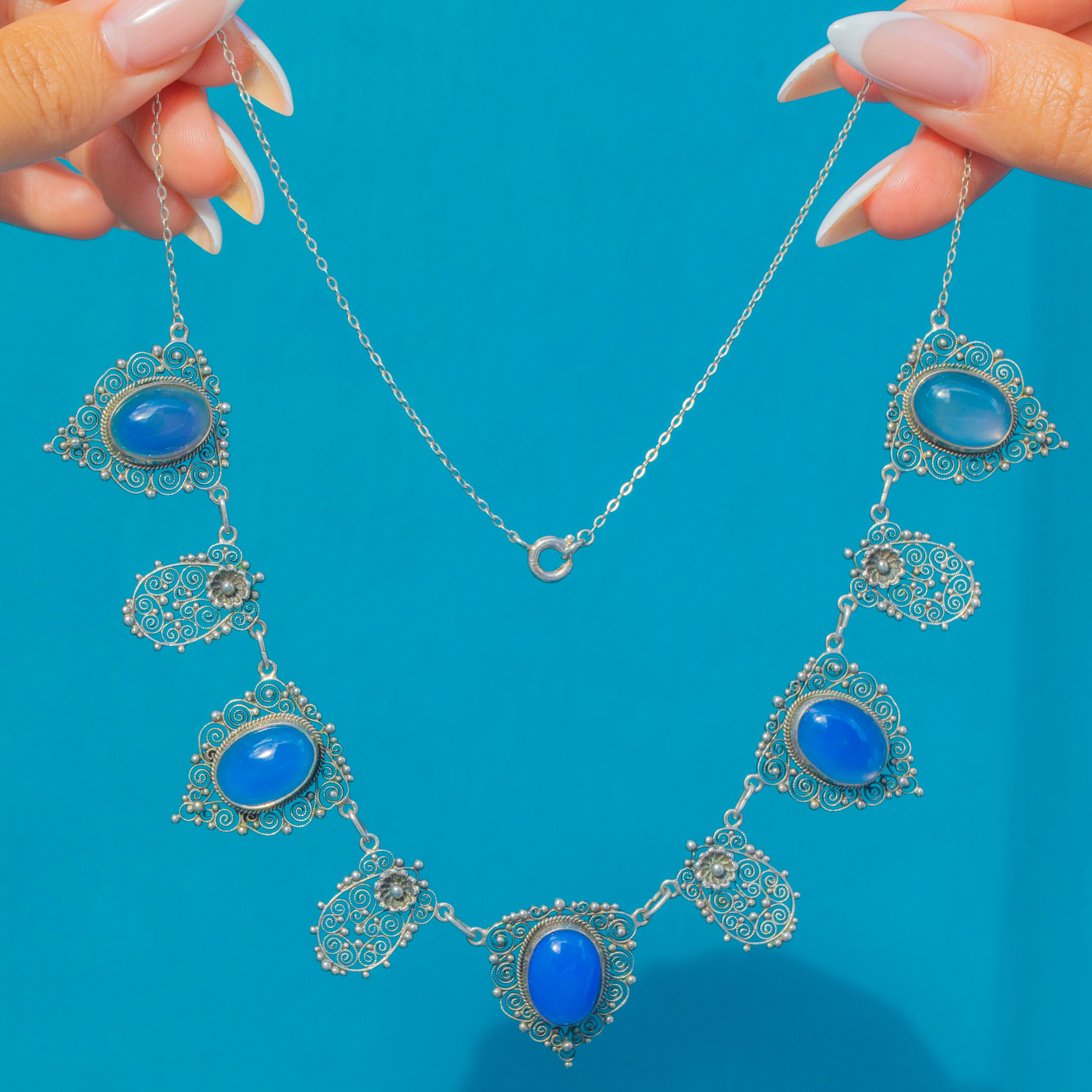 Arts & Crafts Silver Blue Chalcedony Filigree Necklace