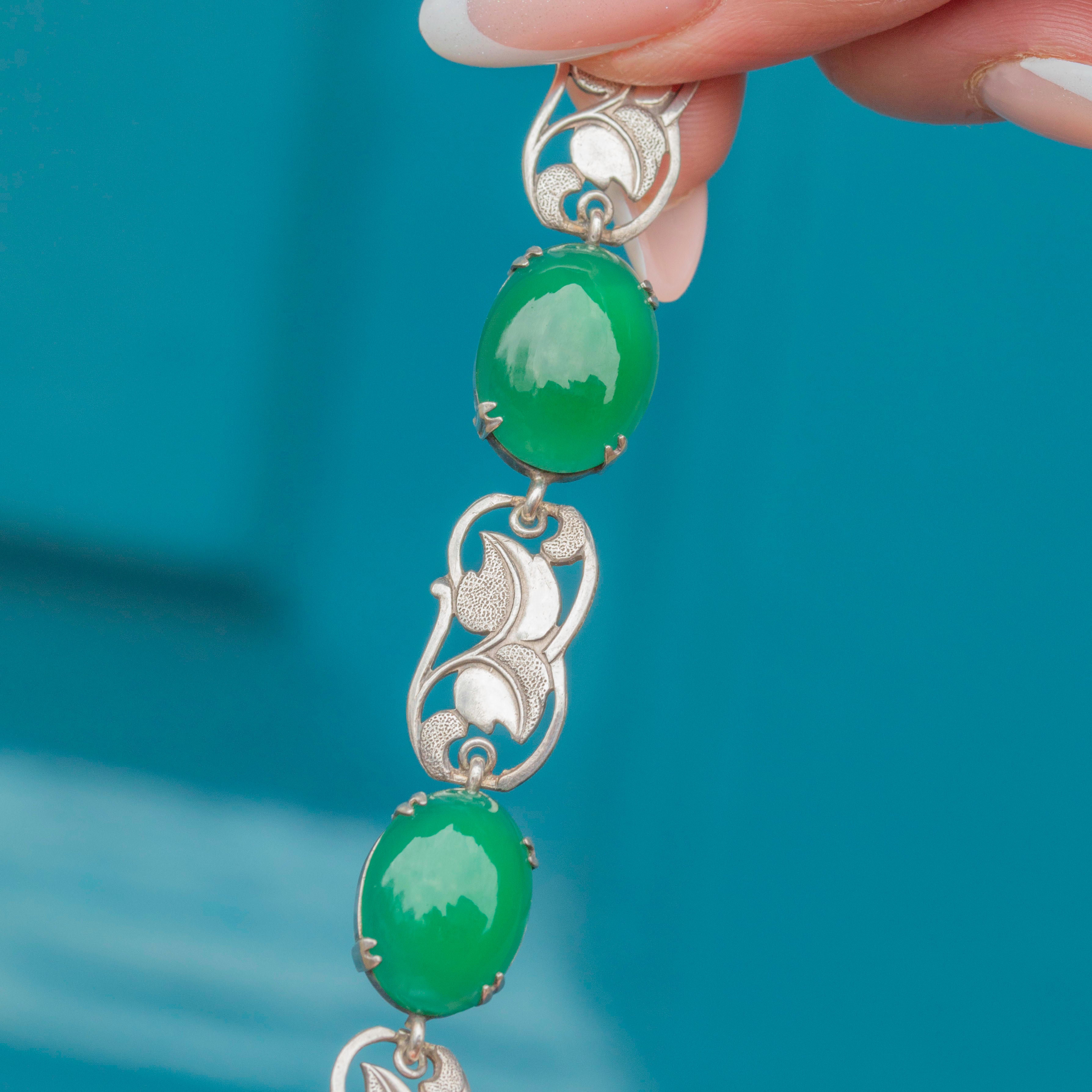 Arts & Crafts Silver Chrysoprase Floral Bracelet