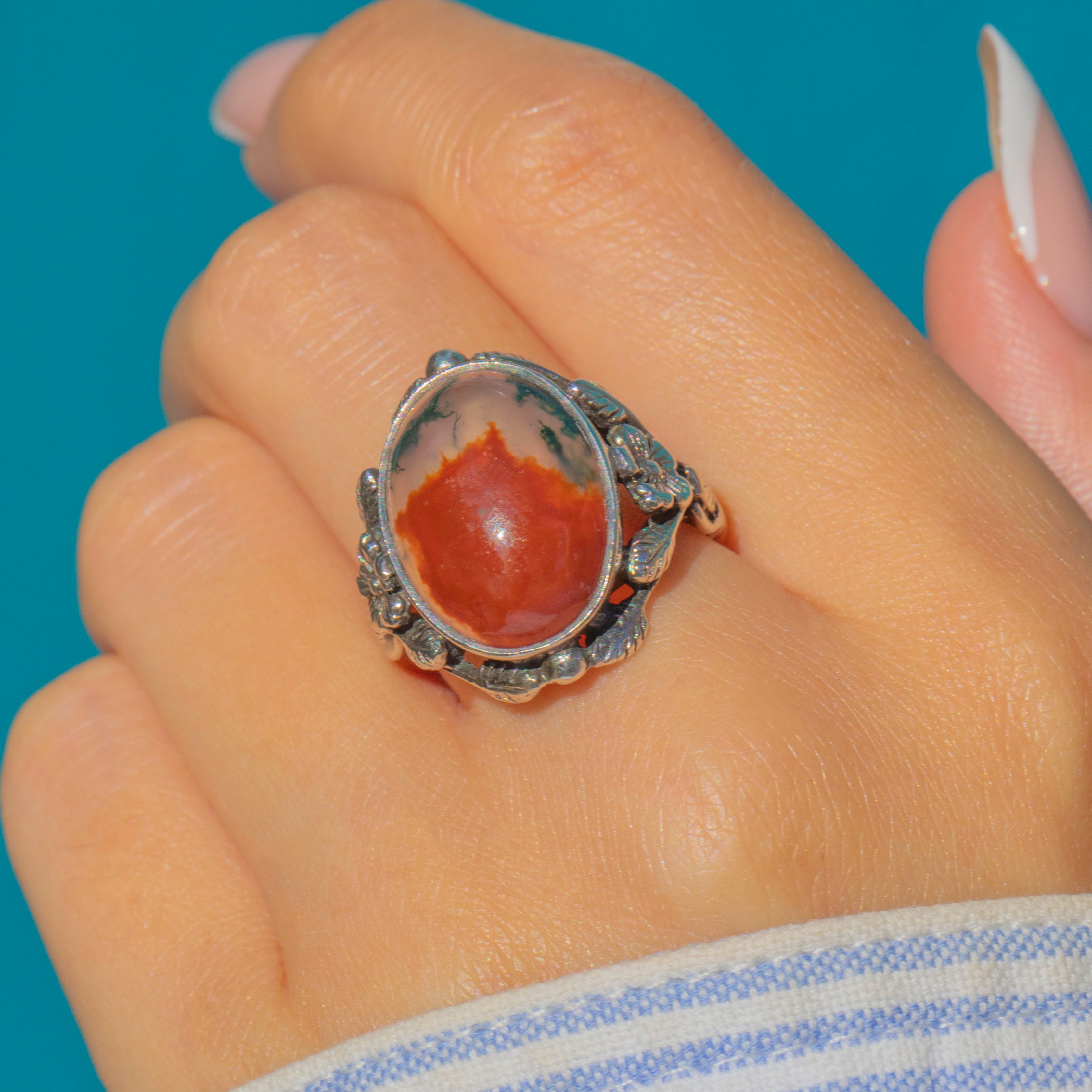 Arts & Crafts Silver Moss Agate Ring