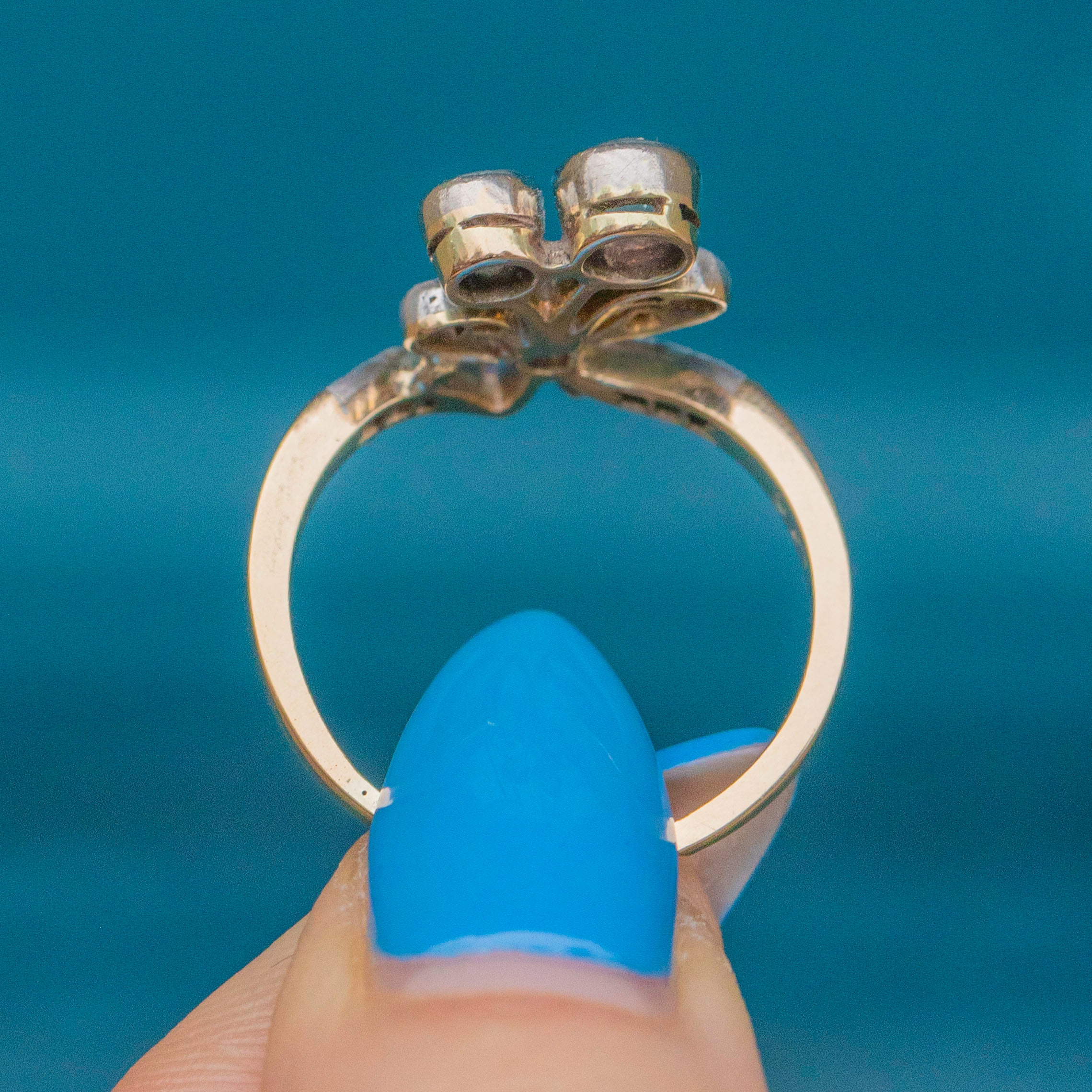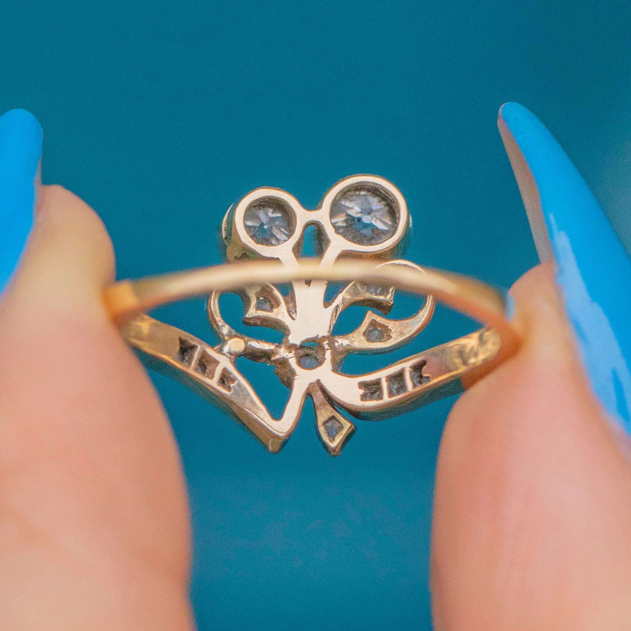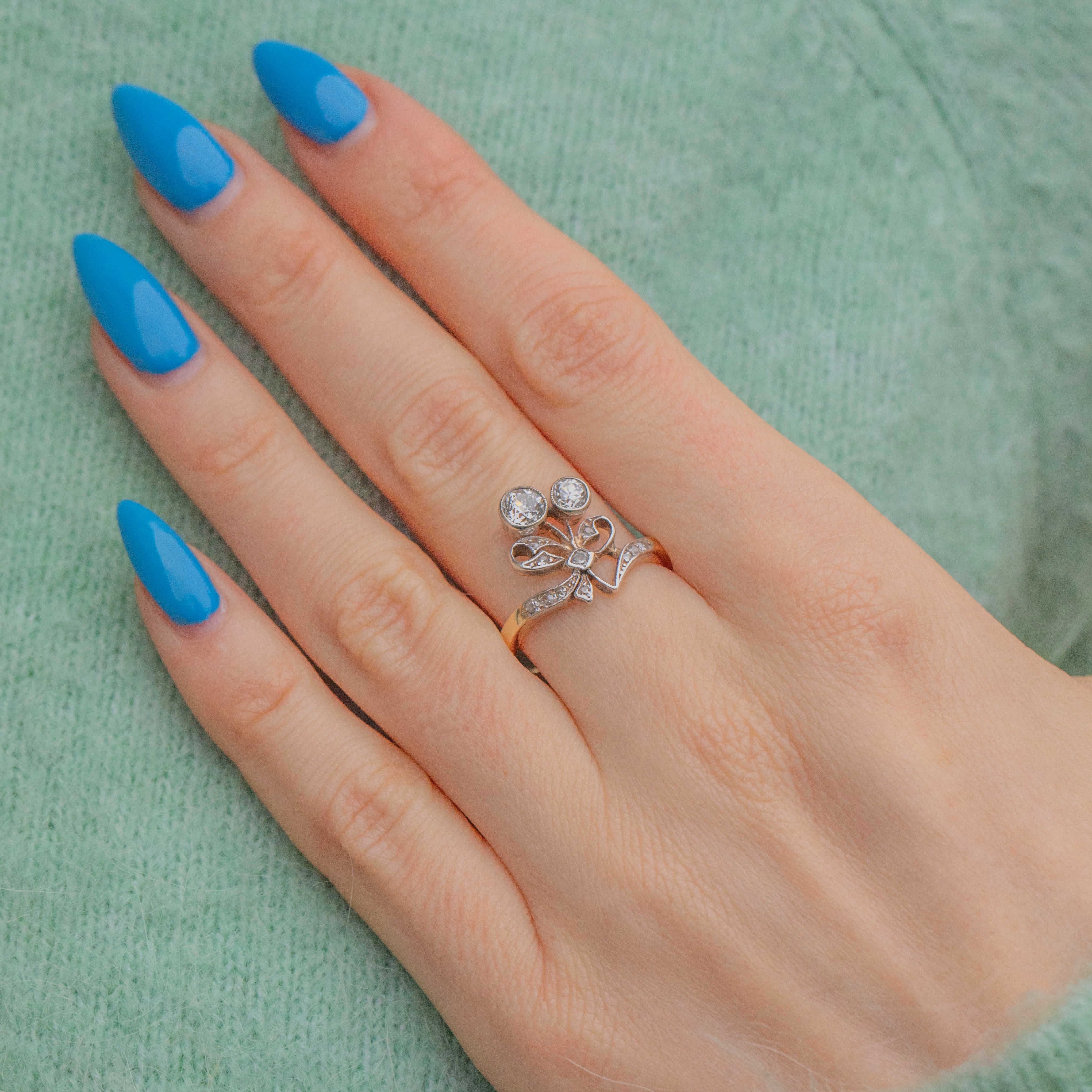 Rare Antique 18ct Gold Diamond Ribbon Bow Ring