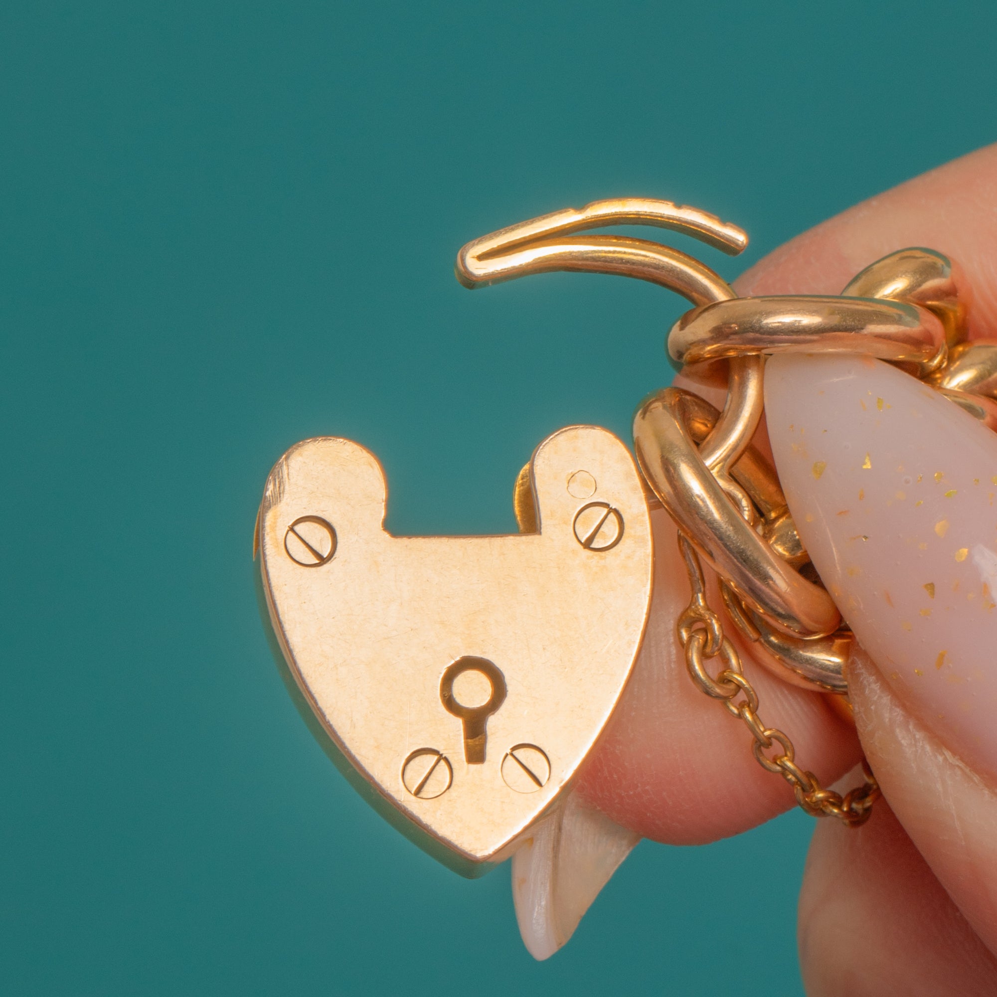 Bright 15ct Gold Curb Bracelet with Heart Padlock