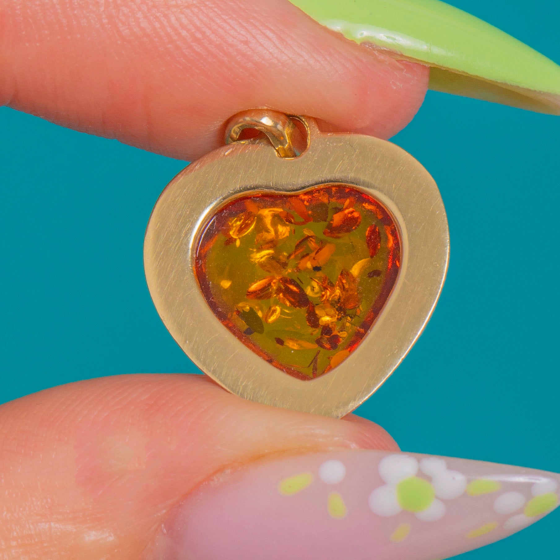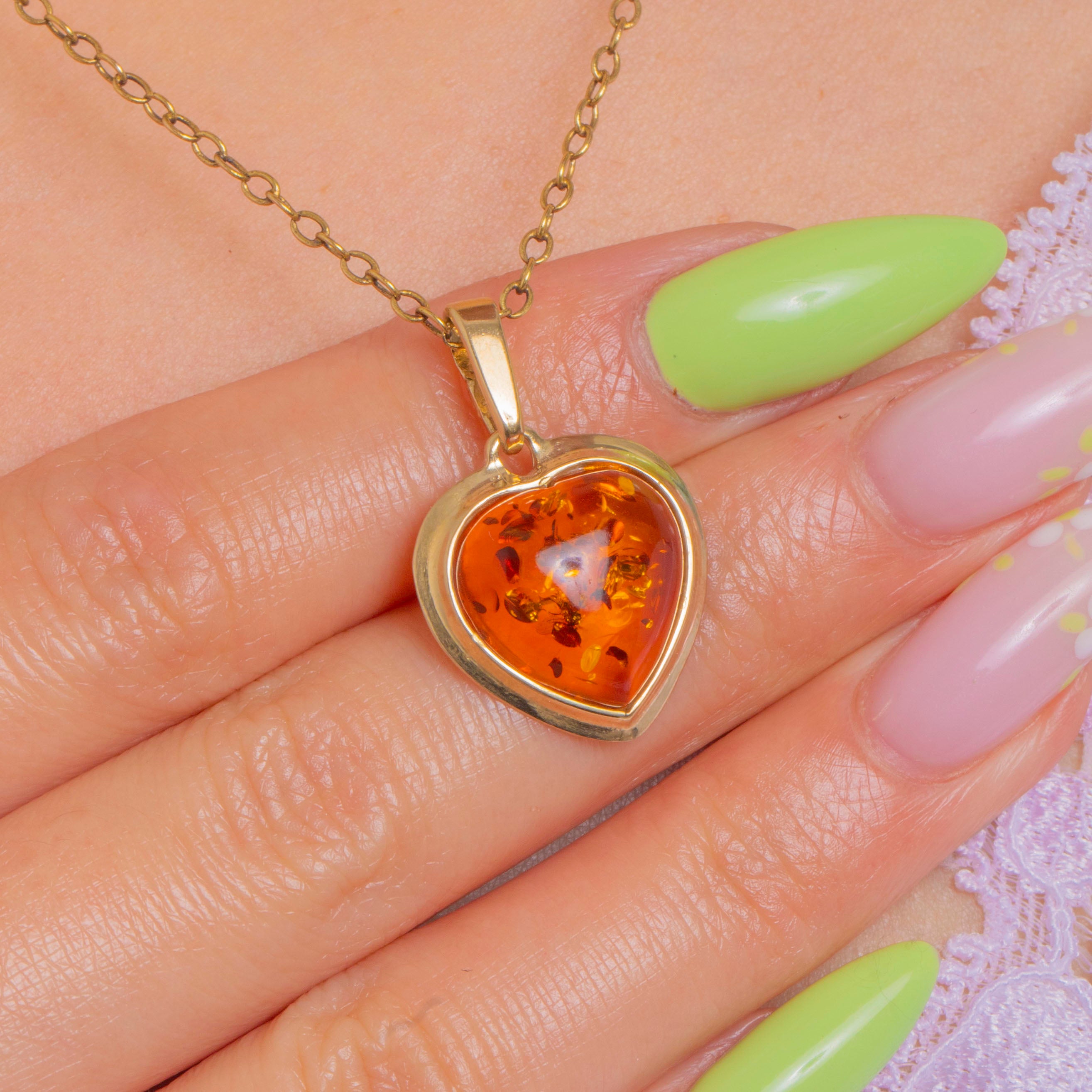 Plump and romantic, this Amber heart pendant glows with honeyed warmth. The domed cabochon is embraced by a smooth 9ct Gold bezel that keeps the silhouette clean and elegant, letting those rich cognac tones and tiny internal flecks take centre stage. A sweet, minimal classic with contemporary polish.
